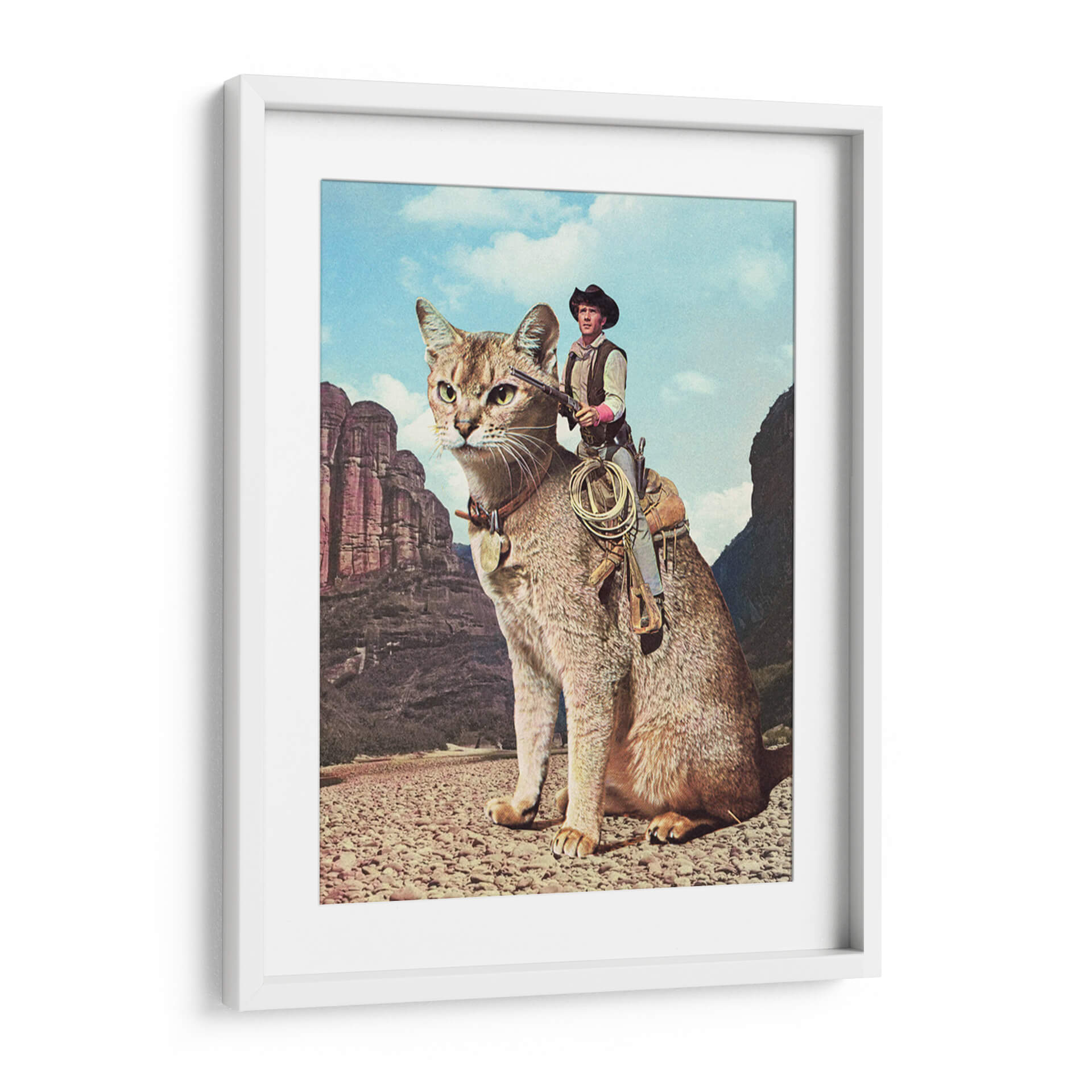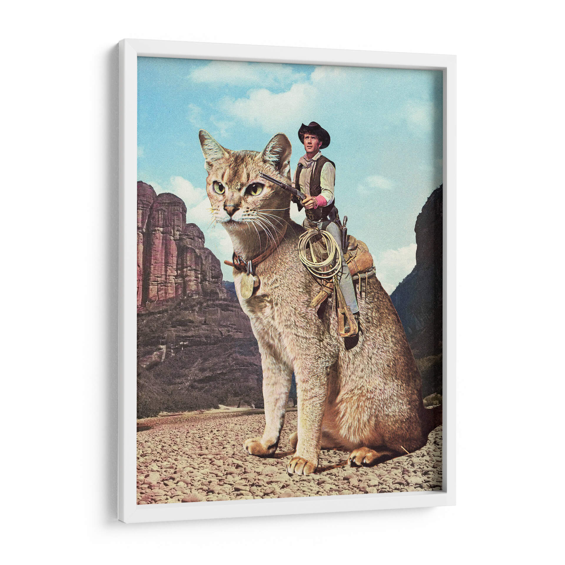 Sumérgete en un universo surrealista con "Gato llanero solitario", una obra de arte que desafía la imaginación. Este cuadro decorativo presenta un felino majestuoso, de tamaño colosal, sentado en un paisaje árido y rocoso, con un vaquero solitario montado en su lomo, revólver en mano. La composición surrealista, con su cielo azul vibrante salpicado de nubes y formaciones rocosas imponentes, crea una atmósfera de aventura y misterio. La paleta de colores, dominada por tonos tierra, ocres y azules, aporta una sensación de vastedad y tranquilidad del desierto. Esta pieza única es perfecta para añadir un toque de originalidad y humor a cualquier espacio, ya sea una sala de estar moderna, un estudio creativo o una oficina que busque inspirar conversaciones. "Gato llanero solitario" no es solo una decoración de pared, es una declaración de estilo, una invitación a soñar y una pieza que sin duda capturará la atención y generará admiración. Ideal para amantes del arte contemporáneo, la estética retro y las creaciones audaces.