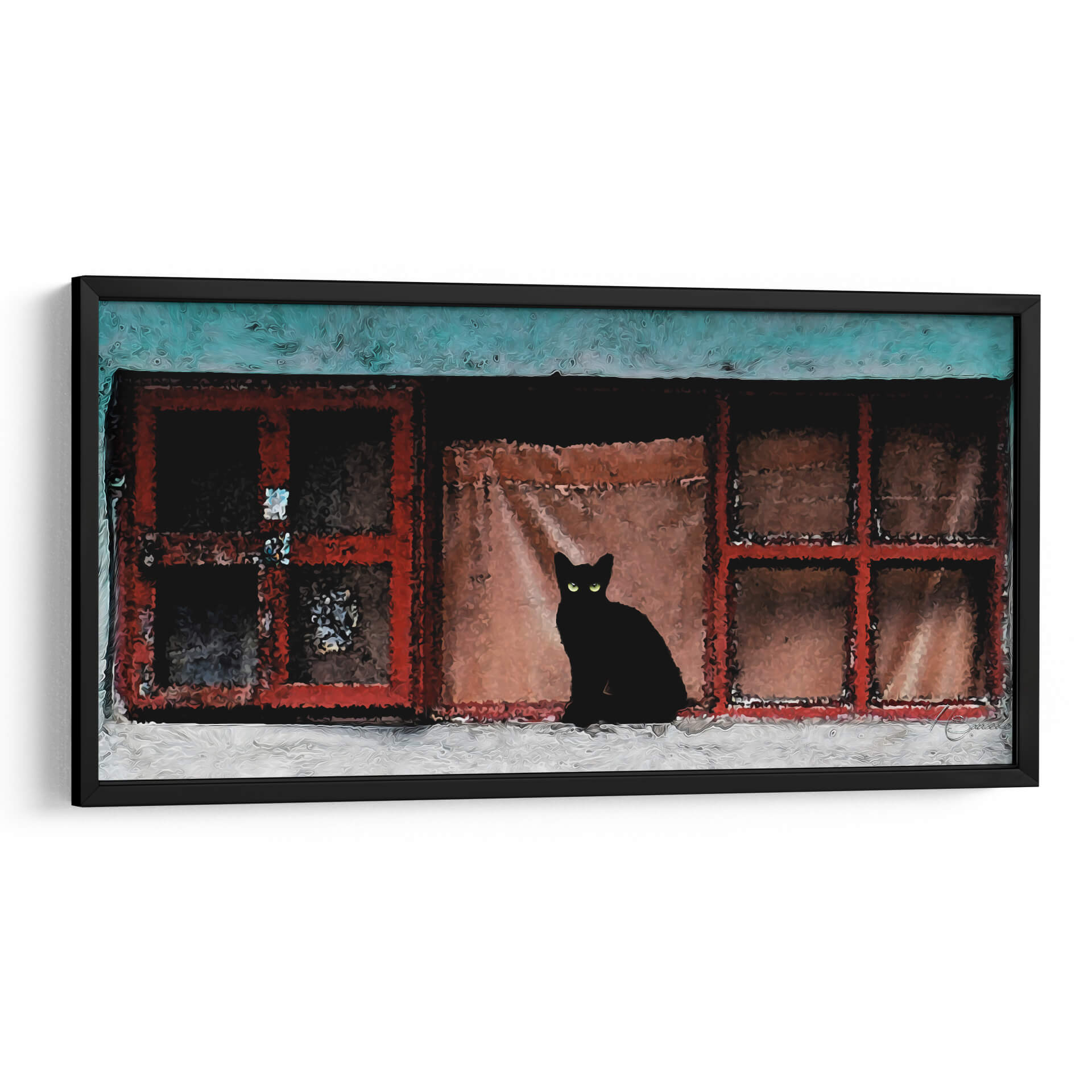 Sumérgete en el misterio y la elegancia con el cuadro decorativo 'Gato Negro' del artista HSaucedo. Esta cautivadora obra captura la silueta de un enigmático gato negro, cuyos ojos verdes brillantes parecen penetrar la oscuridad, sentado en el alféizar de una ventana con marcos rojos intensos y un fondo texturizado en tonos tierra y óxido. La paleta de colores, dominada por negros profundos, rojos vibrantes y toques de azul verdoso en el alero superior, crea una atmósfera de intriga y serenidad. El estilo pictórico, con sus pinceladas visibles y un toque impresionista, añade profundidad y una sensación de movimiento a la escena, invitando a la contemplación. Este cuadro es ideal para añadir un toque de sofisticación y personalidad a cualquier espacio, ya sea una sala de estar moderna, un estudio acogedor o incluso un dormitorio. 'Gato Negro' no es solo una pieza decorativa, sino una ventana a un mundo de misterio felino y arte contemporáneo que atraerá las miradas y generará conversación.