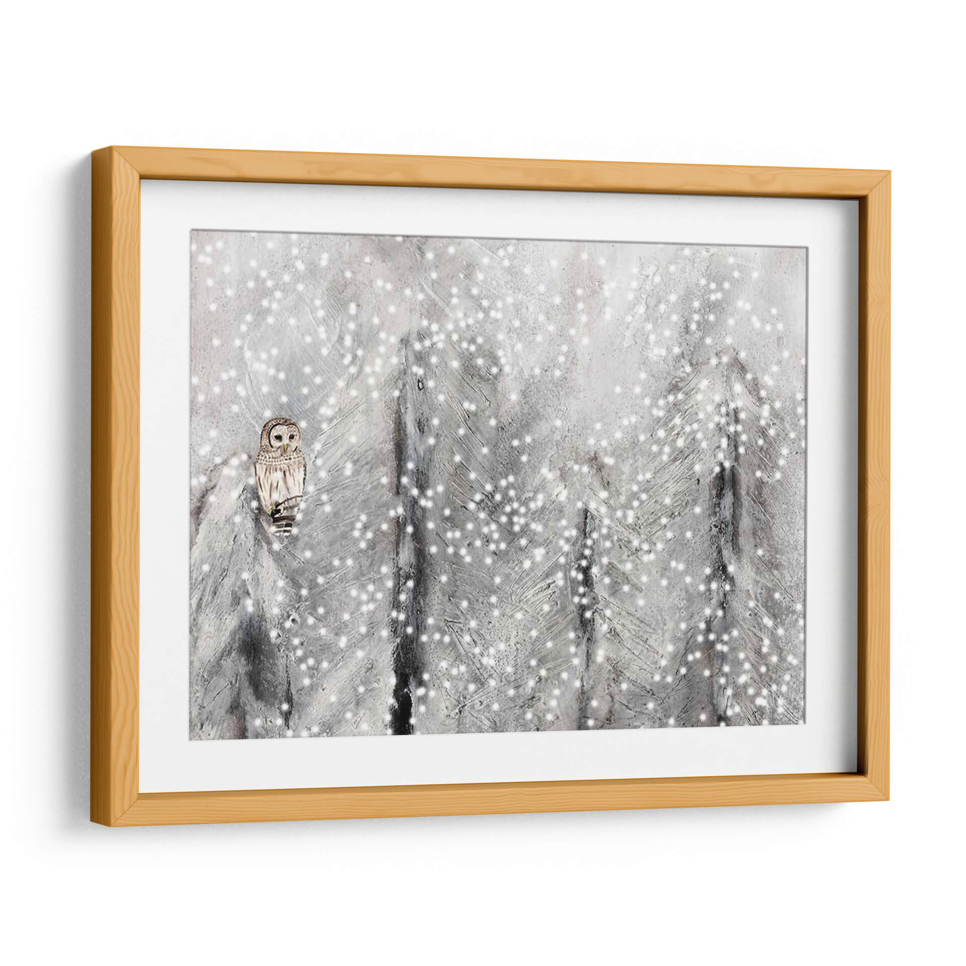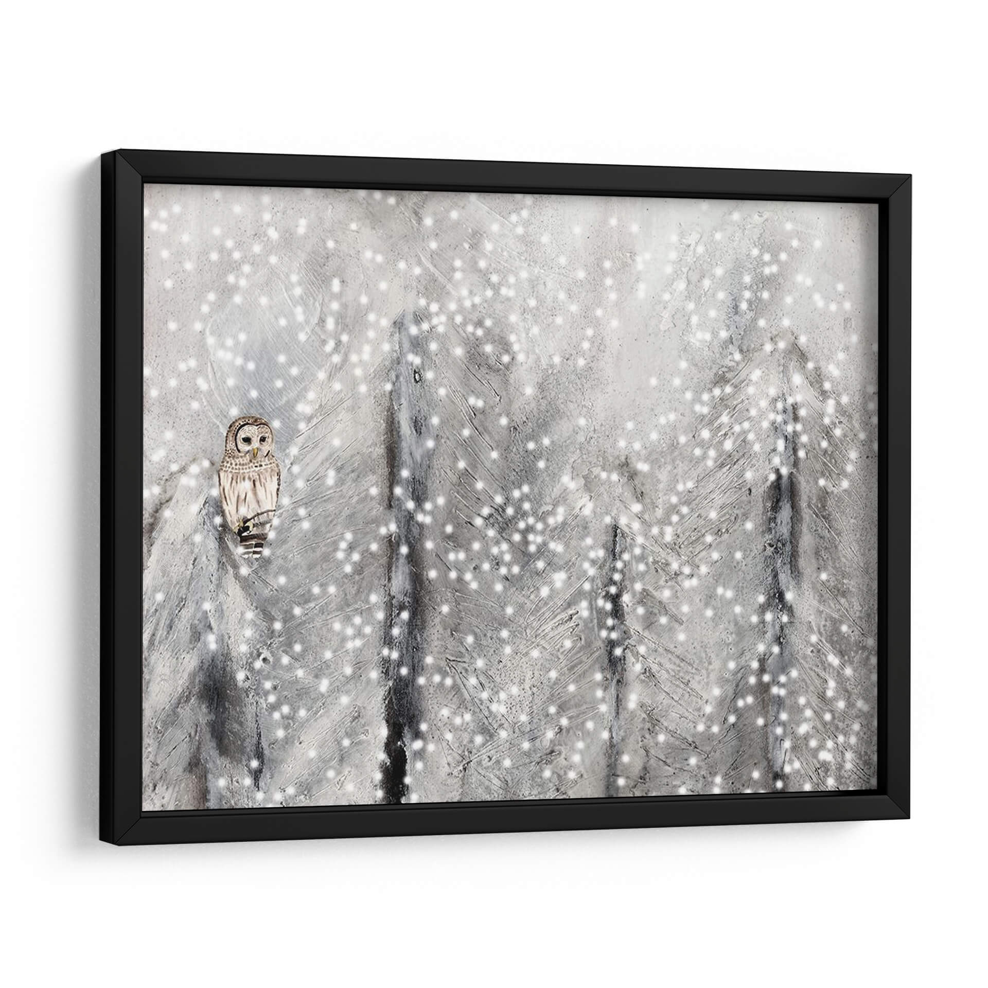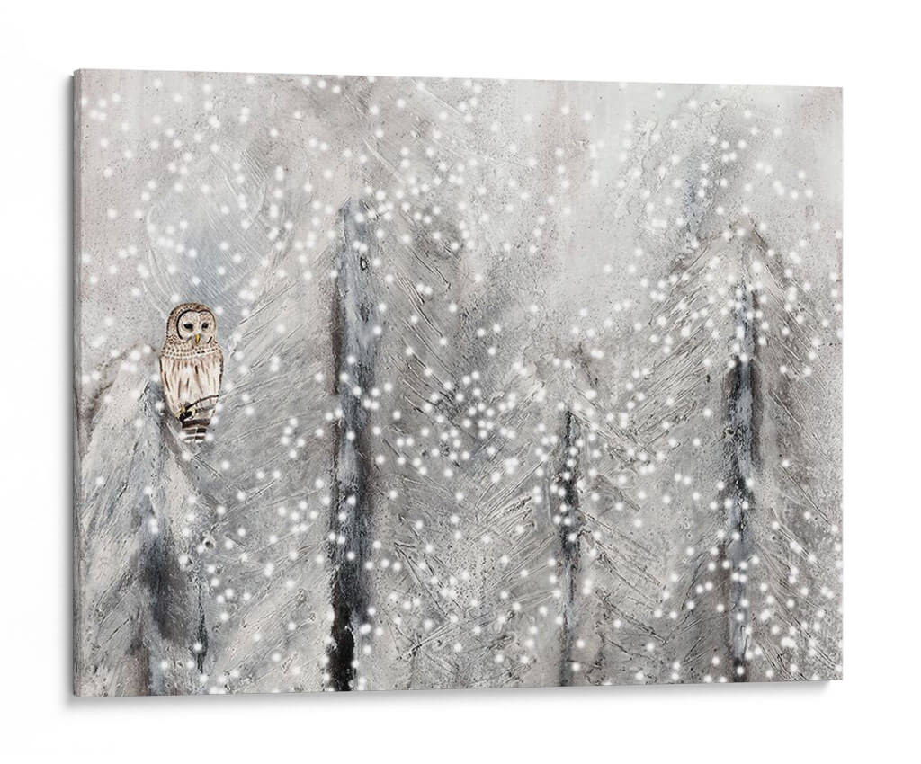 Sumérgete en la serena belleza del invierno con "Hábitat Nevado II" de Alicia Ludwig. Este cautivador cuadro decorativo te transporta a un bosque cubierto de nieve, donde la delicadeza de la naturaleza se manifiesta en cada pincelada. La obra presenta un paisaje invernal abstracto, con árboles estilizados que emergen de un fondo texturizado en tonos grises y blancos. La atmósfera se ve realzada por la presencia de una lechuza solitaria, posada elegantemente en una rama, que añade un toque de vida y misterio a la escena. Los pequeños puntos blancos esparcidos por toda la composición simulan copos de nieve cayendo o la luz de las estrellas brillando a través de la espesura, creando un efecto etéreo y mágico. La paleta de colores predominantemente fría y neutra evoca una sensación de calma, paz y tranquilidad, haciendo de esta pieza una adición perfecta para cualquier espacio que busque serenidad. "Hábitat Nevado II" es ideal para crear un ambiente acogedor en salas de estar, dormitorios o estudios, aportando un toque de elegancia contemporánea y la quietud de un paisaje invernal a tu decoración.