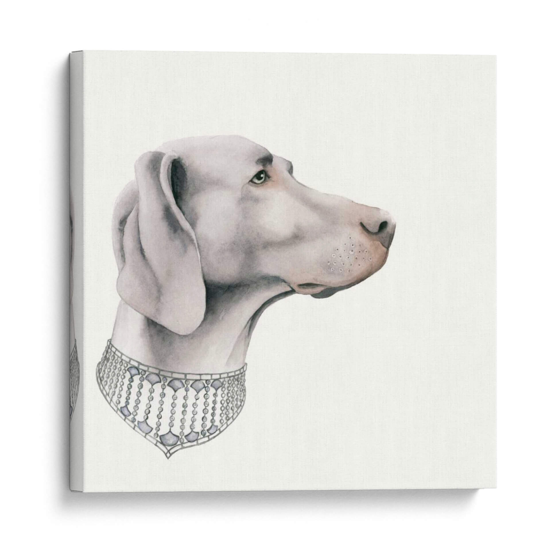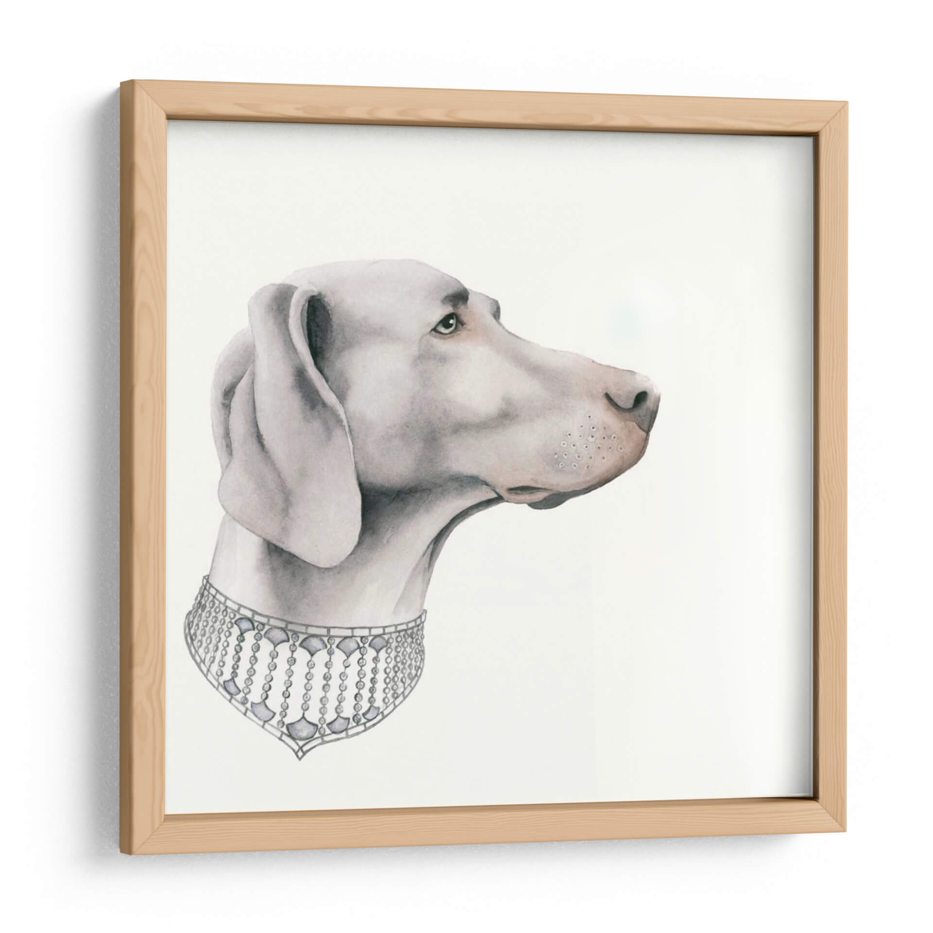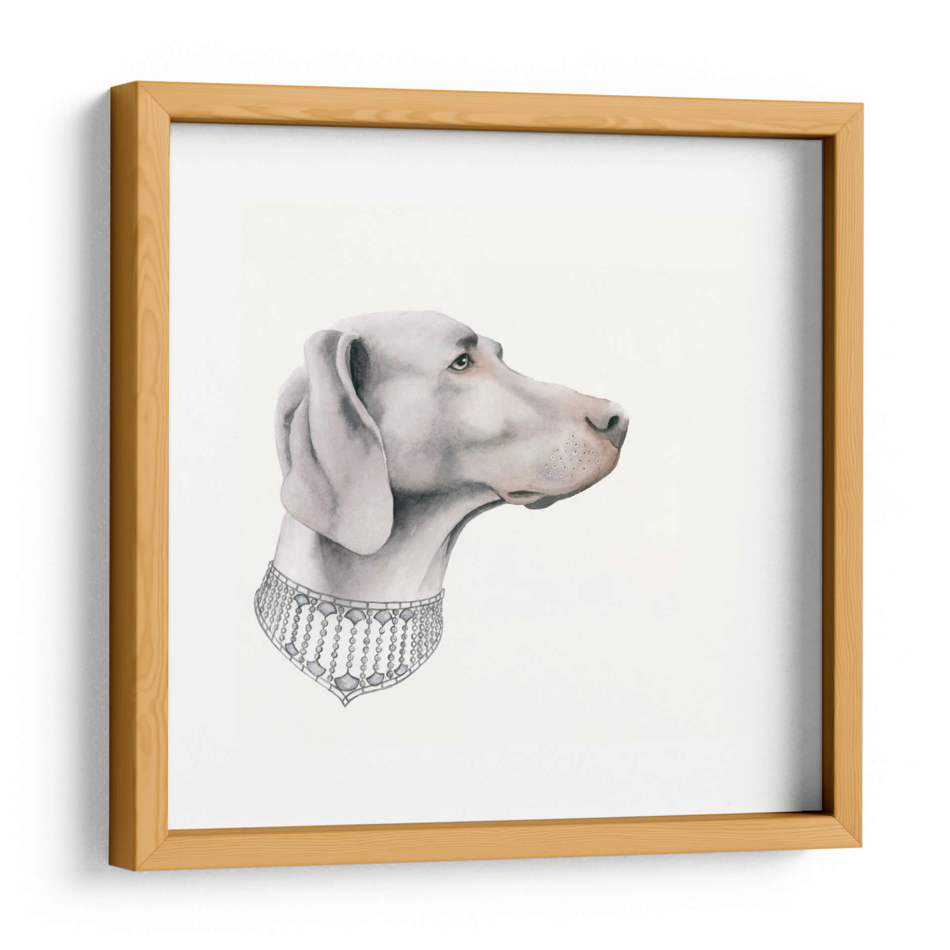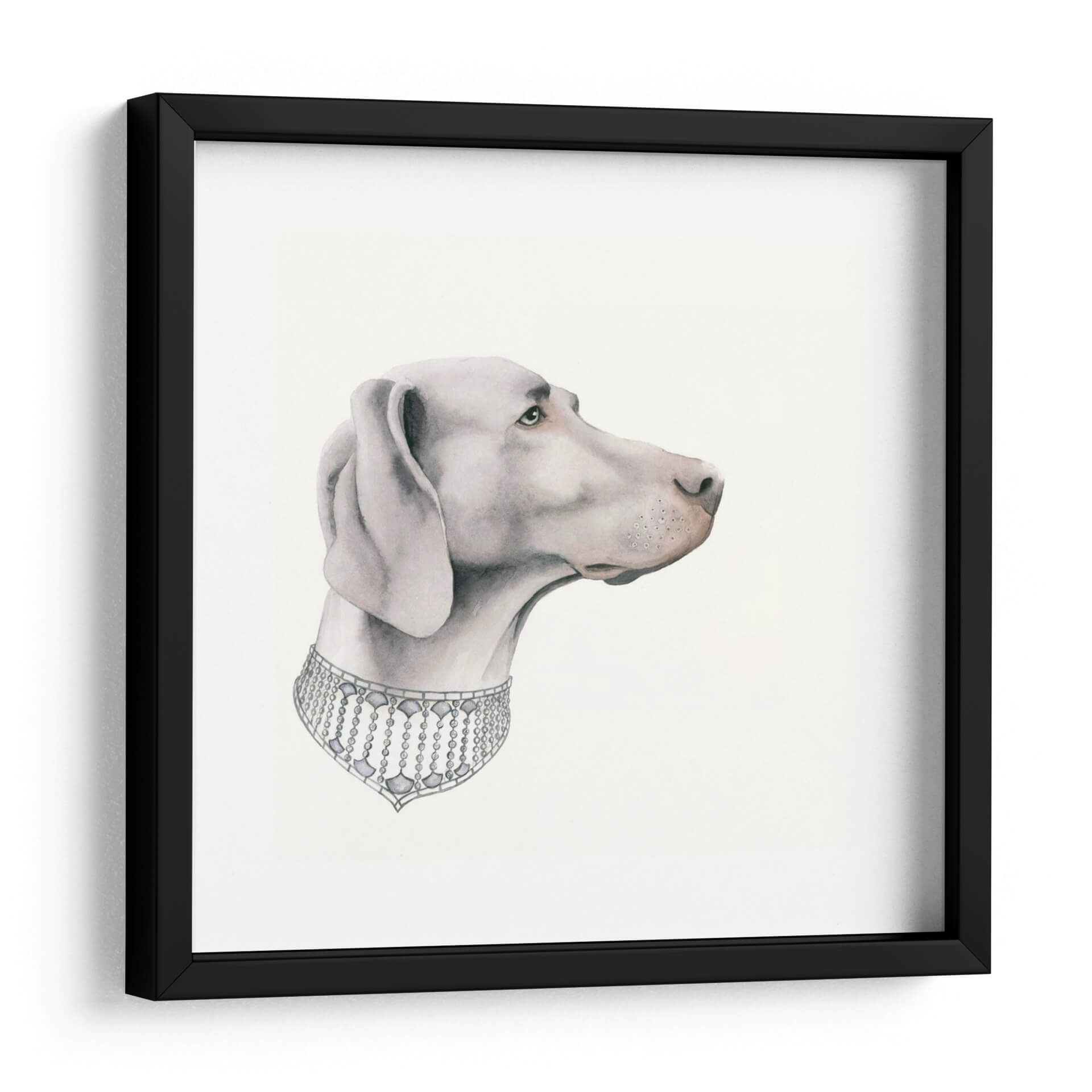 Transforma tu espacio con "Haute Hounds II", una cautivadora obra de arte del artista Grace Popp que captura la elegancia y el carácter de un sabueso de Weimar con un collar adornado. Esta pieza, ejecutada con una delicada técnica de acuarela, presenta una paleta de colores suave y sofisticada en tonos grises y plateados, creando una atmósfera de serenidad y distinción. La composición se centra en el perfil del perro, con una mirada penetrante que añade un toque de personalidad y profundidad. Ideal para quienes buscan añadir un elemento de sofisticación y un toque de humor refinado a su hogar u oficina, este cuadro decorativo se integra perfectamente en ambientes modernos, clásicos o eclécticos. Su estilo realista con un toque de fantasía lo convierte en un punto focal encantador, capaz de evocar conversaciones y admiración. "Haute Hounds II" es más que una simple decoración; es una declaración de estilo que aporta calidez y un aire de nobleza a cualquier rincón. Añade esta pieza única a tu colección y disfruta de la presencia elegante y el encanto atemporal que Grace Popp aporta a través de su arte.