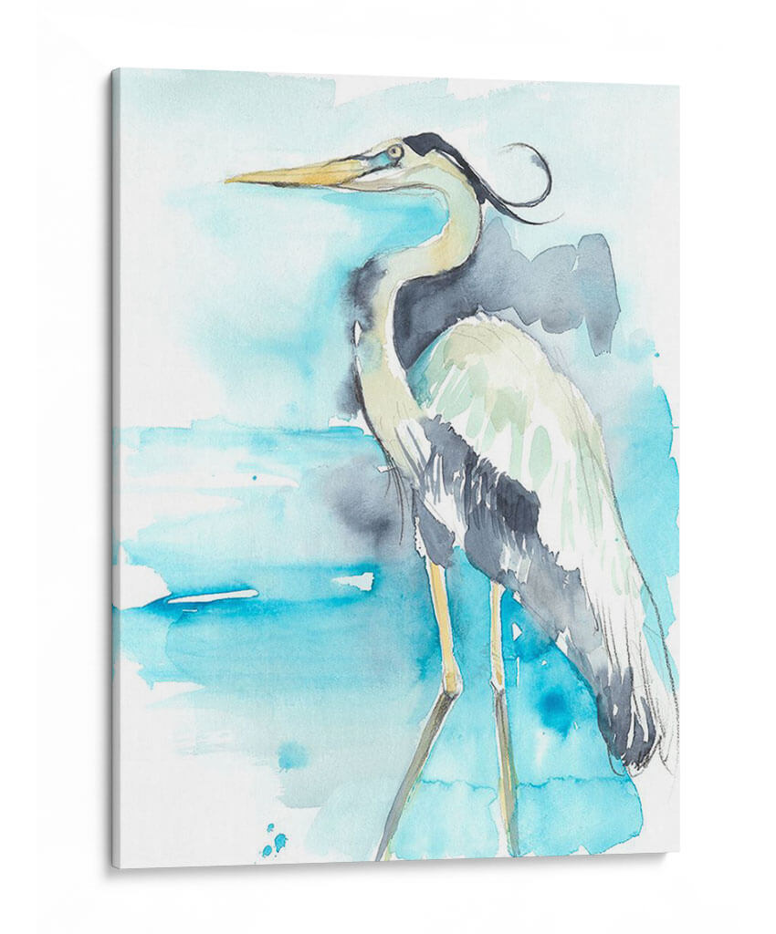 Captura la serenidad y la belleza natural con este cautivador cuadro decorativo de una garza, "Heron Splash II" de Jennifer Goldberger. La obra de arte presenta una elegante garza en acuarela, con trazos delicados que resaltan su silueta esbelta contra un fondo de tonos azules vibrantes y grises sutiles. La técnica de acuarela aporta una ligereza y fluidez únicas, creando un efecto etéreo que evoca la calma del agua y la tranquilidad del entorno natural. Los colores predominantes, desde el azul turquesa hasta el gris pálido y toques de amarillo en el pico, se combinan magistralmente para crear una atmósfera pacífica y relajante. Este cuadro decorativo es una pieza de arte contemporáneo ideal para añadir un toque de sofisticación y naturaleza a cualquier espacio. Perfecto para salones, dormitorios o estudios, este cuadro aportará una sensación de paz y armonía, invitando a la contemplación. Su estilo, que fusiona lo figurativo con la expresividad de la acuarela, lo convierte en un punto focal elegante y atemporal para la decoración de interiores.