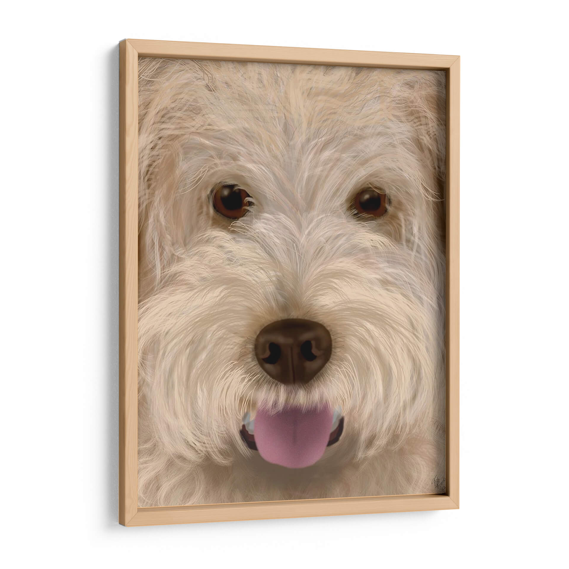 Este encantador cuadro decorativo de un Labradoodle grande captura la esencia juguetona y leal de esta popular raza canina. La obra, titulada "Labradoodle Perro Grande" y creada por el artista Fab Funky, presenta un primer plano detallado del rostro del perro, con sus expresivos ojos marrones y su lengua rosada asomando en un gesto de felicidad. La paleta de colores se centra en tonos cálidos y cremosos, que evocan una sensación de confort y calidez. El estilo realista y la composición cercana hacen que la obra sea increíblemente cercana y personal, ideal para los amantes de los perros y aquellos que buscan añadir un toque de alegría y personalidad a su hogar. Este cuadro decorativo es perfecto para cualquier espacio, desde una sala de estar acogedora hasta un estudio o una habitación infantil, aportando vida y carácter. Su realismo detallado y su atmósfera positiva lo convierten en una pieza de conversación y un reflejo del amor por las mascotas. Transmite una sensación de compañía y buen humor, haciendo de cualquier pared un lugar más amigable y acogedor.