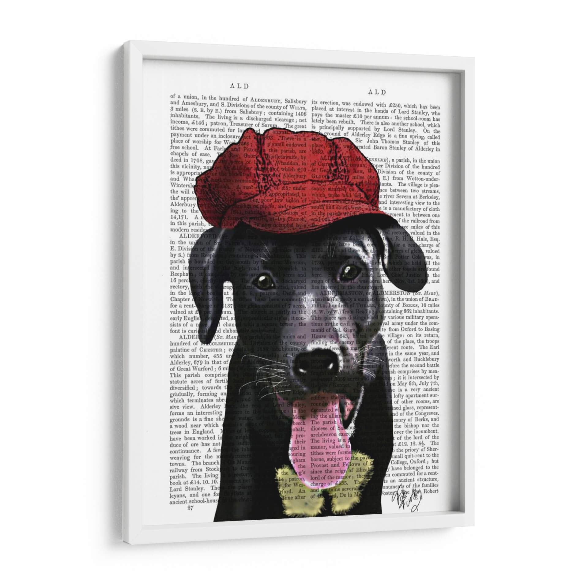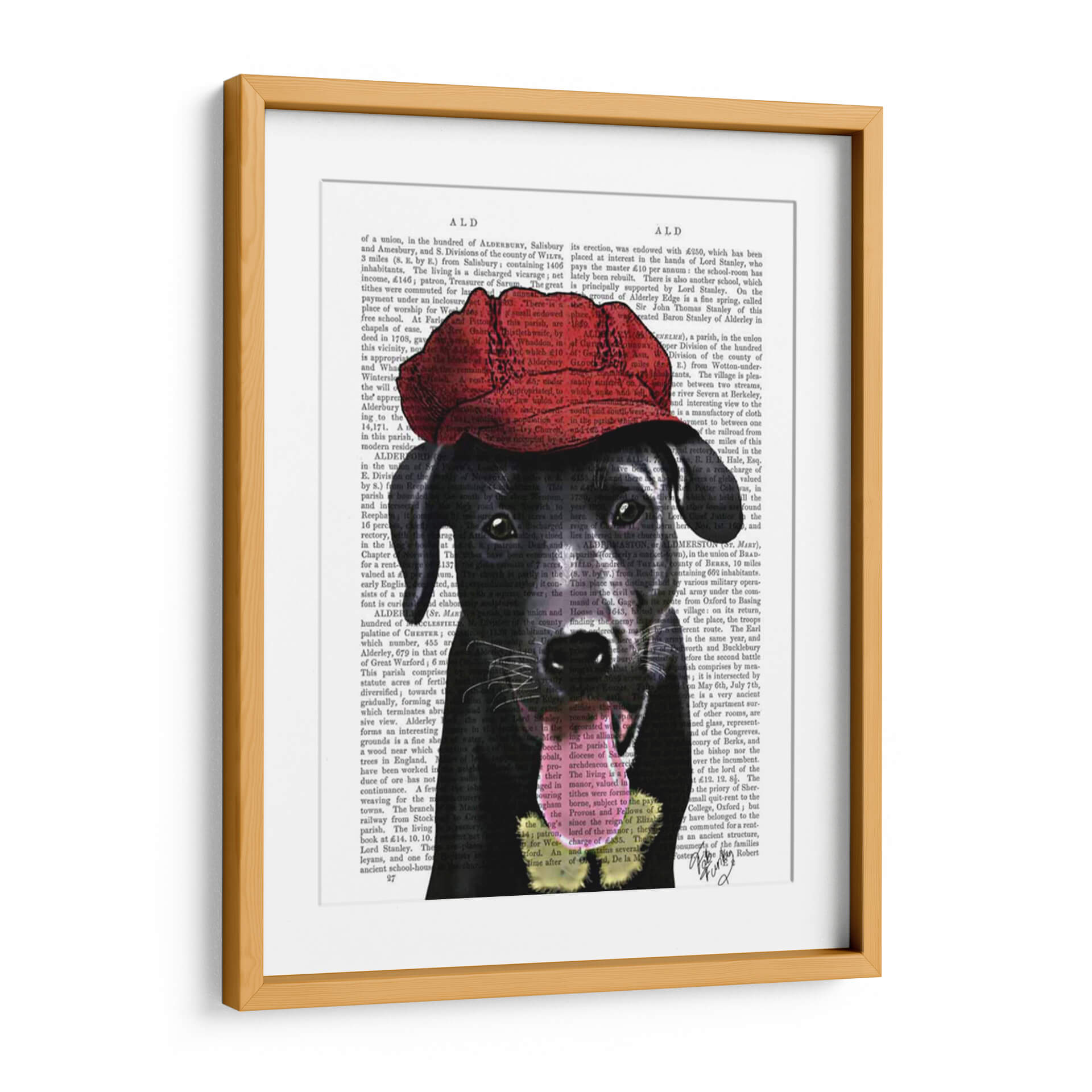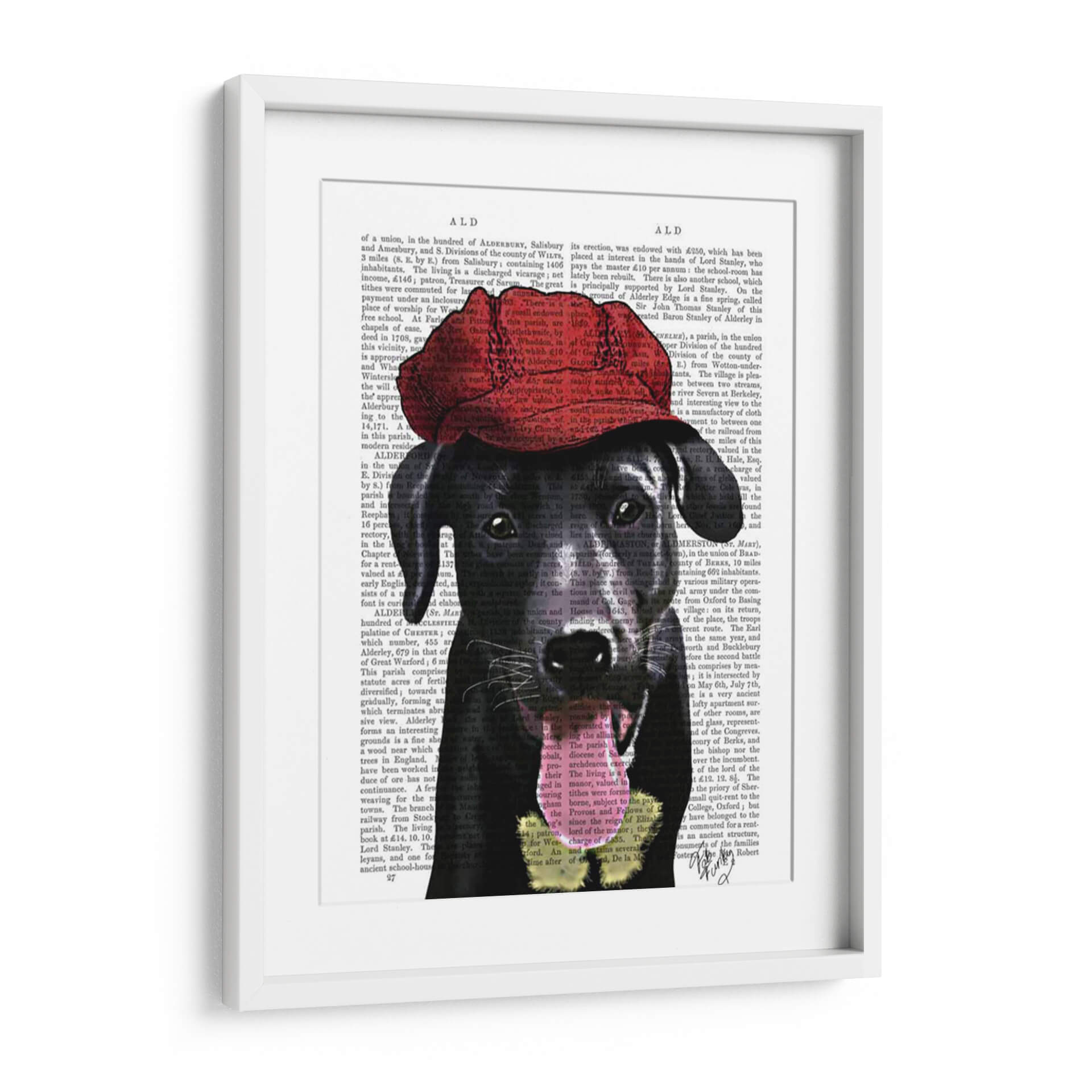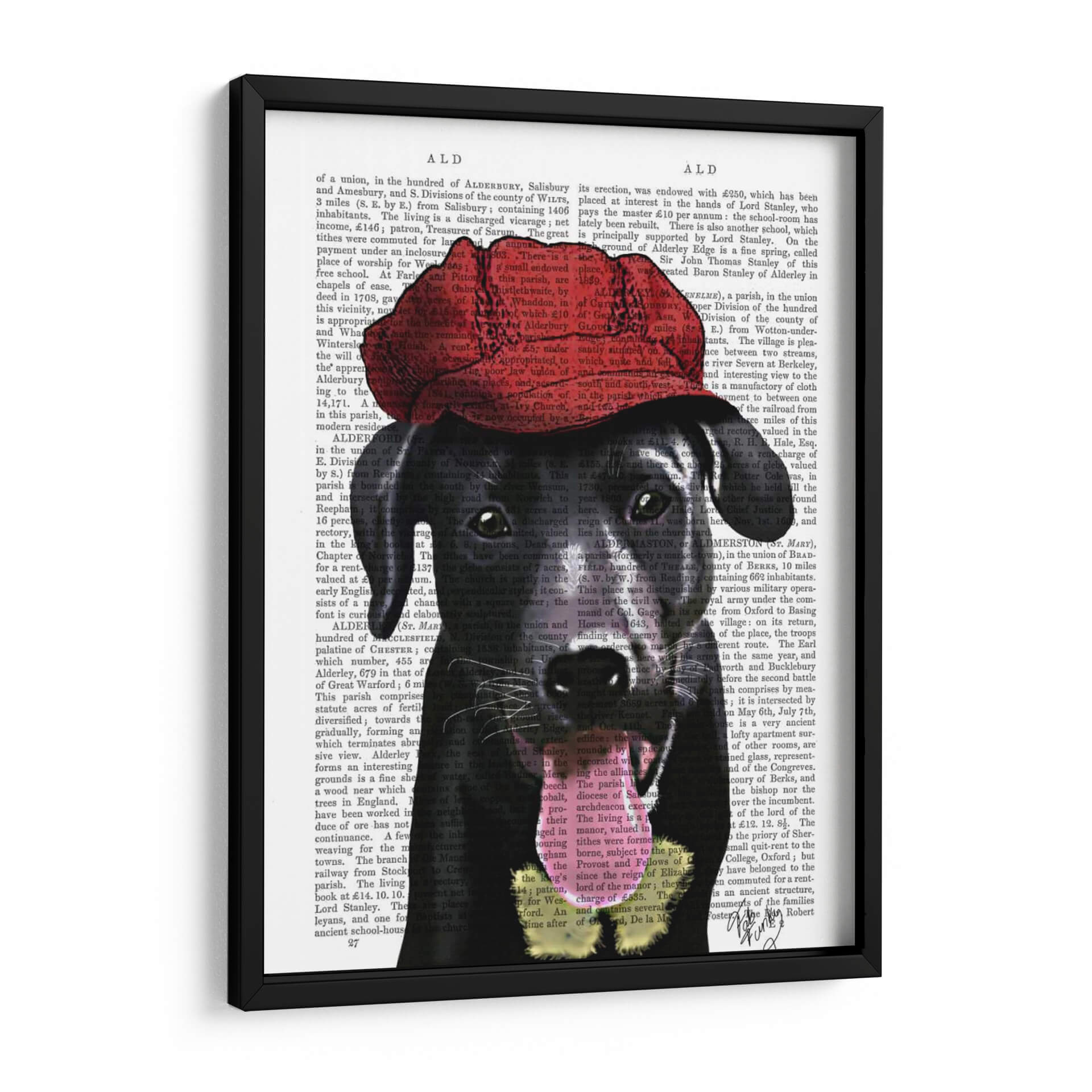 Transforma tu espacio con este llamativo cuadro decorativo de un Labrador Negro con una Gorra Roja, una obra de arte que combina la sofisticación con un toque juguetón. La composición presenta a un adorable Labrador Negro, con una mirada penetrante y tierna, adornado con una vibrante gorra roja que añade un contraste audaz y una personalidad única a la pieza. El fondo, texturizado con fragmentos de texto antiguo, evoca una sensación de historia y profundidad, creando un telón de fondo intrigante que permite que el sujeto principal destaque con fuerza. Los colores predominantes, los tonos oscuros del pelaje del perro y el rojo intenso de la gorra, se equilibran perfectamente con el beige y negro del texto, ofreciendo una paleta de colores versátil que se adapta a diversos estilos de decoración. Este cuadro es ideal para añadir un punto focal interesante y lleno de carácter a salas de estar, estudios o cualquier rincón que necesite una dosis de personalidad y estilo contemporáneo. Su diseño único, que fusiona elementos clásicos y modernos, lo convierte en una pieza de conversación perfecta, capaz de inspirar alegría y admiración en todos los que la contemplen.