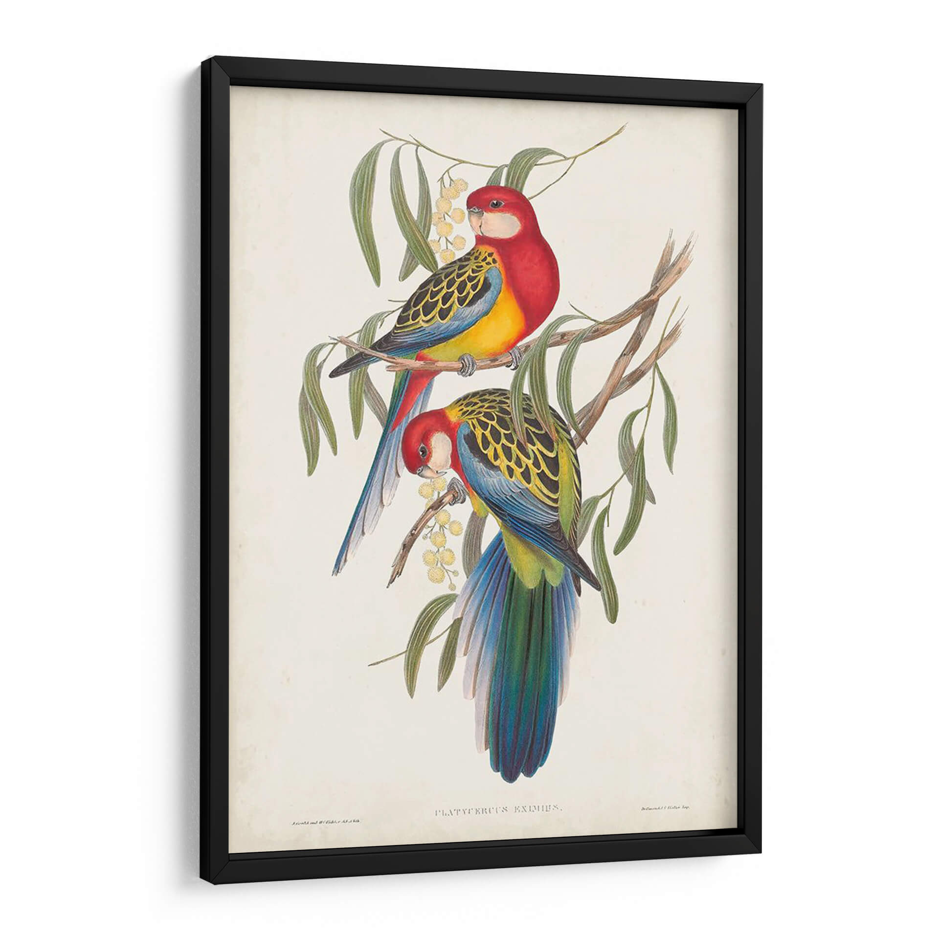 Embellece tu hogar con la vibrante obra "Loros Tropicales IV" de John Gould, una representación exquisita y detallada de la avifauna. Este cuadro decorativo captura la esencia de la naturaleza con dos loros de plumaje exuberante posados en una rama frondosa, adornada con delicadas flores amarillas. La paleta de colores, dominada por rojos intensos, amarillos dorados, azules profundos y verdes esmeralda, aporta un toque de vitalidad y exotismo a cualquier espacio. El estilo de ilustración científica, con un acabado que evoca las láminas clásicas, confiere a esta pieza un aire de elegancia atemporal y sofisticación. Ideal para crear un punto focal en salones modernos, comedores o incluso como una adición inspiradora a tu oficina, este lienzo transformará tu ambiente en un oasis de color y serenidad. Su composición equilibrada y el realismo de los detalles invitan a la contemplación, ofreciendo una ventana a la belleza del mundo natural. Añade un toque de carácter y distinción a tu decoración con este magnífico cuadro de loros.