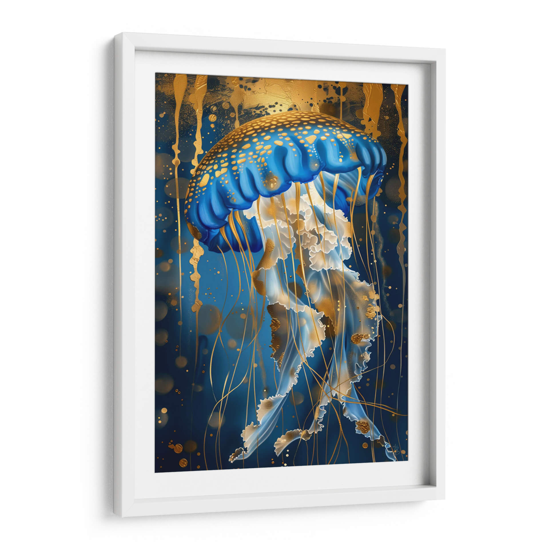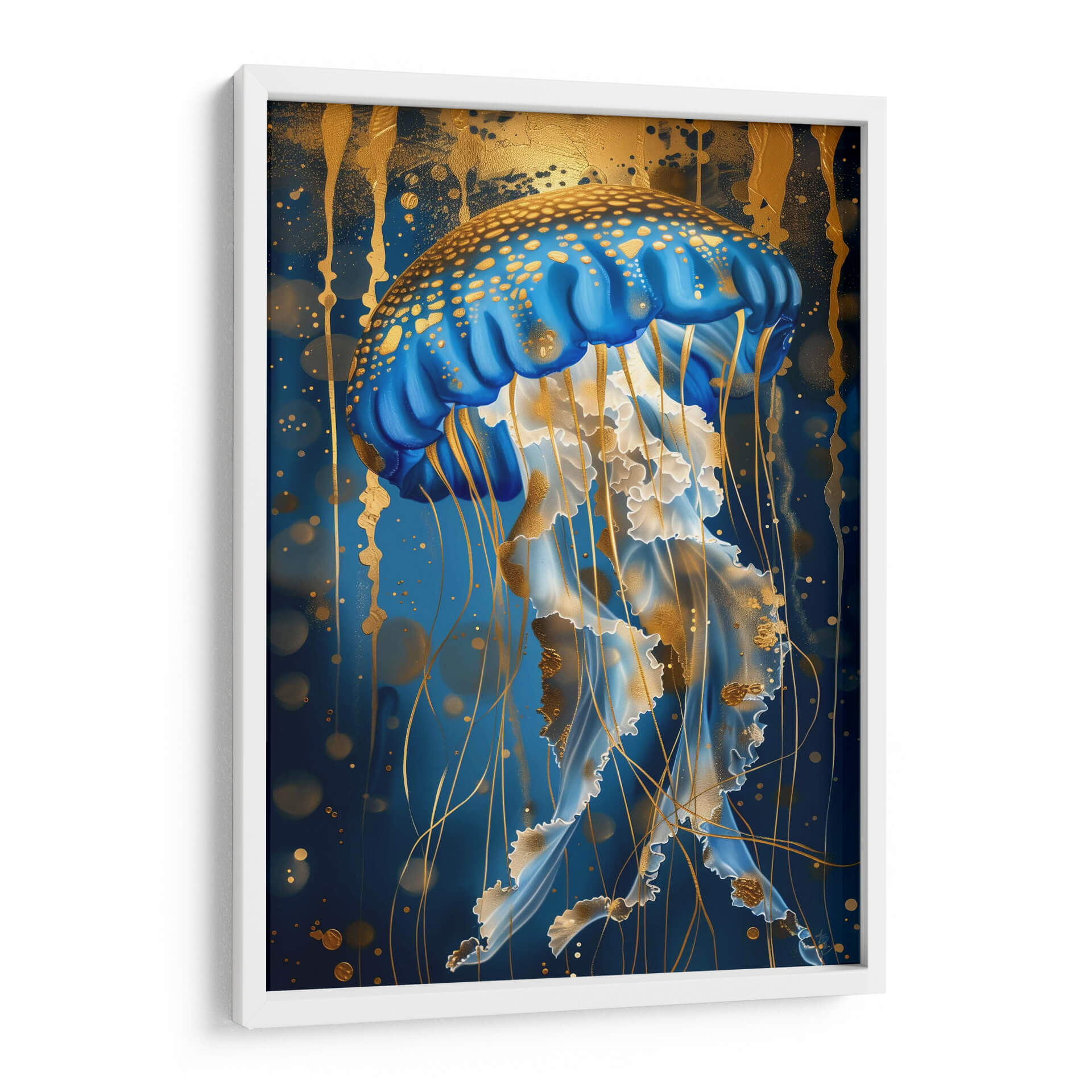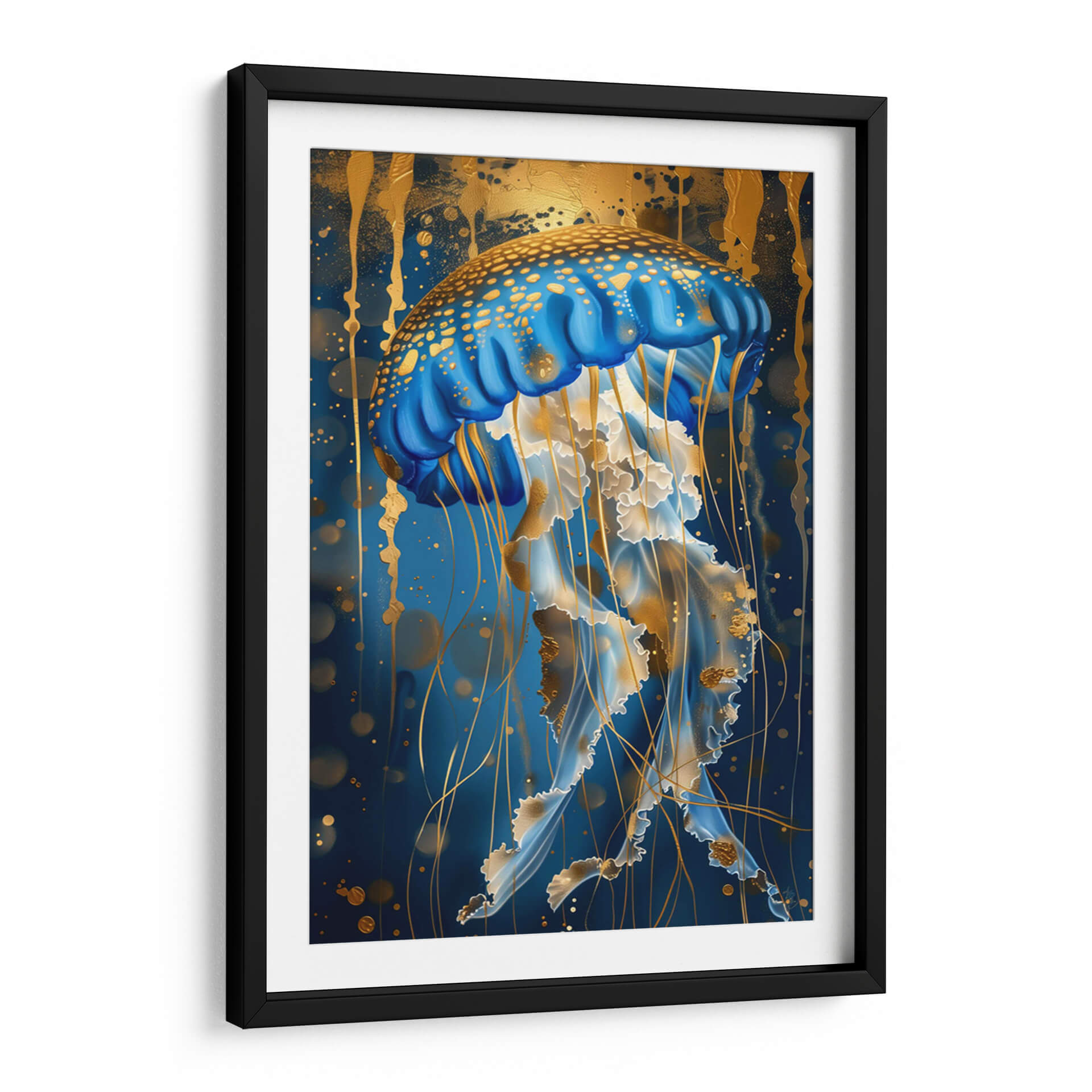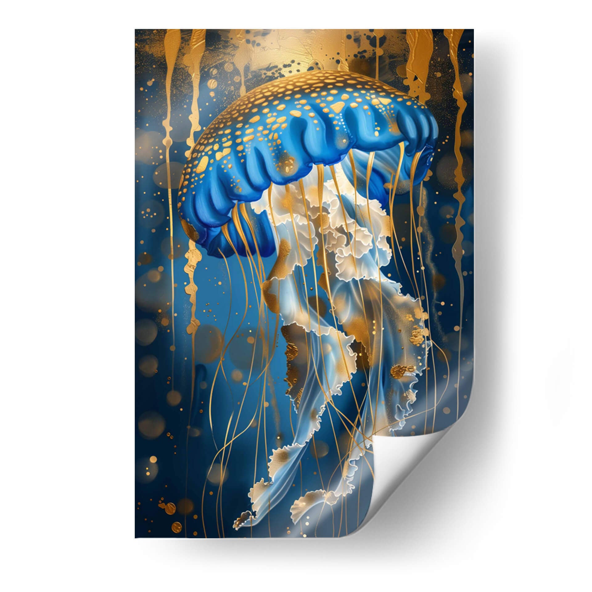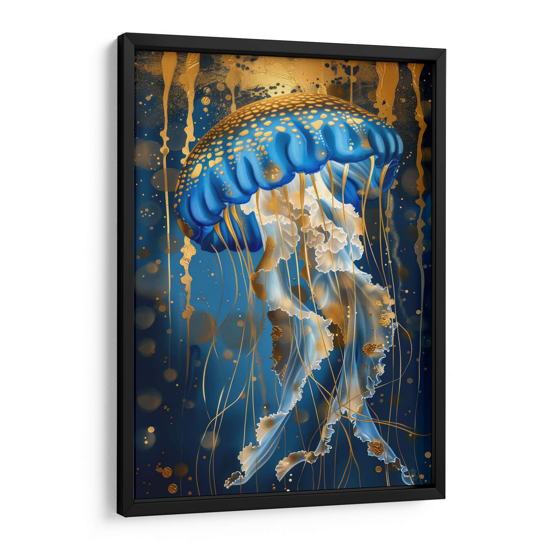 Sumérgete en la majestuosidad del océano con "Medusa en Oro", una obra de arte digital que captura la enigmática belleza de estas criaturas marinas. El azul profundo del fondo evoca las vastas profundidades oceánicas, salpicado de vibrantes toques dorados que simulan destellos de luz o gotas de tesoro líquido. La medusa central, representada con un impactante tono azul eléctrico y detalles en oro, irradia una elegancia etérea. Sus tentáculos, delicados y fluidos, se entrelazan con finas líneas doradas, creando una sensación de movimiento hipnótico. La composición, centrada en la figura de la medusa, atrae la mirada hacia su intrincada forma y los contrastes de color. Esta pieza evoca una sensación de misterio, calma y lujo, convirtiéndola en un punto focal ideal para cualquier espacio que busque añadir un toque de sofisticación y naturaleza marina. Perfecta para salas de estar modernas, dormitorios serenos o incluso como una declaración audaz en una oficina elegante, este cuadro decorativo "Medusa en Oro" es una invitación a contemplar la maravilla del mundo submarino con un toque de opulencia.