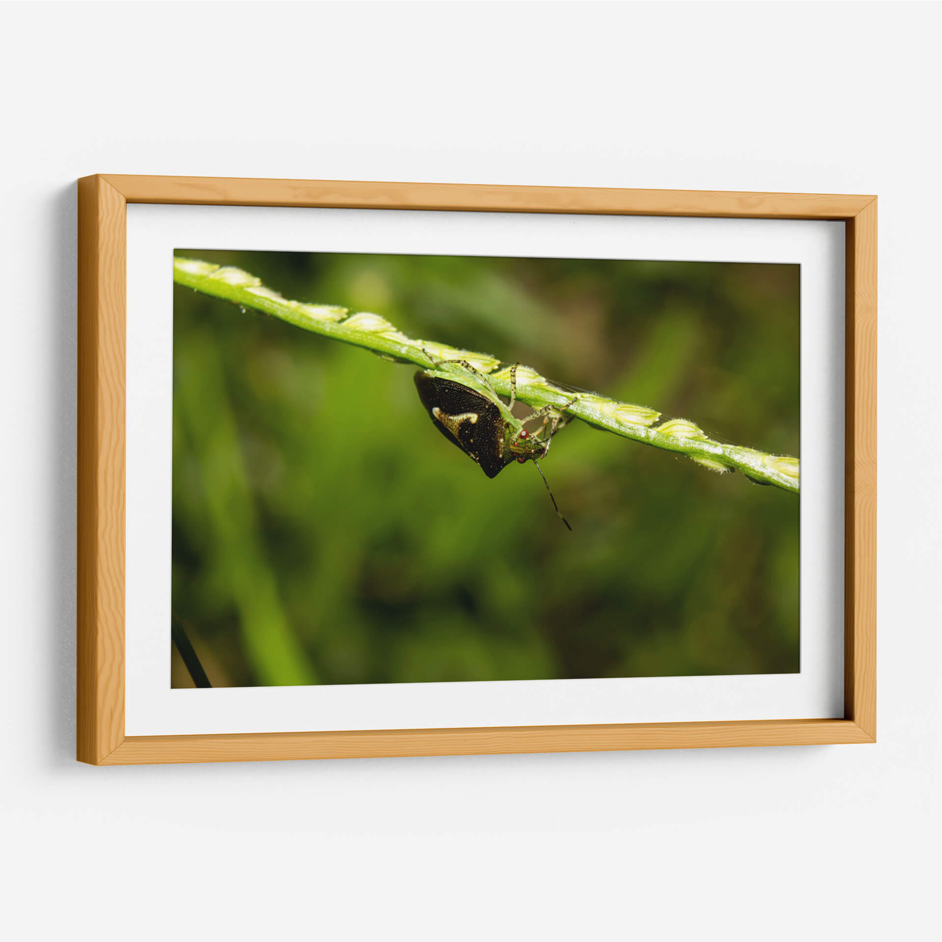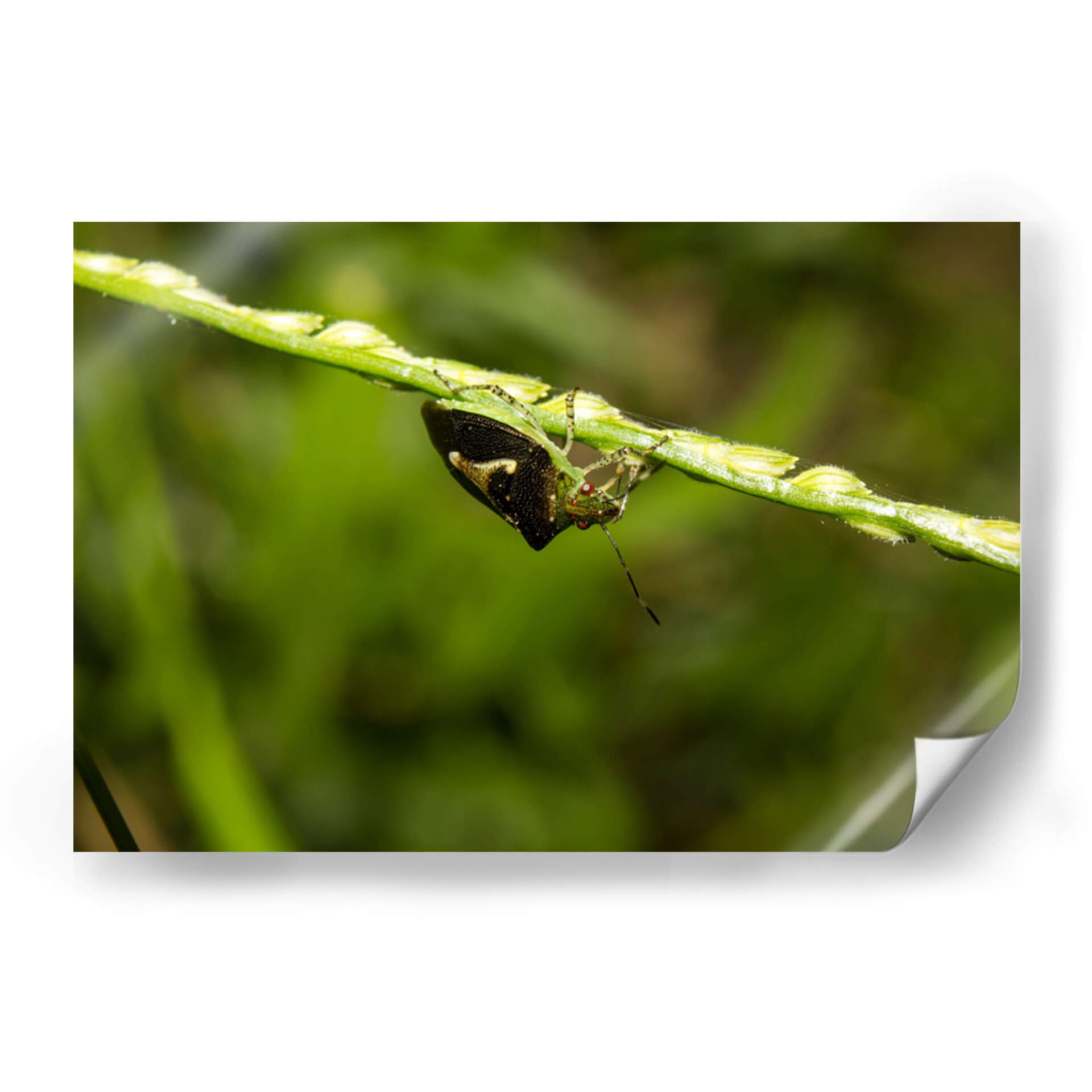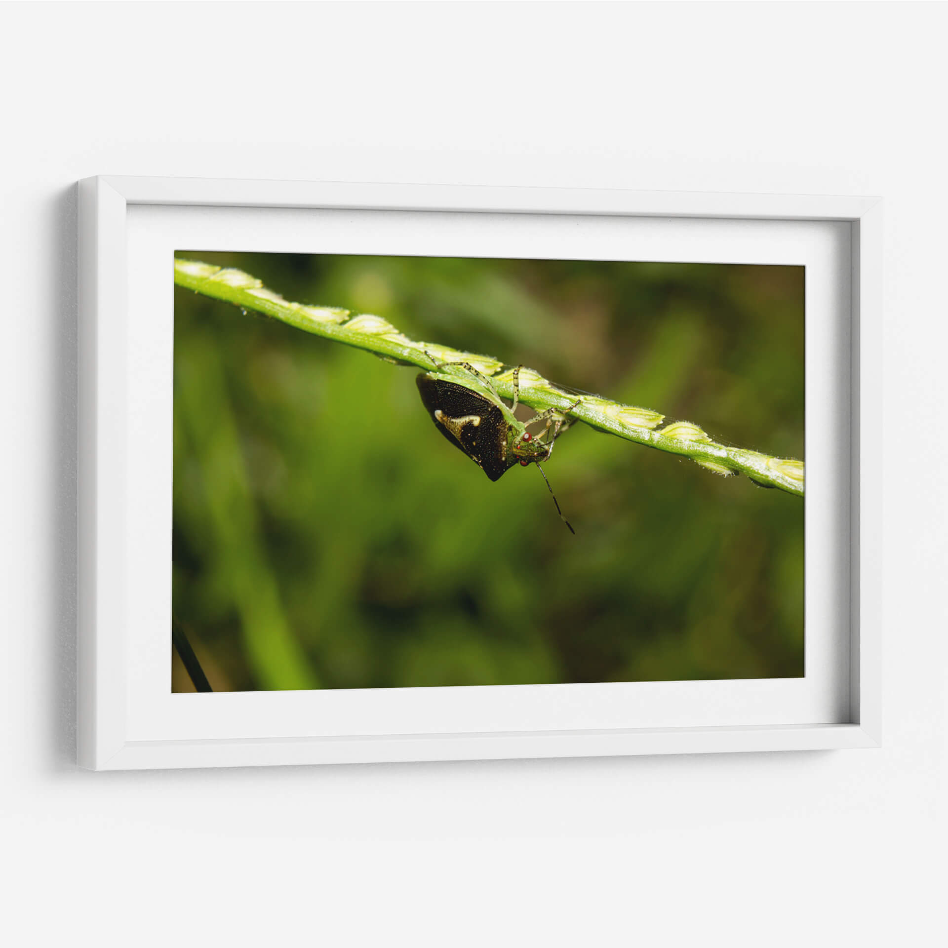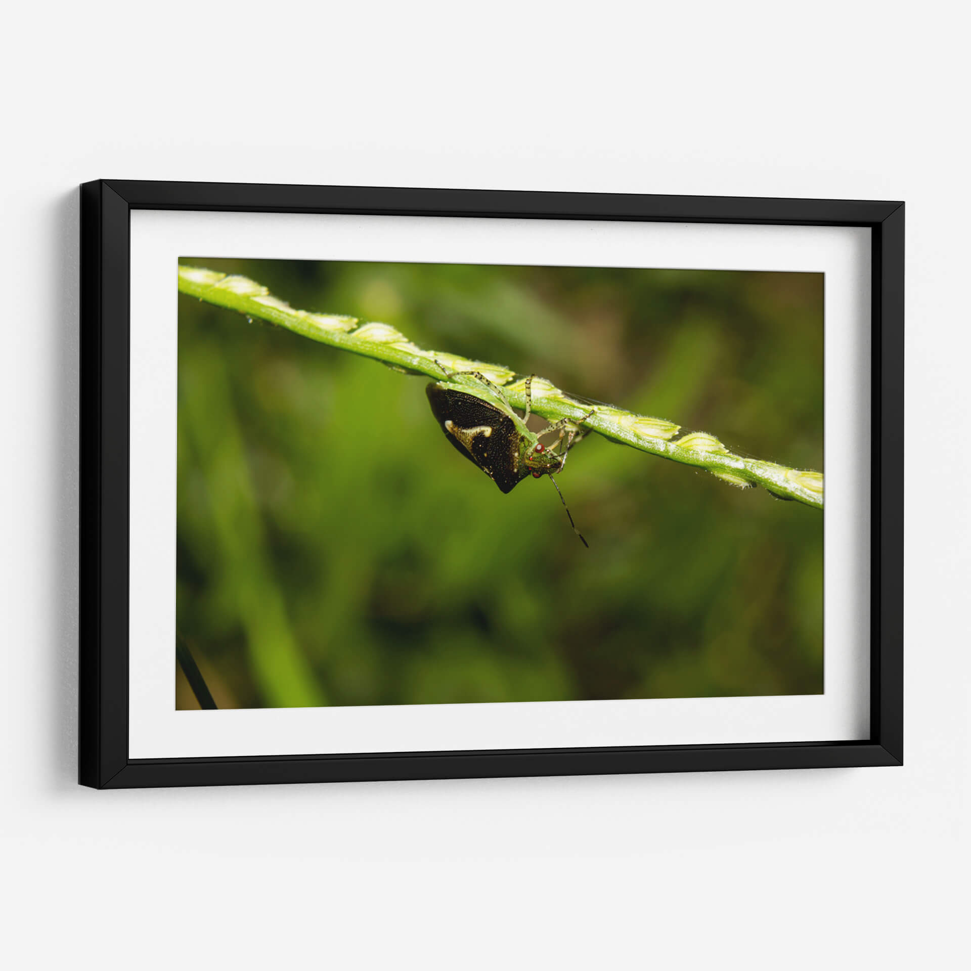 Sumérgete en la intrincada belleza de la naturaleza con 'Minimundus09', una obra de arte visualmente cautivadora del artista Jiván. Este cuadro decorativo presenta un primer plano detallado de un insecto posado en un tallo de hierba, capturando la delicadeza y la vitalidad del mundo natural. La composición se centra en la textura y los vibrantes tonos verdes del entorno, con el insecto emergiendo como un punto focal de interés con sus intrincados patrones y su mirada inquisitiva. Los sutiles toques de color y el enfoque nítido sobre el sujeto contrastan maravillosamente con el fondo suavemente desenfocado, creando una sensación de profundidad y realismo. 'Minimundus09' es perfecto para añadir un toque de la serenidad y la maravilla del mundo natural a cualquier espacio, ya sea un estudio hogareño, una sala de estar o una oficina. Esta pieza evoca una sensación de calma y aprecio por los pequeños detalles de la vida, invitando a la contemplación y la admiración. Su estilo fotográfico y su temática natural lo convierten en una adición excepcional para quienes buscan arte que inspire tranquilidad y conecte con la esencia del exterior.