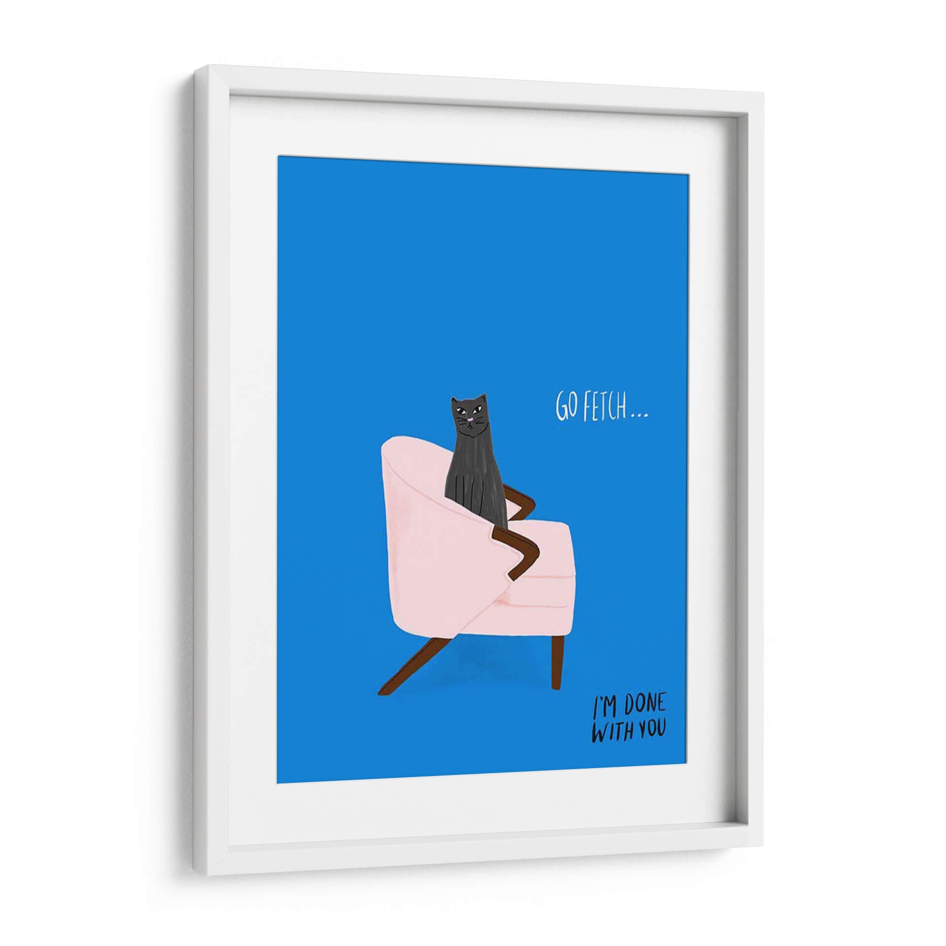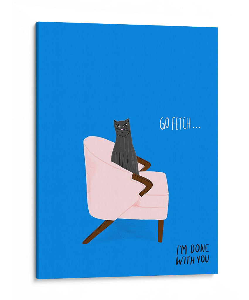 Transforma tu espacio con el enigmático y divertido cuadro decorativo "Mod Cats II" de Stephen Switzer. Esta obra captura la esencia de un gato negro con una actitud desafiante, sentado cómodamente en un sillón rosa pálido, sobre un vibrante fondo azul eléctrico. La obra, con su estilo ilustrativo contemporáneo y una paleta de colores audaz y contrastante, evoca una mezcla de humor, independencia felina y un toque de rebeldía. Las frases "GO FETCH..." y "I'M DONE WITH YOU" añaden un guiño cómico que resonará con los amantes de los gatos y aquellos que aprecian el arte con personalidad. Ideal para salones modernos, oficinas creativas o cualquier rincón que necesite un toque de carácter y conversación. Este cuadro decorativo no solo embellece, sino que también cuenta una historia, invitando a la reflexión y provocando una sonrisa. Añade esta pieza única a tu colección y deja que el espíritu independiente de "Mod Cats II" ilumine tu hogar con su singular encanto y estilo artístico.