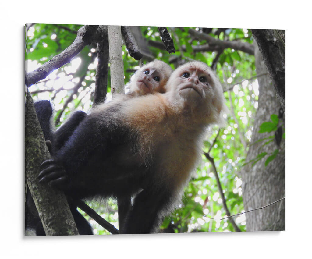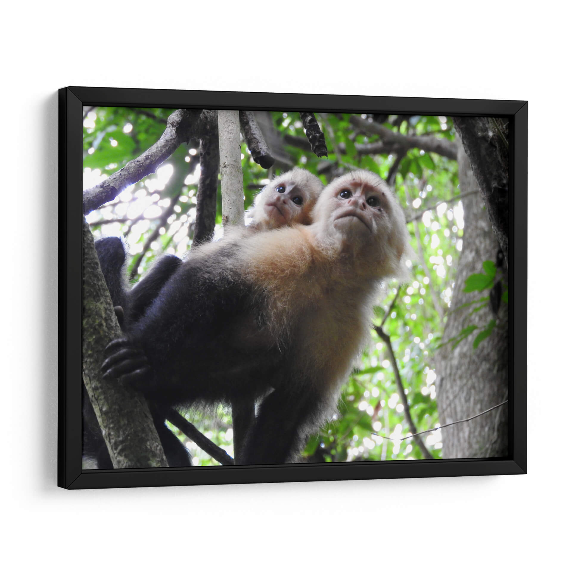 Sumérgete en la ternura y la conexión de la naturaleza con nuestro cautivador cuadro decorativo 'Monos' del artista Hugo Segura. Esta obra maestra captura un momento íntimo entre una madre mono y su cría, aferrados a las ramas de un frondoso bosque. Los ojos curiosos de los monos, llenos de una inteligencia innata, invitan a la reflexión y a la empatía, mientras que el entorno selvático, con su juego de luces y sombras filtrándose entre las hojas verdes, crea una atmósfera de tranquilidad y vida salvaje. La paleta de colores, dominada por los tonos tierra, verdes vibrantes y los matices cremosos del pelaje de los monos, aporta calidez y un toque orgánico a cualquier espacio. Este cuadro es ideal para aquellos que buscan infundir sus hogares u oficinas con una sensación de paz, asombro y una conexión con el mundo natural. Su composición detallada y la emotividad de la escena lo convierten en un punto focal perfecto para salas de estar, dormitorios o estudios, añadiendo carácter y una historia visual que inspira conversaciones y admiración. Añade esta pieza única a tu colección y deja que la inocencia y la fuerza de la naturaleza decoren tus paredes.