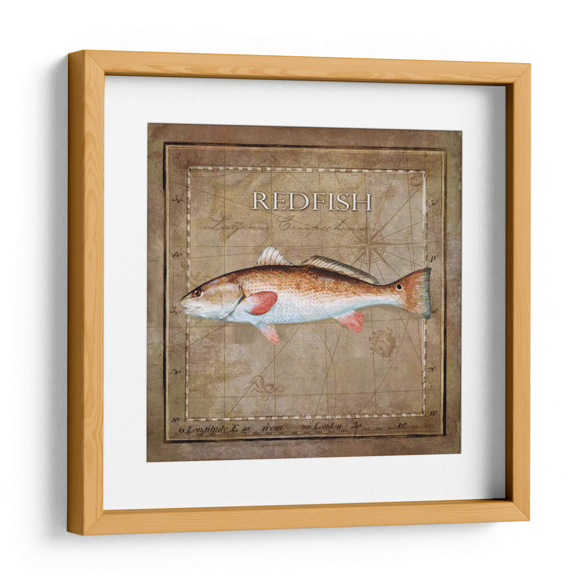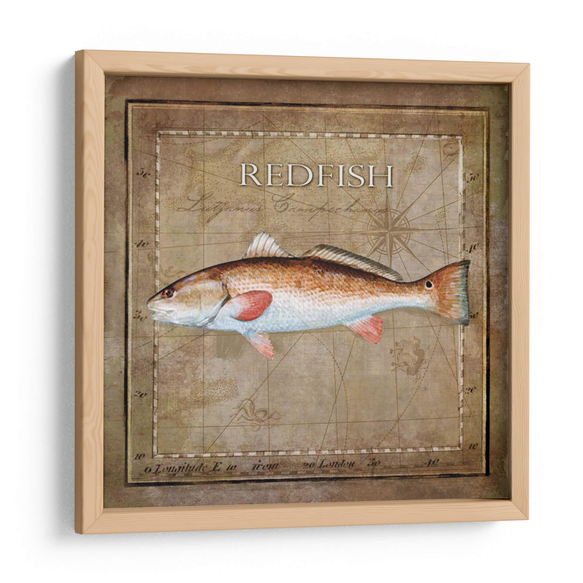 Sumérgete en la belleza del océano con 'Ocean Fish Ix', una obra de arte cautivadora que captura la majestuosidad de un pez rojo en su hábitat natural. Esta pieza, creada por Beth Anne Creative, combina una ilustración detallada de un pez con un fondo inspirado en mapas náuticos antiguos y elementos de brújula, evocando una sensación de aventura y exploración marina. La paleta de colores se centra en tonos cálidos y terrosos, con el vibrante naranja rojizo del pez destacando sobre los fondos sepia y ocre del mapa. La técnica empleada, con sutiles texturas y un sombreado realista, otorga profundidad y vida a la imagen, haciendo que el espectador casi pueda sentir la escama y la frescura del agua. Este cuadro decorativo es ideal para añadir un toque de carácter rústico y un guiño a la pasión por la pesca o la vida marina en espacios como salas de estar, estudios o incluso cocinas temáticas. Su diseño atemporal y su conexión con la naturaleza lo convierten en una adición inspiradora y estéticamente agradable para cualquier hogar moderno o tradicional que busque una conexión con el mar. Añade un toque de elegancia natural a tu decoración.