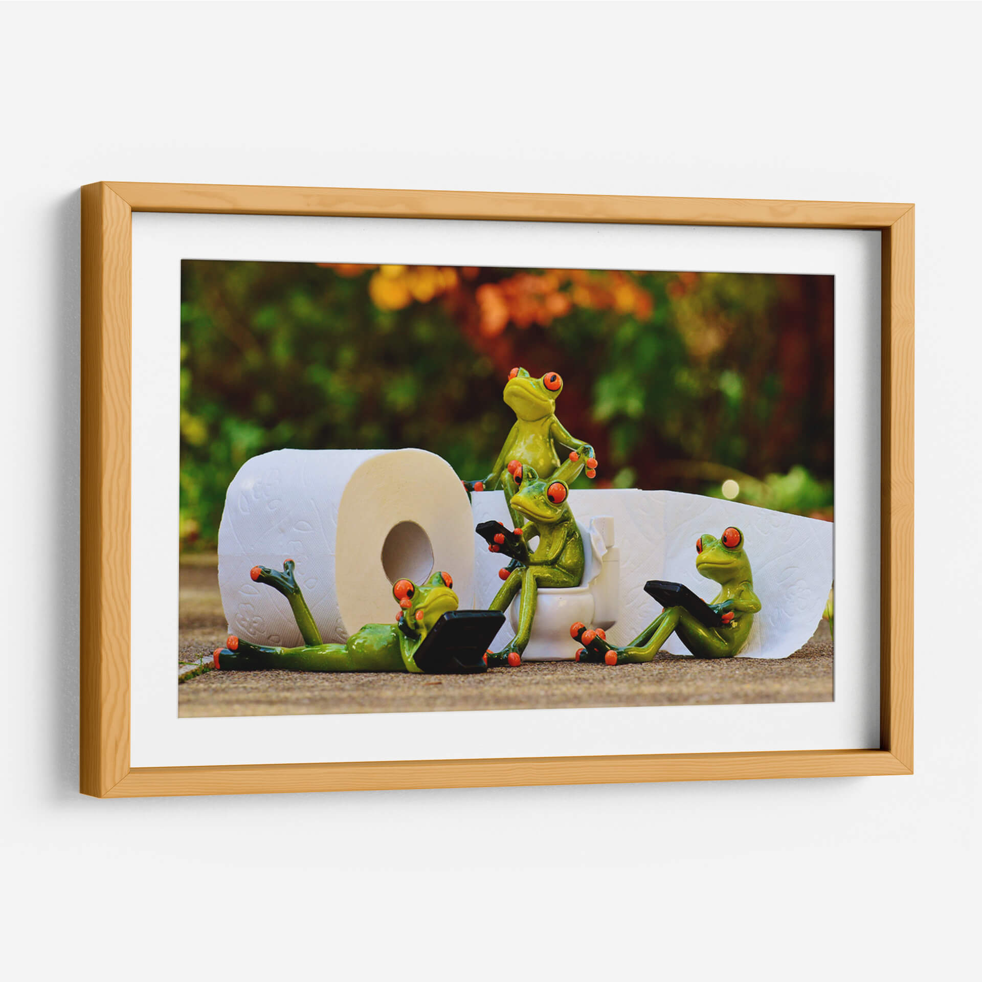Sumérgete en el peculiar y encantador mundo de "Ocio de Ranas", un cuadro decorativo que aporta una dosis de humor y originalidad a cualquier espacio. Esta obra captura a un grupo de ranas verdes, cada una inmersa en su propia actividad digital, rodeadas por un rollo de papel higiénico que añade un toque de surrealismo cotidiano. Los vibrantes ojos naranjas de las ranas contrastan con sus cuerpos esmeralda, creando un foco visual atractivo. El fondo, con tonos otoñales difuminados de verdes, amarillos y naranjas, evoca una atmósfera natural y serena que contrasta con la escena moderna de las ranas. La composición, centrada en estas simpáticas criaturas y el inesperado rollo de papel, invita a la reflexión sobre el ocio en la era digital. Ideal para salones, estudios o incluso baños, este cuadro decorativo es perfecto para quienes buscan romper con lo convencional y añadir una pieza de conversación llena de personalidad y buen humor. Su estilo, una mezcla de realismo figurativo con un guiño al absurdo, lo convierte en una adición única para amantes del arte que aprecian la originalidad y la narrativa visual.