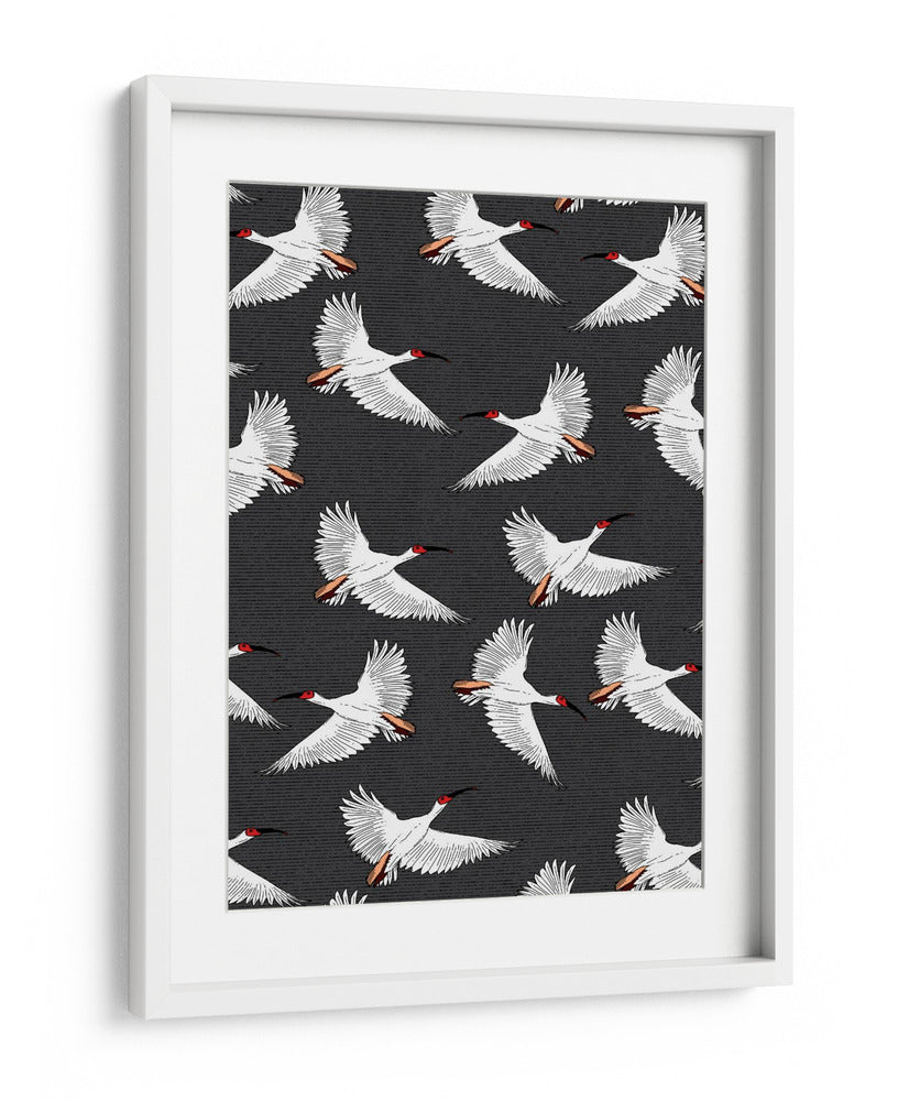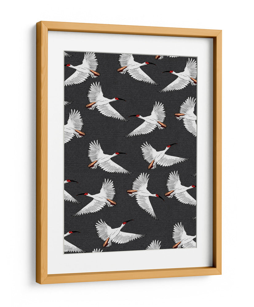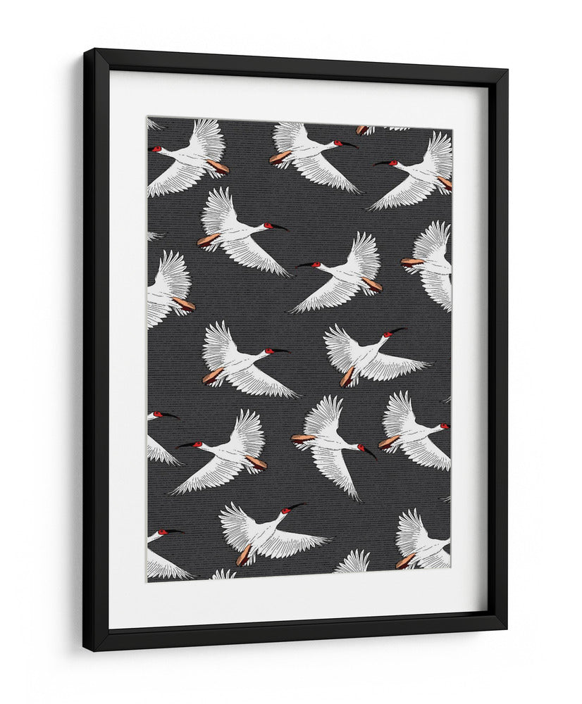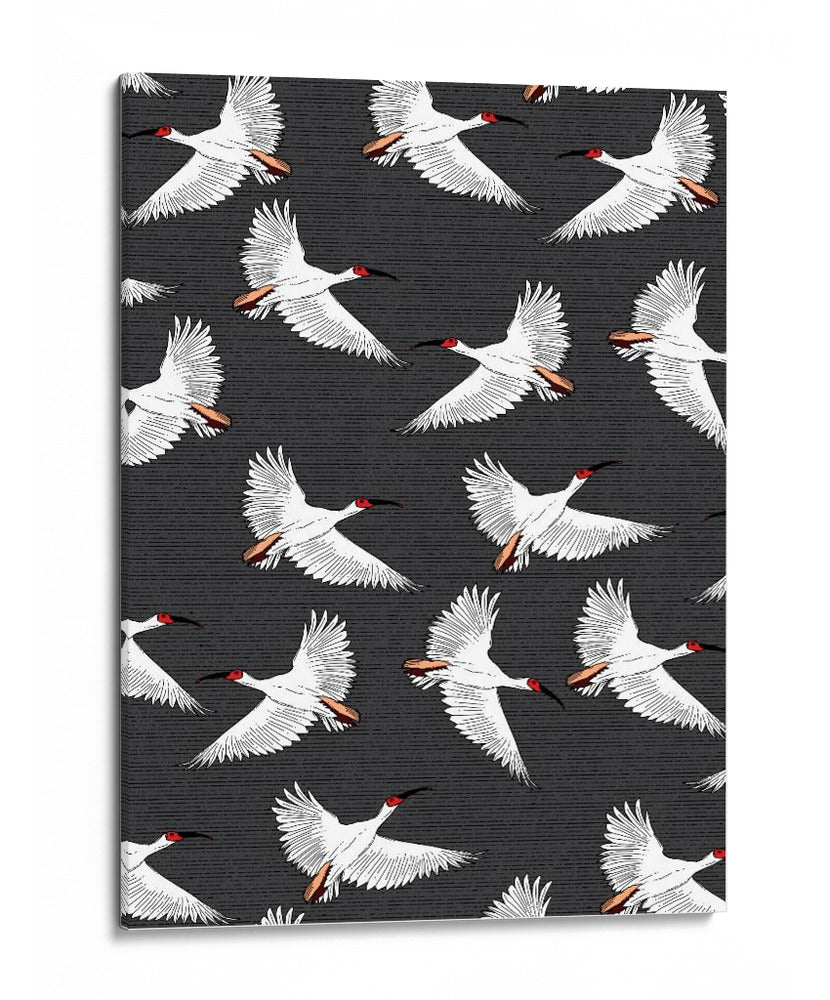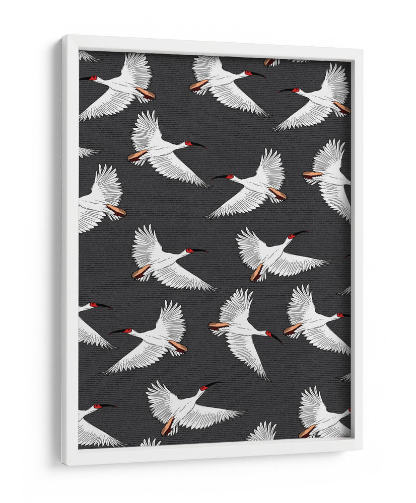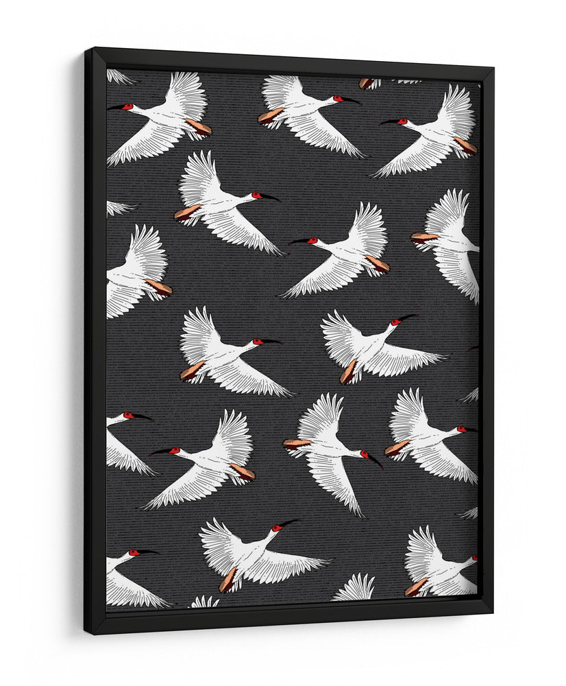 Embárcate en un viaje visual con nuestro exquisito cuadro decorativo 'Patrón de Ibis Crestado'. Esta obra de arte captura la gracia y la libertad de varias aves ibis en pleno vuelo, creando un patrón dinámico y cautivador que aportará una dosis de elegancia natural a cualquier espacio. Los ibis, representados con plumaje blanco puro, contrastan sutilmente con sus cabezas de un vibrante rojo y picos negros, mientras que sus alas desplegadas y detalles en las plumas añaden una sensación de movimiento y ligereza. El fondo texturizado en tonos oscuros profundiza la imagen, haciendo que las aves blancas destaquen con una presencia etérea. Ideal para quienes buscan infundir serenidad y un toque de sofisticación exótica en su hogar u oficina, este cuadro decorativo es una pieza versátil que complementa tanto ambientes modernos como clásicos. Su diseño repetitivo y equilibrado genera una atmósfera de calma y armonía, invitando a la contemplación. Añade un toque de la naturaleza salvaje y la belleza del vuelo a tu decoración con esta impresionante pieza artística que simboliza la libertad y la paz.