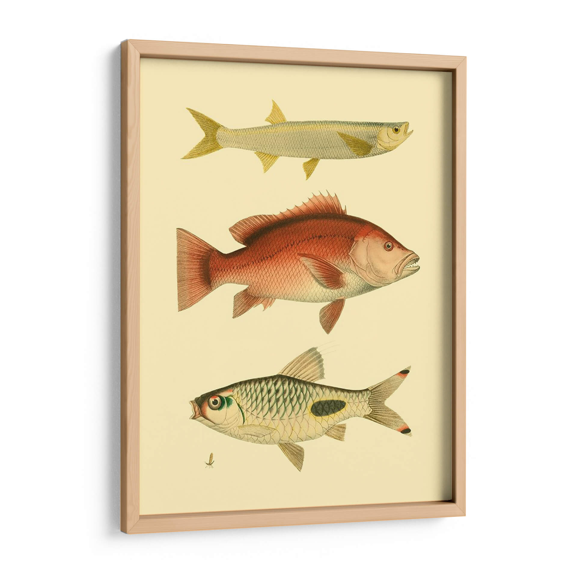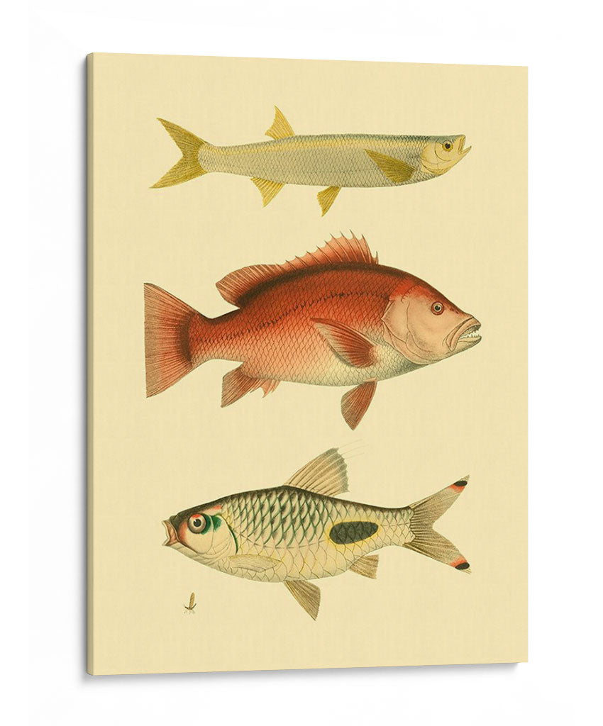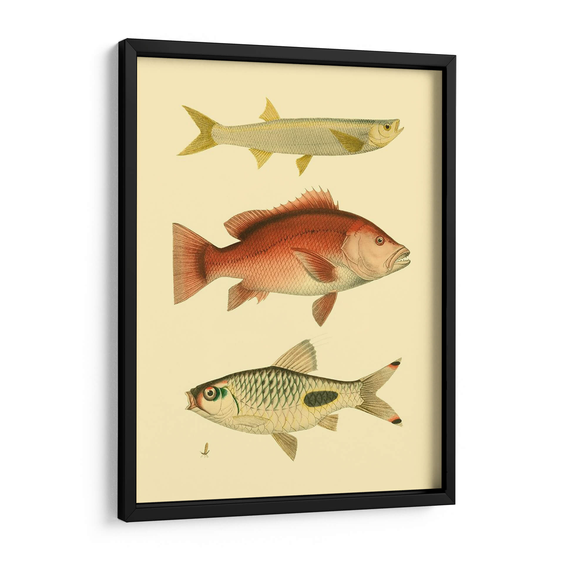 Sumérgete en las profundidades del océano con 'Peces Antiguos II', una obra de arte decorativo que captura la majestuosidad y la diversidad de la vida marina. Este cuadro decorativo presenta una detallada ilustración de tres especies de peces dispuestas verticalmente sobre un fondo de tono crema suave. El pez superior, de cuerpo alargado y plateado con toques amarillos, evoca la agilidad y la velocidad de los habitantes de aguas abiertas. En el centro, un vibrante pez de color rojizo, con escamas detalladas y una expresión cautivadora, aporta un punto focal de color y vitalidad. Finalmente, el pez inferior, con patrones intrincados en verde y plateado, y un ojo penetrante, añade una capa de complejidad y fascinación. La técnica de ilustración, que recuerda a los estudios de historia natural, confiere a la pieza un aire de autenticidad y un encanto vintage. Los colores suaves y la composición equilibrada hacen de este cuadro una adición perfecta para cualquier espacio que busque transmitir una sensación de calma, curiosidad y conexión con la naturaleza. Ideal para salones, estudios o incluso un comedor temático, 'Peces Antiguos II' es una pieza que inspira conversación y admiración, aportando un toque de elegancia y un guiño al mundo subacuático.