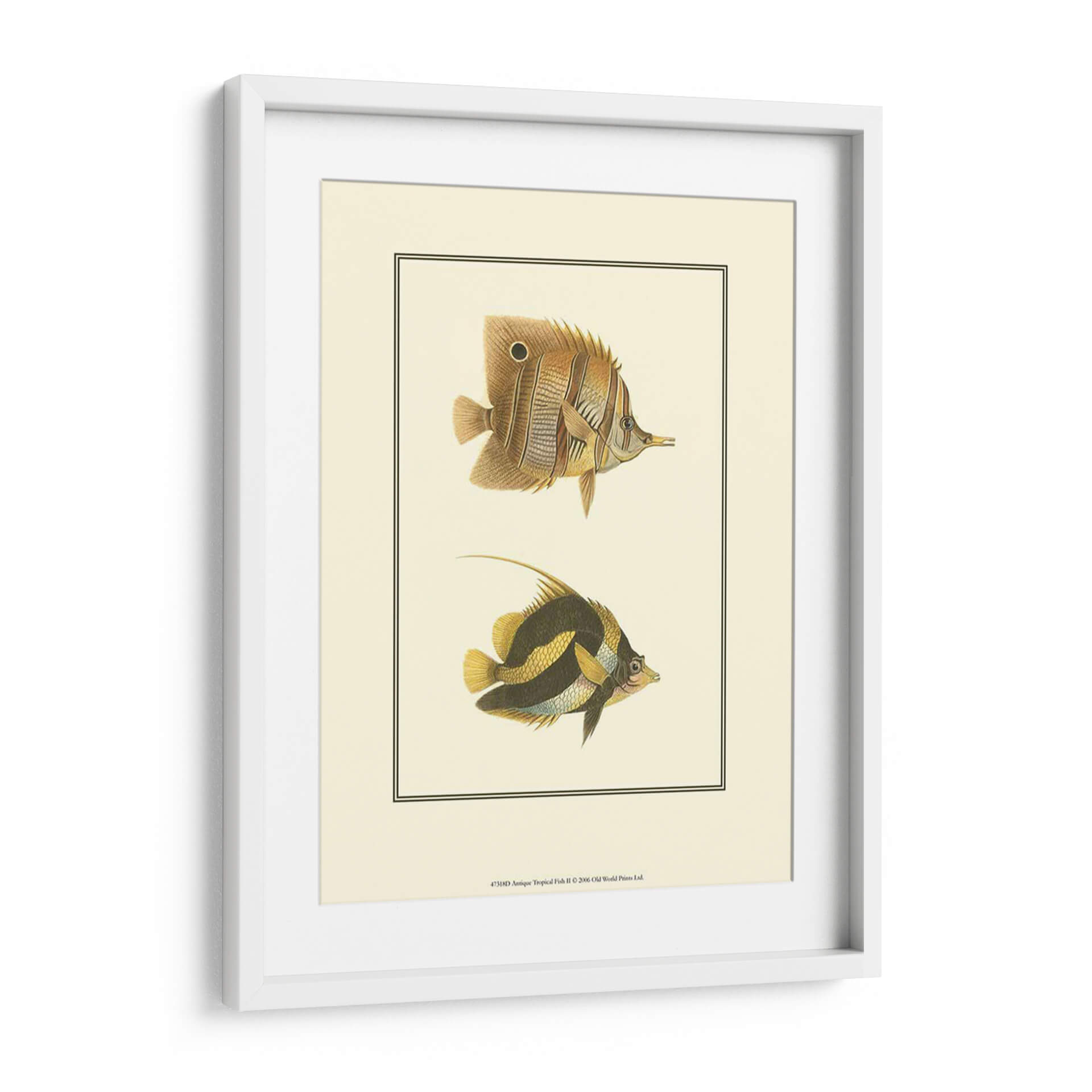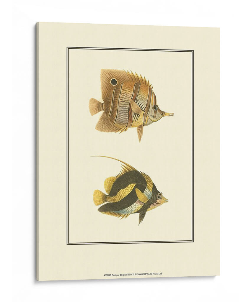 Sumérgete en la belleza del océano con nuestro cuadro decorativo "Peces Tropicales Antiguos II". Esta obra, creada por Vision Studio, captura la delicadeza y el colorido de la vida marina con un estilo que evoca las ilustraciones científicas clásicas. Presenta dos peces tropicales detallados, uno con tonos dorados y aletas acanaladas, y otro más oscuro con vibrantes bandas amarillas y una aleta dorsal alargada. La paleta de colores, dominada por tonos tierra, ocres y toques de dorado y negro, aporta una sensación de calma y elegancia atemporal. La composición simétrica y el encuadre enmarcado centran la atención en la majestuosidad de estas criaturas, invitando a la contemplación. Este cuadro decorativo es perfecto para añadir un toque de sofisticación natural a salones, dormitorios o estudios, creando un ambiente sereno y educativo. Ideal para amantes de la naturaleza, la biología marina o aquellos que buscan una pieza de arte distinguida y llena de detalles.