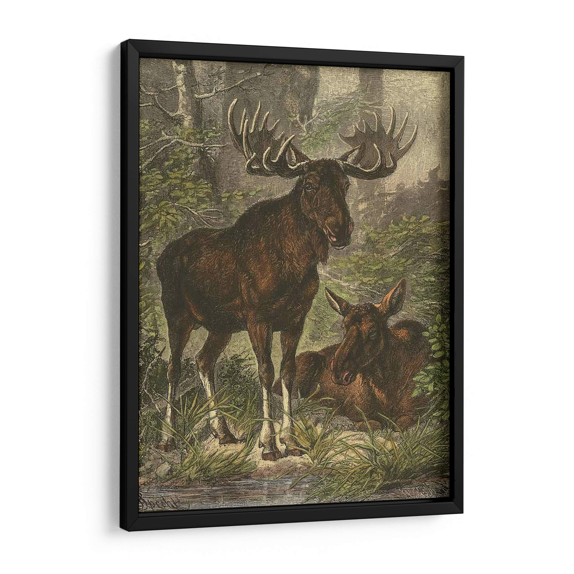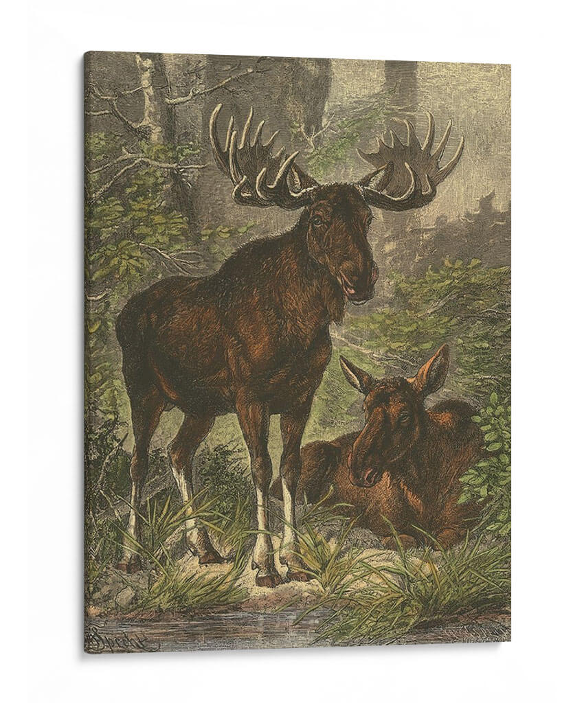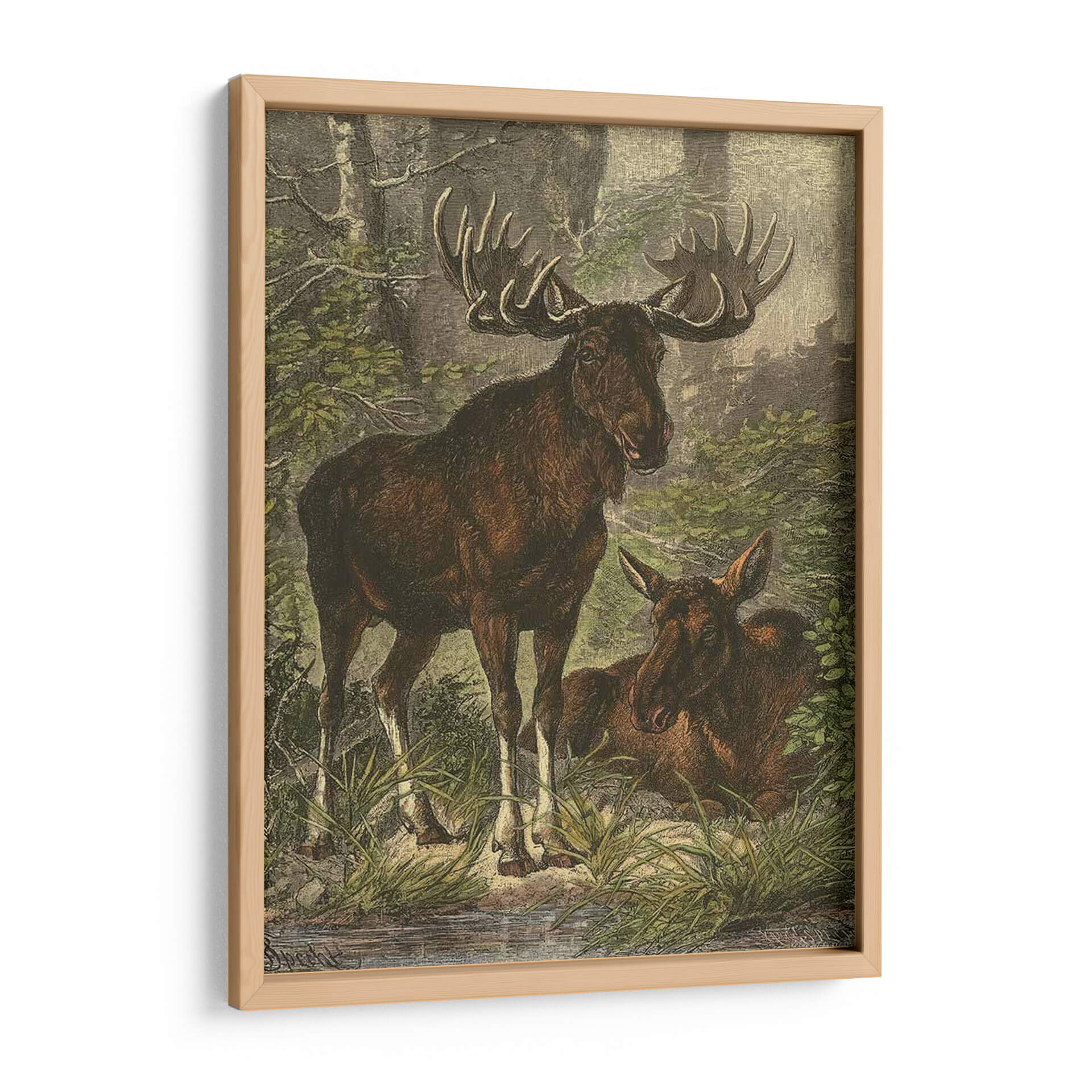 Sumérgete en la majestuosidad de la naturaleza con nuestro cuadro decorativo 'Pequeño Alce', una obra que captura la serena presencia de estos imponentes animales en su hábitat natural. La pieza, inspirada en el estilo detallado de Friedrich Specht, nos transporta a un bosque frondoso donde la luz se filtra entre las hojas, creando una atmósfera de tranquilidad y contemplación. Los tonos tierra predominantes, enriquecidos con verdes profundos y el marrón cálido de los alces, otorgan a la obra una sensación de autenticidad y conexión con lo salvaje. La composición, centrada en la figura de un majestuoso alce macho con imponentes astas y un alce más joven recostado, evoca una sensación de paz y armonía familiar. Este cuadro decorativo es ideal para añadir un toque de elegancia rústica a tu sala de estar, un rincón de lectura acogedor, o incluso para aportar un aire de sofisticación natural a tu oficina. Su detallado grabado antiguo, con un toque vintage, lo convierte en una pieza de conversación única, perfecta para los amantes de la fauna, la naturaleza y el arte clásico que buscan una decoración de pared distintiva y llena de carácter. Añade este portal a un mundo de calma y belleza natural a tu hogar.