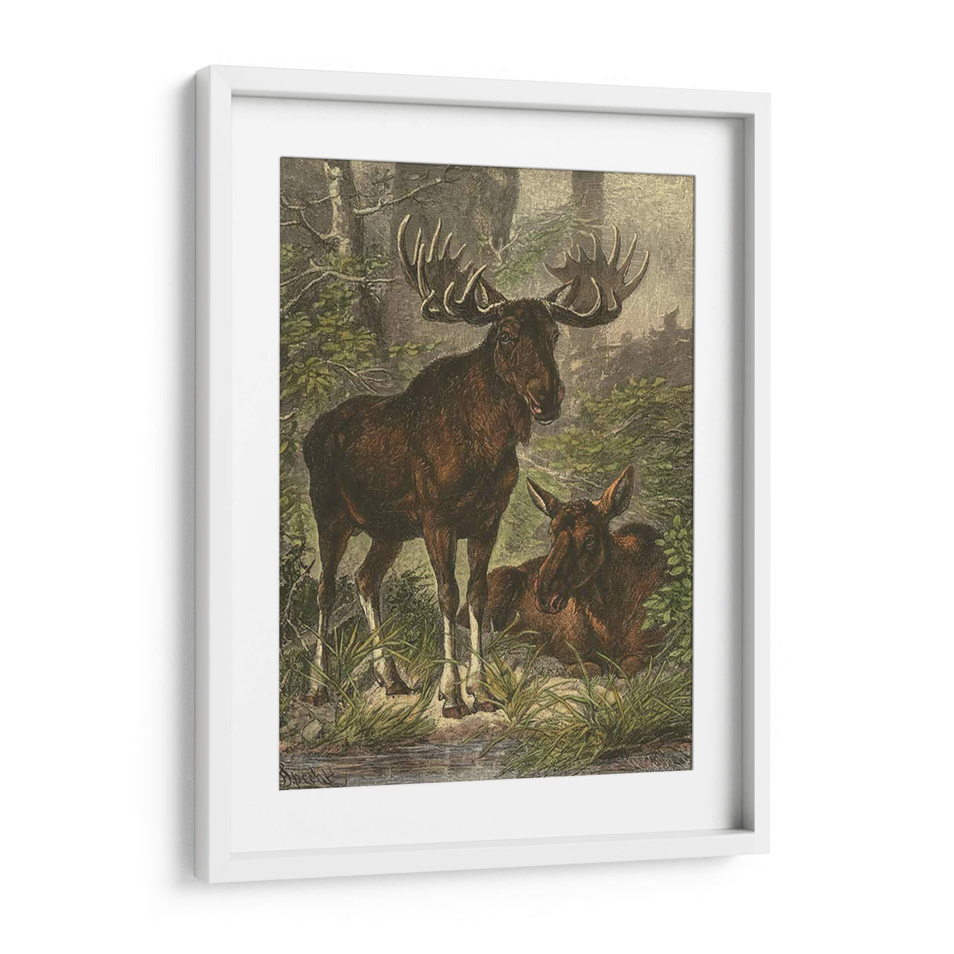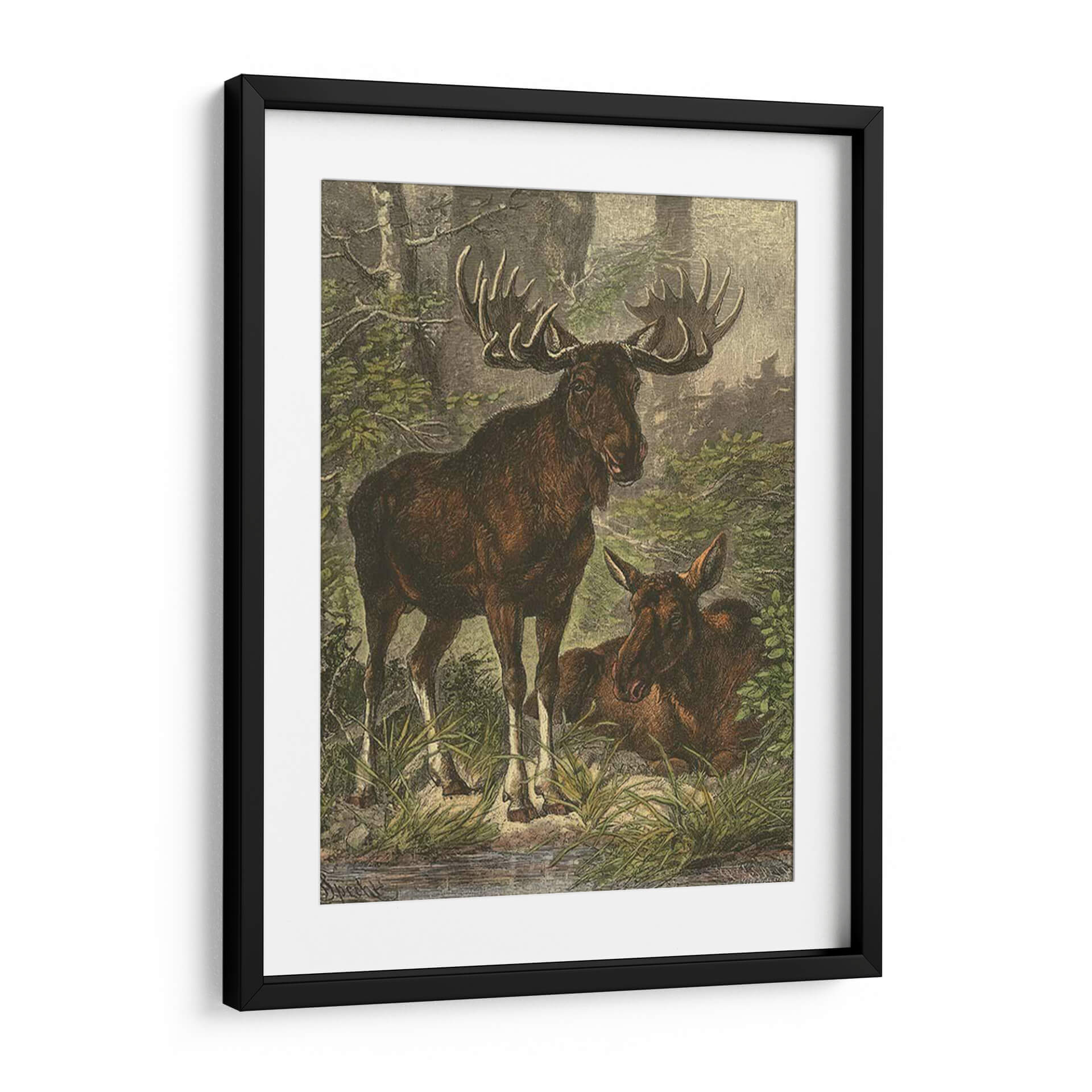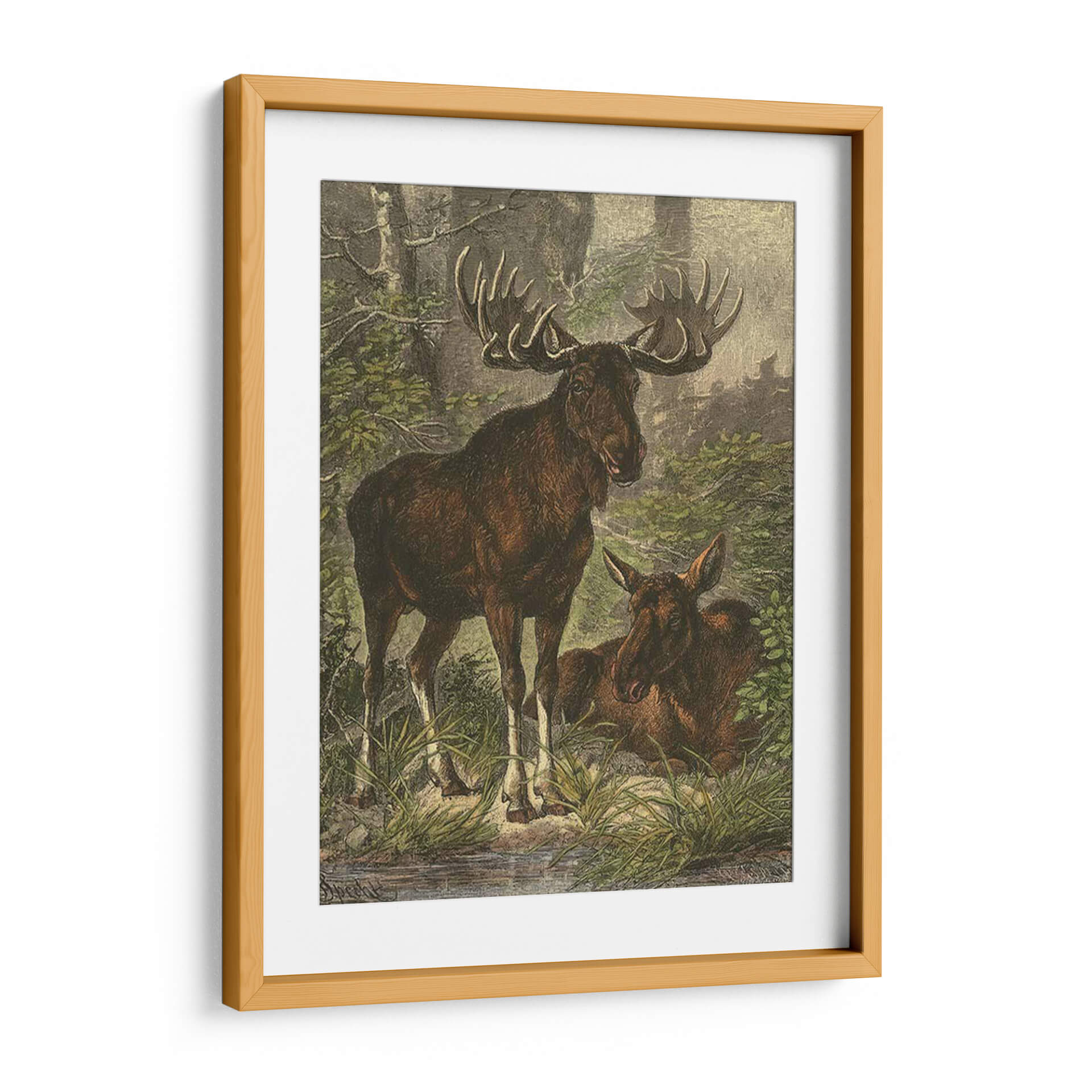 Sumérgete en la majestuosidad de la naturaleza con nuestro cuadro decorativo 'Pequeño Alce', una obra que captura la serena presencia de estos imponentes animales en su hábitat natural. La pieza, inspirada en el estilo detallado de Friedrich Specht, nos transporta a un bosque frondoso donde la luz se filtra entre las hojas, creando una atmósfera de tranquilidad y contemplación. Los tonos tierra predominantes, enriquecidos con verdes profundos y el marrón cálido de los alces, otorgan a la obra una sensación de autenticidad y conexión con lo salvaje. La composición, centrada en la figura de un majestuoso alce macho con imponentes astas y un alce más joven recostado, evoca una sensación de paz y armonía familiar. Este cuadro decorativo es ideal para añadir un toque de elegancia rústica a tu sala de estar, un rincón de lectura acogedor, o incluso para aportar un aire de sofisticación natural a tu oficina. Su detallado grabado antiguo, con un toque vintage, lo convierte en una pieza de conversación única, perfecta para los amantes de la fauna, la naturaleza y el arte clásico que buscan una decoración de pared distintiva y llena de carácter. Añade este portal a un mundo de calma y belleza natural a tu hogar.