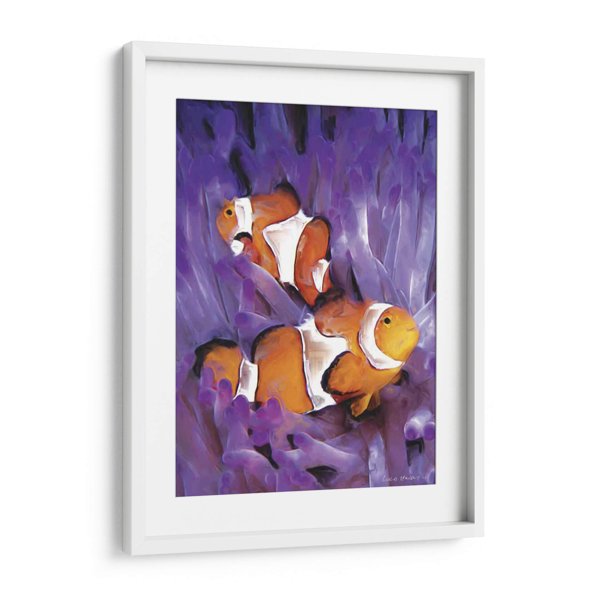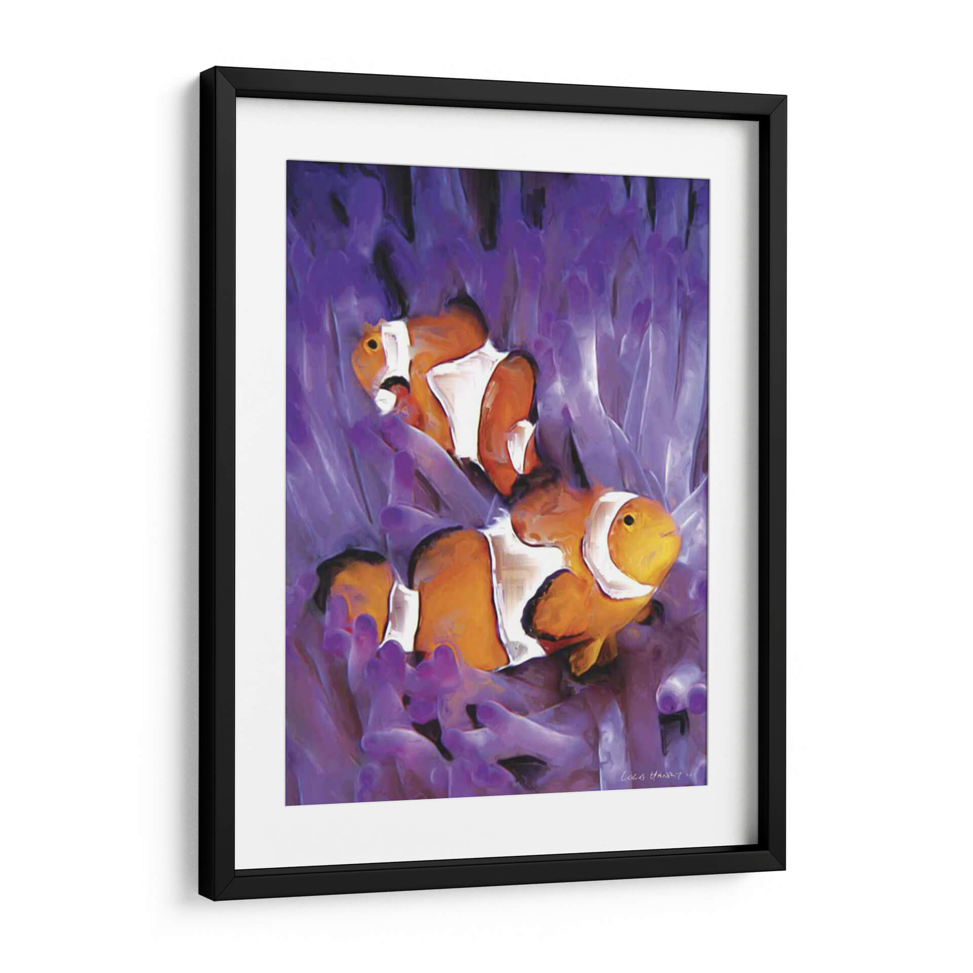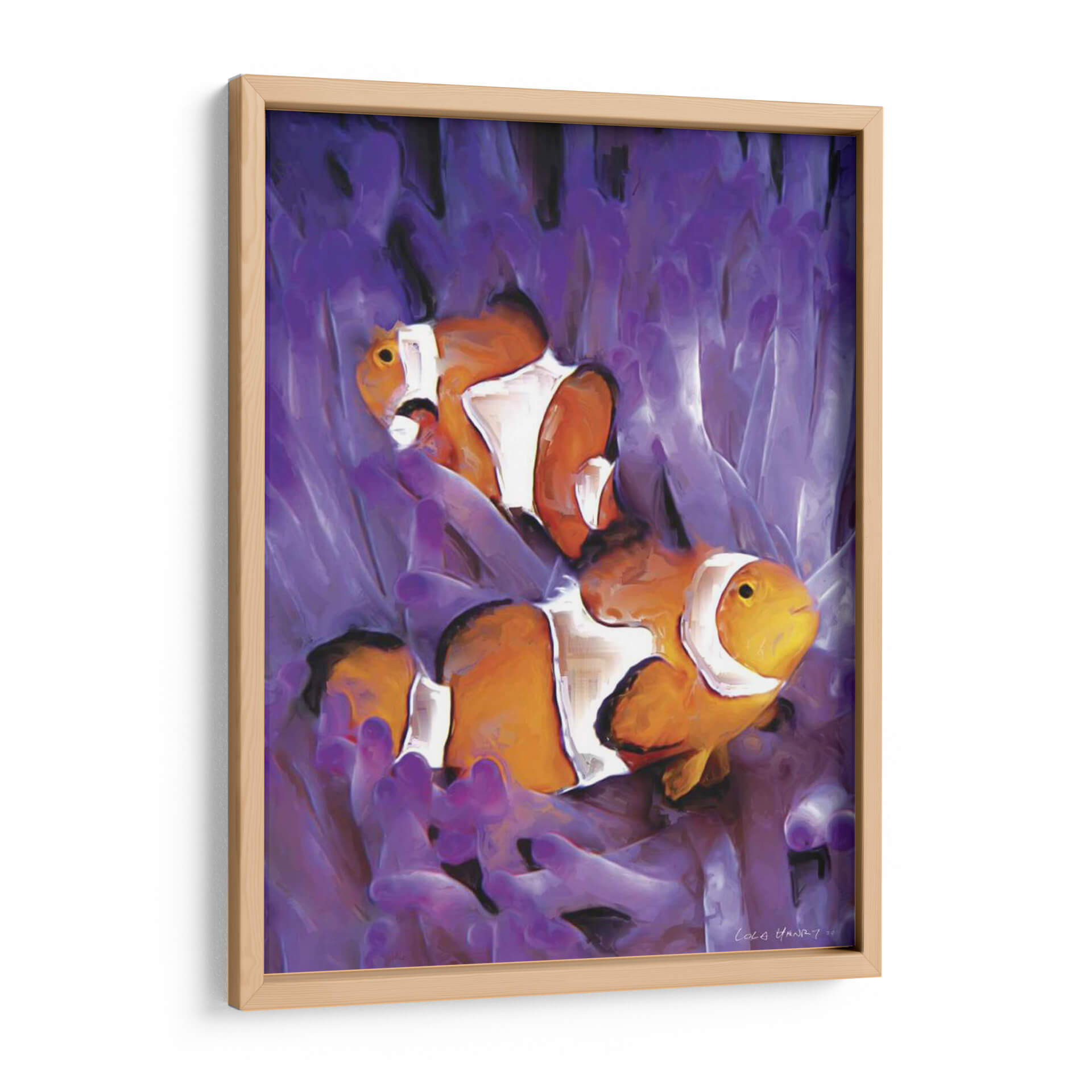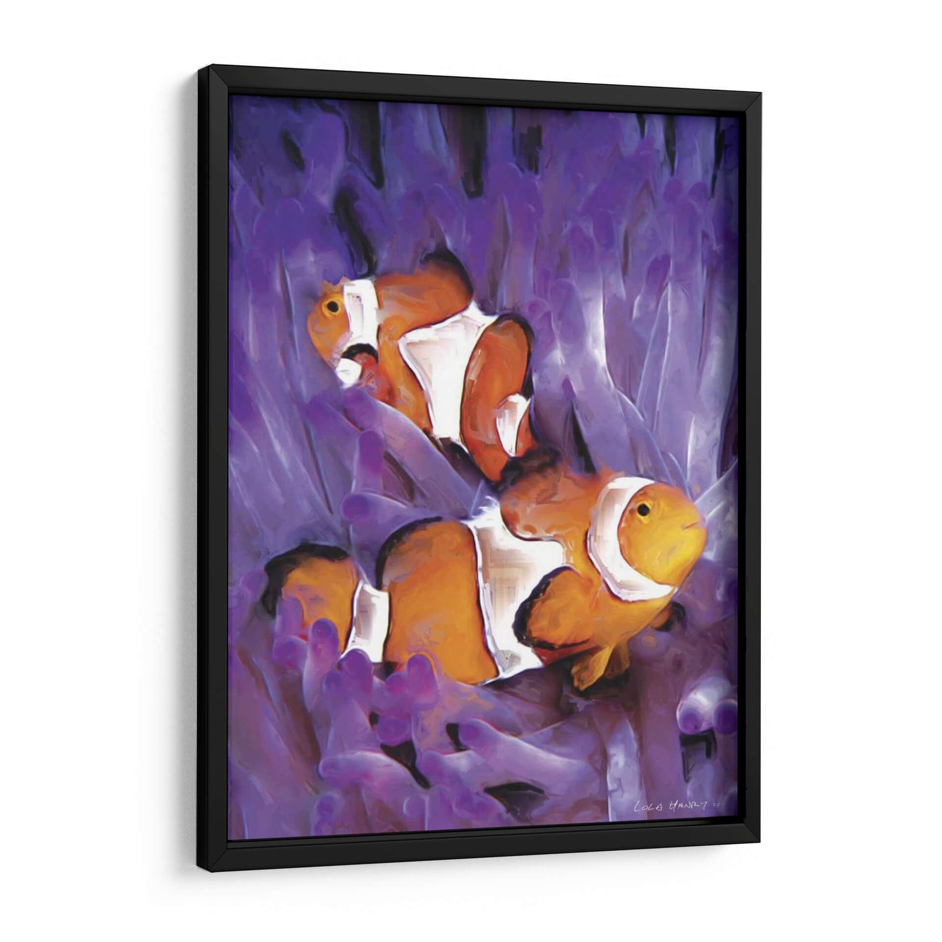 Sumérgete en las profundidades marinas con "Pescado Enjoyado I", una cautivadora obra de arte que captura la vibrante vida del océano. La artista Lola Henry nos transporta a un arrecife de coral, donde dos peces payaso nadan entre los tentáculos de una anémona de un púrpura intenso. La pincelada suelta y expresiva evoca la textura suave y el movimiento etéreo del entorno acuático, mientras que la paleta de colores, dominada por los naranjas cálidos de los peces y los vibrantes tonos púrpuras de la anémona, crea un contraste visual impactante y lleno de energía. Esta pieza de arte contemporáneo es perfecta para añadir un toque de color y vitalidad a cualquier espacio. Ideal para salones modernos, dormitorios serenos o incluso oficinas que buscan inspiración marina. "Pescado Enjoyado I" no es solo una imagen, es una invitación a experimentar la belleza y la tranquilidad del mundo submarino, transformando tu hogar en un oasis de paz y estilo. Su composición dinámica y su atmósfera juguetona la convierten en una adición memorable a tu colección de arte de pared.