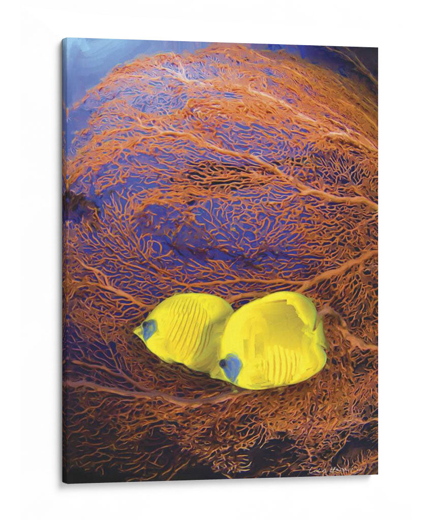 Sumérgete en las profundidades marinas con "Pescado Enjoyado II", una cautivadora obra de arte que captura la vibrante vida submarina. Esta pieza, creada por la talentosa artista Lola Henry, presenta dos peces mariposa de un amarillo radiante posados sobre un abanico de mar de intrincado diseño en tonos naranja quemado. El contraste entre el azul profundo del océano y los cálidos tonos del coral crea una atmósfera hipnotizante, invitando a la contemplación y la serenidad. La pincelada evoca una sensación de movimiento y texturas, dando vida a este rincón del ecosistema marino. El estilo, que combina realismo con toques impresionistas, hace que esta obra sea versátil para cualquier decoración, desde un estudio moderno hasta un salón costero. "Pescado Enjoyado II" es más que un simple cuadro decorativo; es una ventana a la belleza efímera del océano, ideal para aquellos que buscan infundir calma, color y un toque de naturaleza exótica en sus espacios vitales o de trabajo. Añade una dosis de encanto acuático a tu hogar u oficina y deja que la tranquilidad del mar te envuelva.