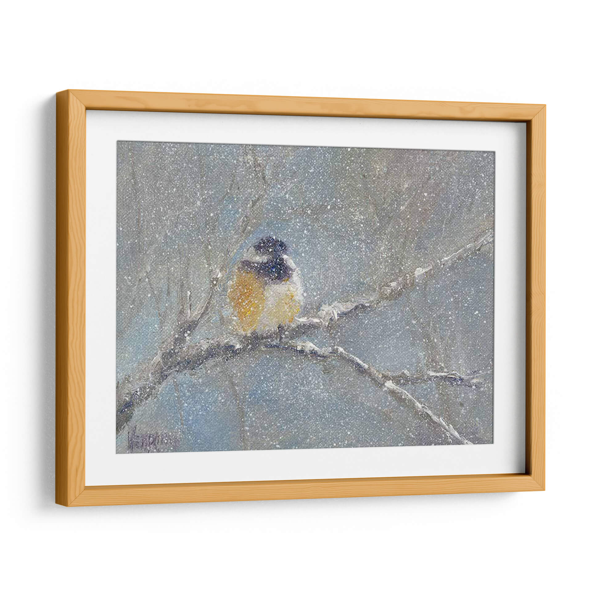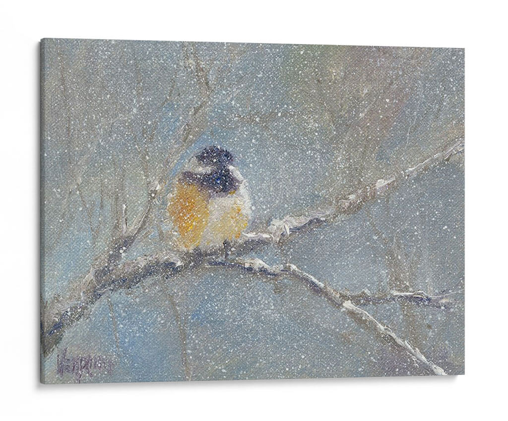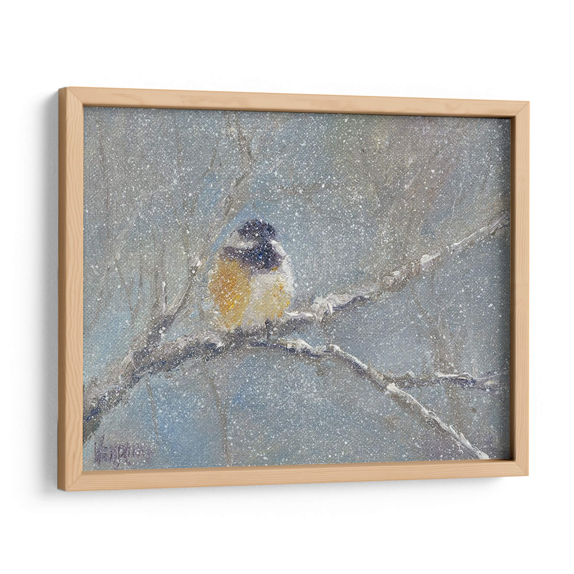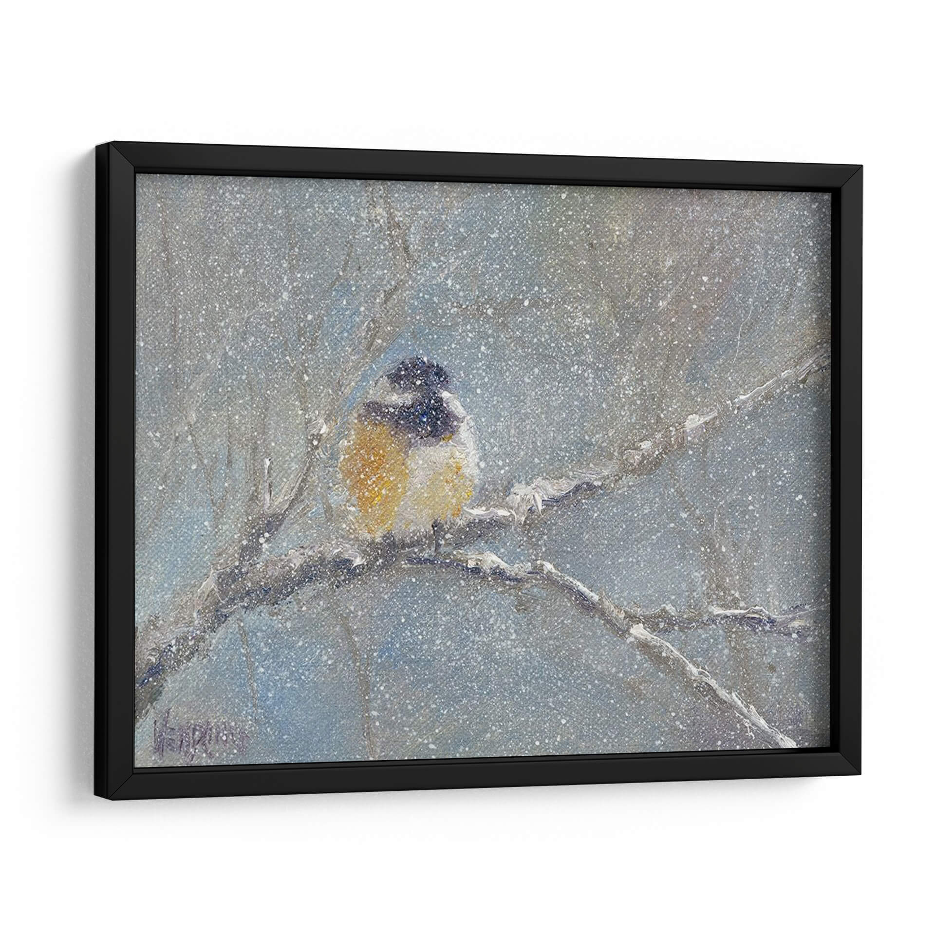 Sumérgete en la serena belleza del invierno con "Posibilidad De Nieve I", una obra maestra de Marilyn Wendling. Este cautivador cuadro decorativo captura el delicado momento en que un pequeño pájaro se posa en una rama nevada, rodeado por la suave caída de copos. La paleta de colores, dominada por fríos tonos azules y grises, se ve sutilmente realzada por los cálidos toques ocres y blancos del plumaje del ave, creando un contraste visual que atrae la mirada. La técnica de pintura evoca una sensación de textura y profundidad, permitiéndote casi sentir el frío del aire invernal y la suavidad de la nieve. La composición íntima y el tema de la naturaleza en su estado más puro transmiten una atmósfera de paz y contemplación, ideal para espacios que buscan un refugio de tranquilidad. Este cuadro es perfecto para añadir un toque de elegancia natural a tu sala de estar, dormitorio o estudio, recordándote la resiliencia y la belleza efímera de la vida en cada estación. Una pieza que invita a la reflexión y embellece cualquier rincón con su encanto atemporal.