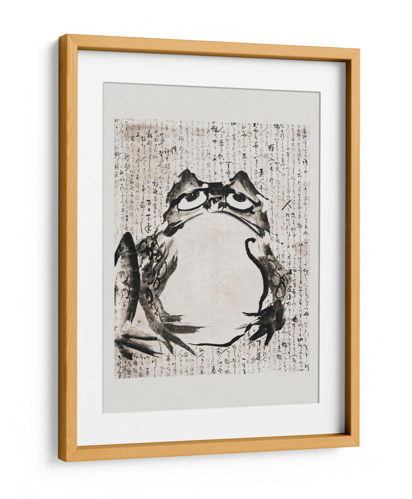 Este cautivador cuadro decorativo, "Rana japonesa" del artista Getsuju, te transporta a la delicadeza del arte tradicional japonés. La obra maestra presenta una rana detallada con trazos de pincel audaces y expresivos, ejecutada en una paleta de colores monocromáticos que evoca una sensación de calma y contemplación. El fondo se enriquece con caligrafía japonesa intrincada, añadiendo una capa de autenticidad cultural y misterio. Esta pieza es perfecta para aquellos que aprecian la estética minimalista y la profundidad de las artes asiáticas. Imagina este lienzo aportando un toque de serenidad y elegancia a tu sala de estar, oficina o cualquier espacio que busque inspiración y un toque de sofisticación oriental. Su composición equilibrada y su temática única lo convierten en un punto focal distintivo, ideal para complementar decoraciones contemporáneas o tradicionales, creando un ambiente de armonía y refinamiento. Añade esta obra de arte para infusionar tu hogar con la belleza atemporal del arte nipón.