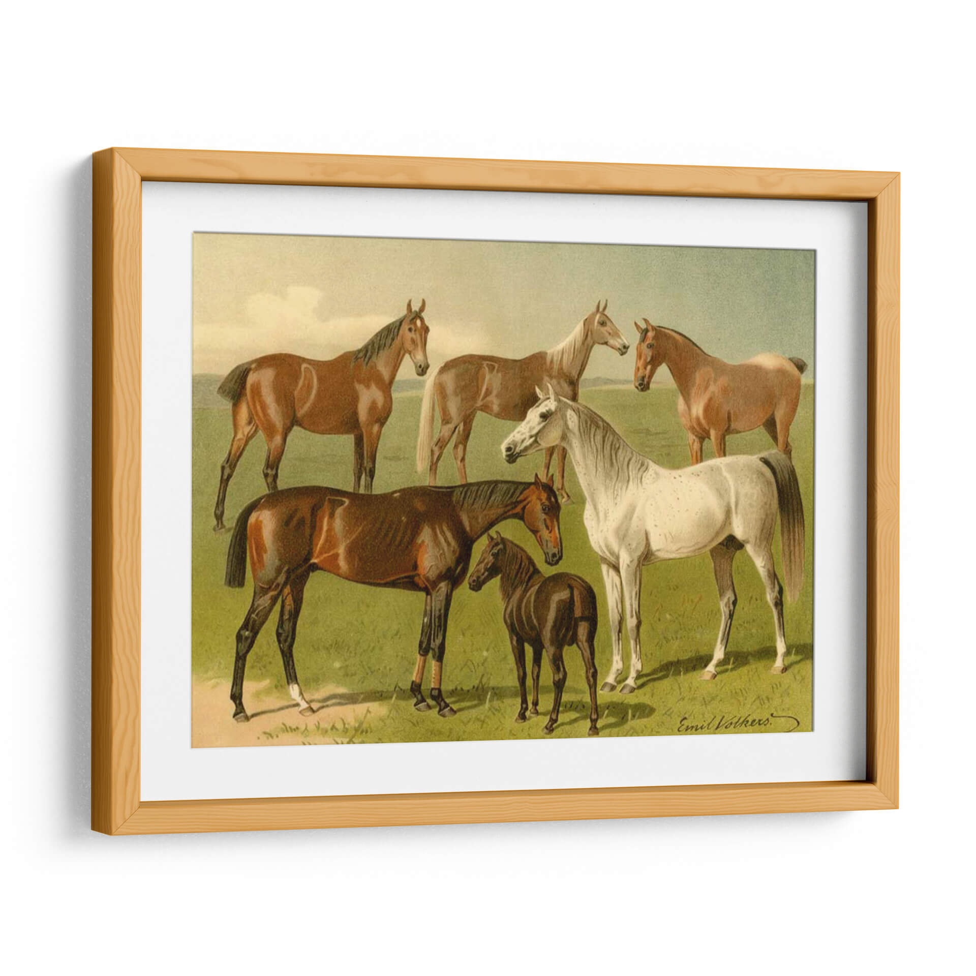 Sumérgete en la elegancia y la fuerza de la naturaleza con nuestro exclusivo cuadro decorativo "Razas de Caballos I" del renombrado artista Emil Volkers. Esta obra maestra captura la majestuosidad de diversas razas equinas en un sereno paisaje campestre. Cada caballo está representado con un detalle exquisito, desde la musculatura definida hasta la crin ondeante al viento, transmitiendo una sensación de potencia y gracia inigualable. La paleta de colores, dominada por tonos tierra cálidos y verdes naturales, crea una atmósfera de tranquilidad y conexión con el campo, ideal para añadir un toque de distinción a cualquier espacio. El estilo, que combina la precisión del grabado con la dulzura de la acuarela, otorga a la pieza una textura visual única y un encanto atemporal. Este cuadro decorativo es perfecto para los amantes de los animales, los apasionados de la equitación o cualquier persona que busque infundir a su hogar u oficina una sensación de nobleza y serenidad. Imagina cómo esta obra podría convertirse en el punto focal de tu sala de estar, aportar un ambiente de calma a tu estudio o añadir un toque de elegancia a tu dormitorio. "Razas de Caballos I" no es solo una decoración, es una invitación a admirar la belleza indómita de estos magníficos animales.
