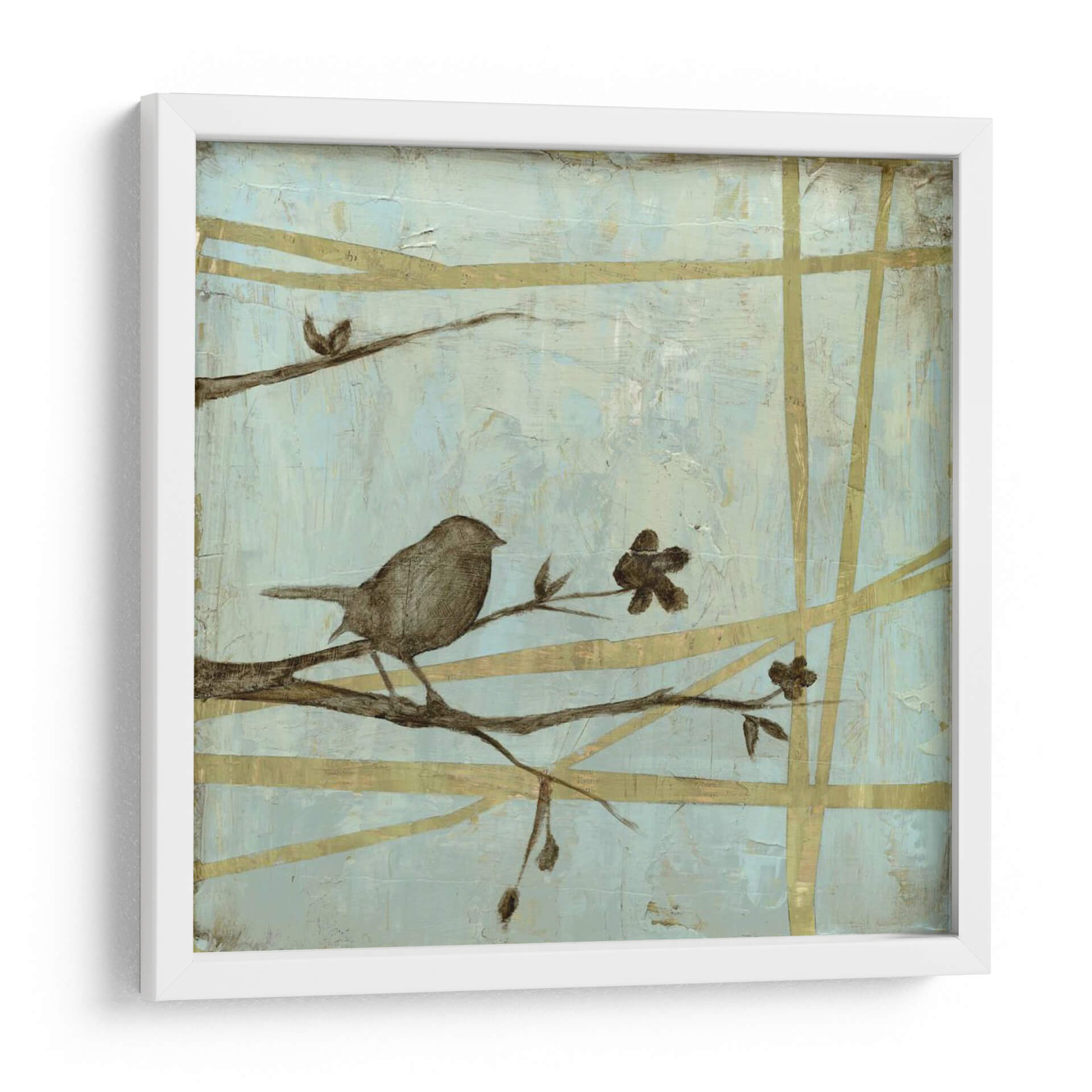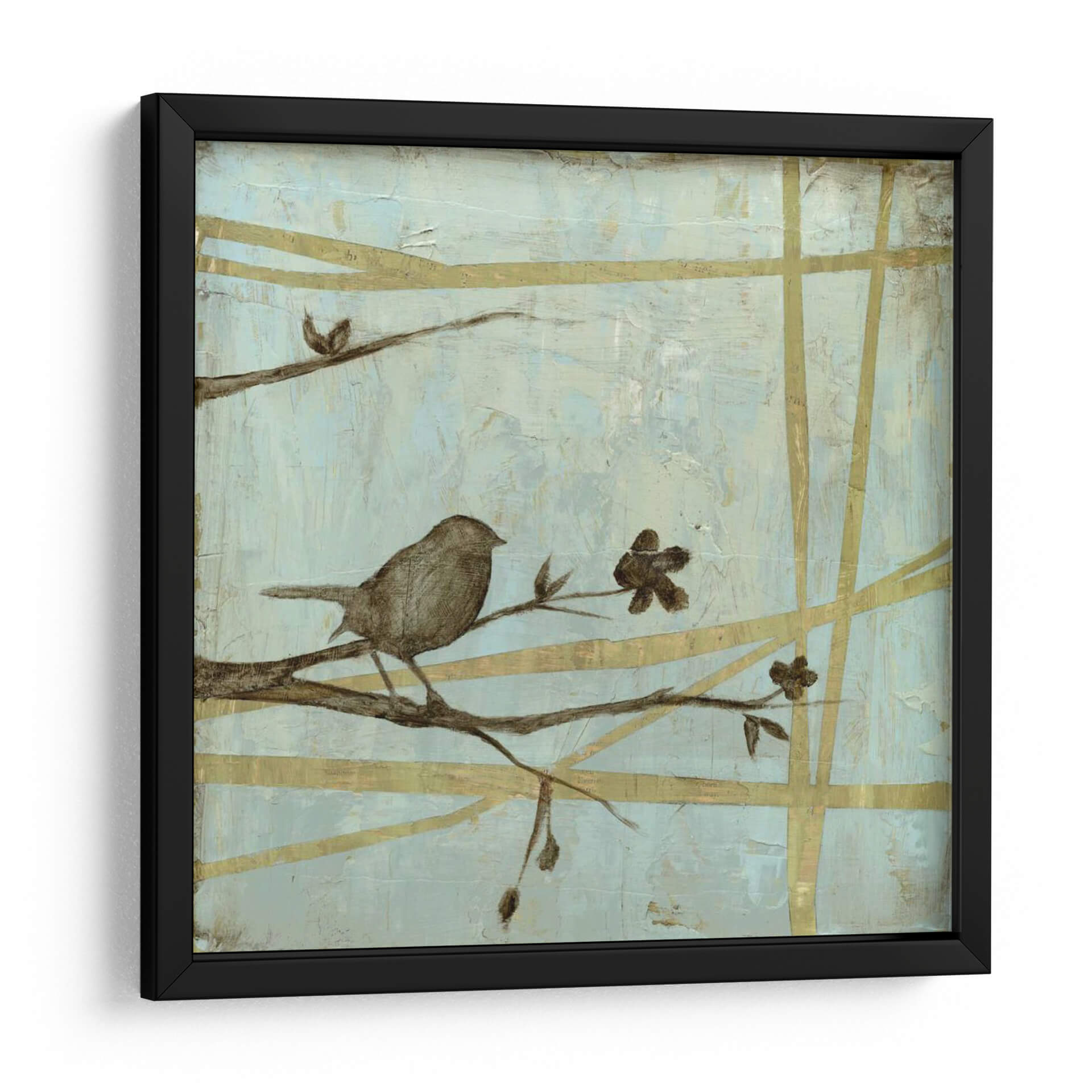 Sumérgete en la serenidad del bosque con "Respire Woodland II", una cautivadora obra de arte de Jennifer Goldberger. Este cuadro decorativo presenta un delicado pájaro posado sobre una rama, rodeado de sutiles flores y un entramado de líneas doradas que evocan la tranquilidad de la naturaleza. La paleta de colores, dominada por suaves tonos celestes y toques terrosos, crea una atmósfera de calma y contemplación, ideal para cualquier espacio que busque un respiro del ajetreo diario. El estilo semi-abstracto y la composición equilibrada invitan a la meditación y a la conexión con el mundo natural. "Respire Woodland II" es más que una simple pieza decorativa; es una ventana a un momento de paz, perfecta para añadir un toque de elegancia serena a tu sala de estar, dormitorio u oficina. Deja que la delicadeza de esta obra transporte tu hogar a un santuario de tranquilidad y belleza natural, inspirando momentos de reflexión y aprecio por la simplicidad.