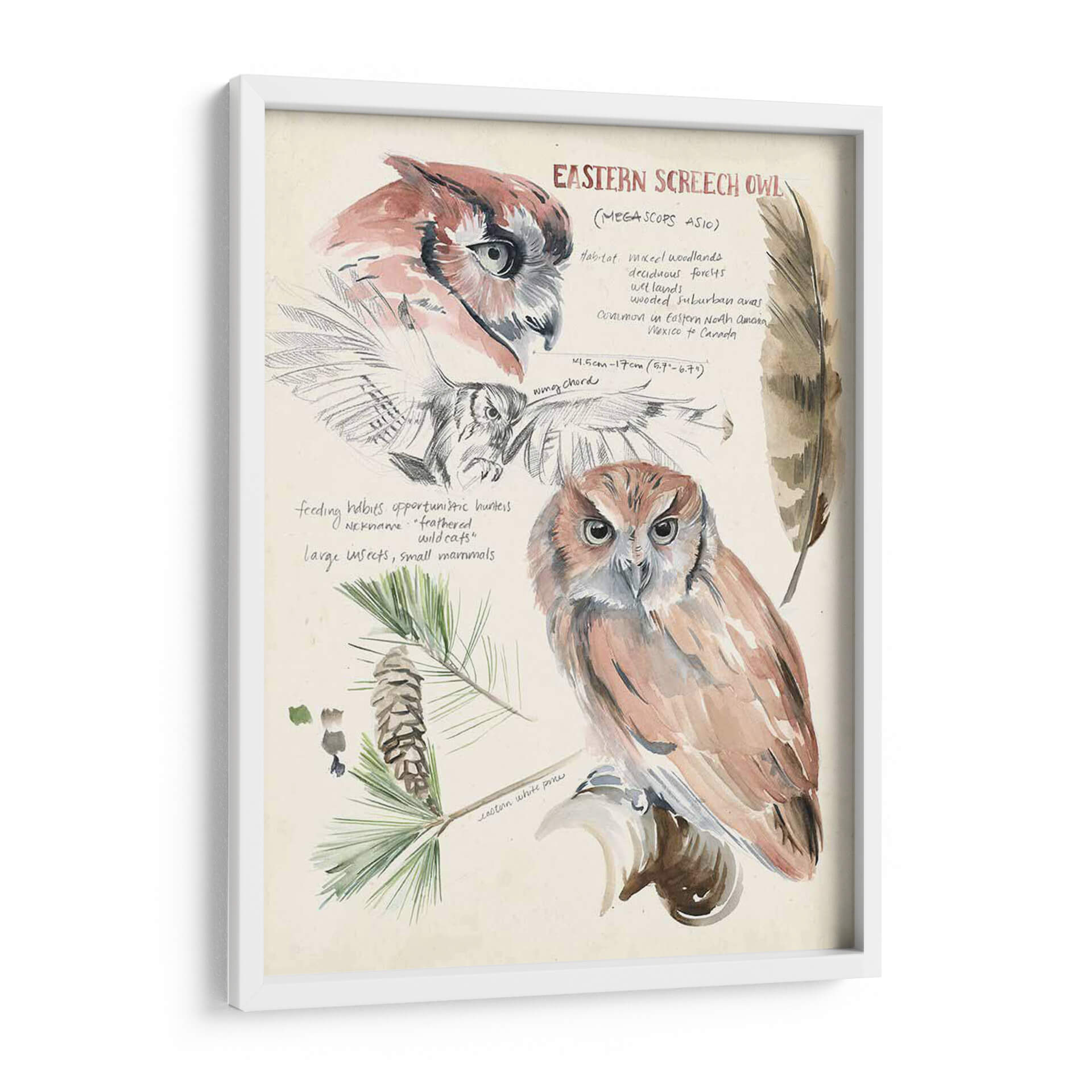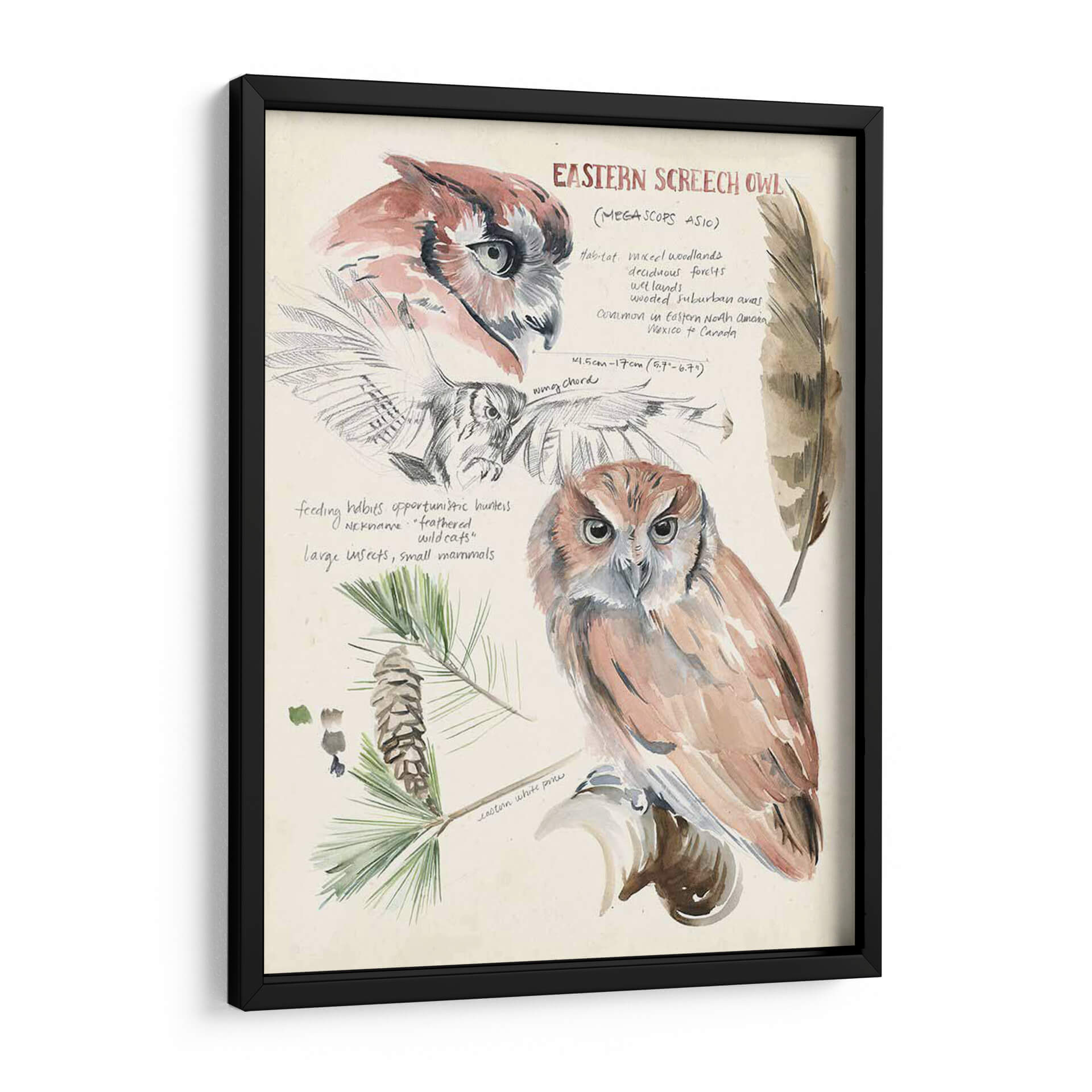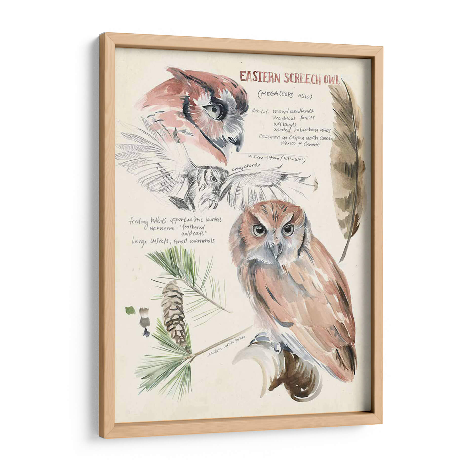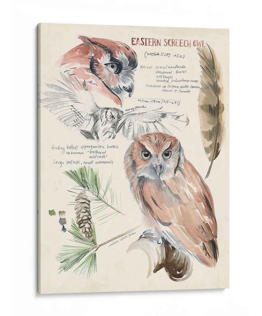 Sumérgete en el fascinante mundo de la naturaleza con este exquisito cuadro decorativo, "Revistas De Vida Silvestre I", de Jennifer Paxton Parker. La obra captura la esencia del búho real americano, presentando una detallada ilustración que combina la delicadeza de la acuarela con trazos a lápiz precisos. Los tonos cálidos y terrosos predominan, evocando una sensación de calma y conexión con el entorno natural. La composición, que incluye estudios de diferentes ángulos del ave, sus alas en pleno vuelo y elementos botánicos como una piña de pino y ramas, ofrece una perspectiva multifacética y educativa. Es ideal para espacios que buscan un toque de serenidad y elegancia, como una sala de estar acogedora, un estudio o una oficina que aprecie la belleza de la fauna. Este cuadro decorativo no solo embellece, sino que también invita a la contemplación y al aprecio por los detalles intrincados de la vida silvestre, convirtiéndose en una pieza central inspiradora para cualquier amante de la naturaleza y el arte.