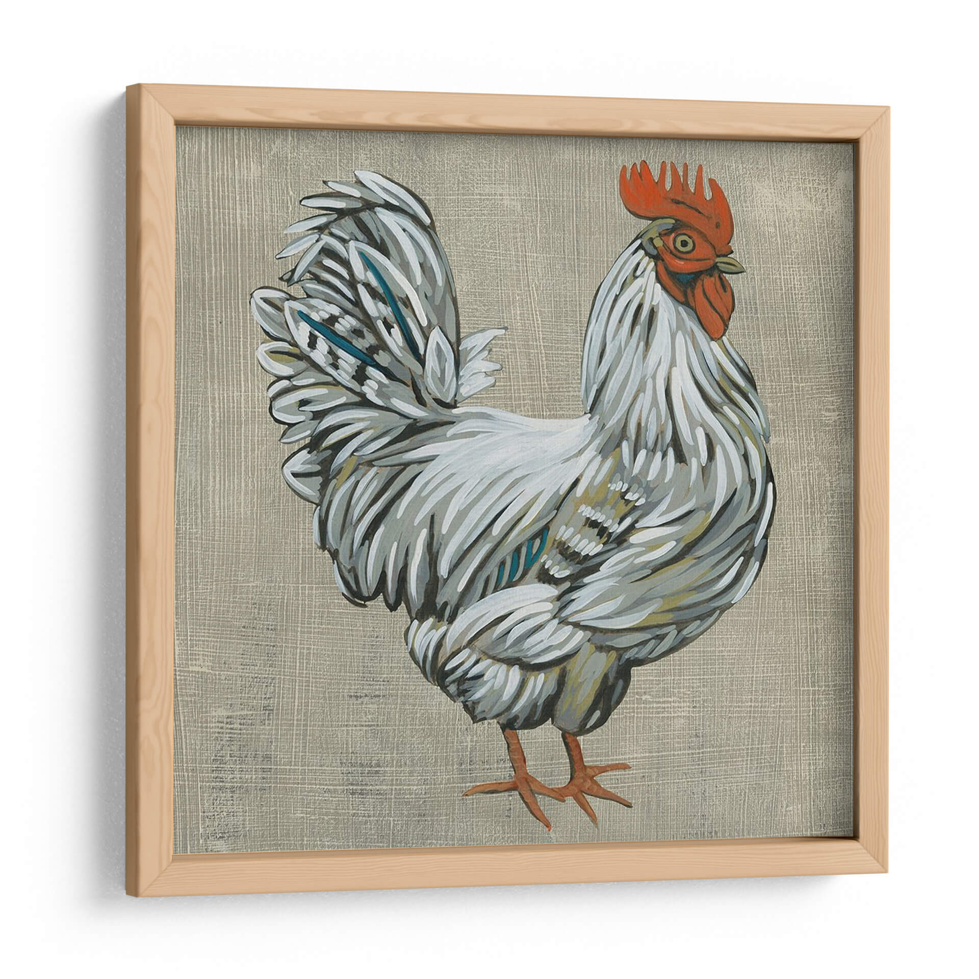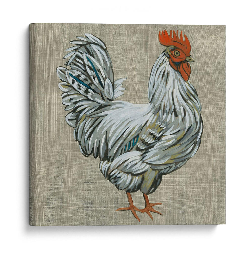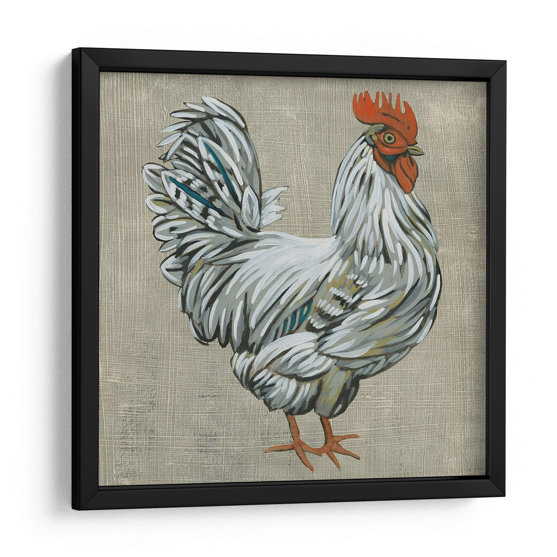 Aporta un toque rústico y lleno de carácter a tu hogar con este cautivador cuadro decorativo "Roost III" de Chariklia Zarris. La obra presenta un gallo estilizado con un plumaje detallado en tonos grises, blancos y toques sutiles de azul, contrastando con la vibrante cresta y barbilla de un rojo intenso. El fondo, texturizado en un tono neutro similar a la tela o el lino, complementa la figura central sin distraer, creando una atmósfera acogedora y terrenal. El estilo artístico combina elementos de pintura costumbrista con una ejecución contemporánea, ofreciendo una pieza que evoca la vida rural y la belleza de la naturaleza con un aire moderno y sofisticado. Este cuadro es ideal para añadir personalidad a la sala de estar, la cocina, o incluso un espacio de trabajo que busque inspiración y calidez. Su composición centrada y la expresividad del gallo lo convierten en un punto focal encantador, perfecto para quienes aprecian el arte inspirado en la granja o buscan una decoración con un toque de autenticidad y encanto campestre. Añade esta pieza única a tu colección y transforma tu pared en una ventana a la serenidad del campo.