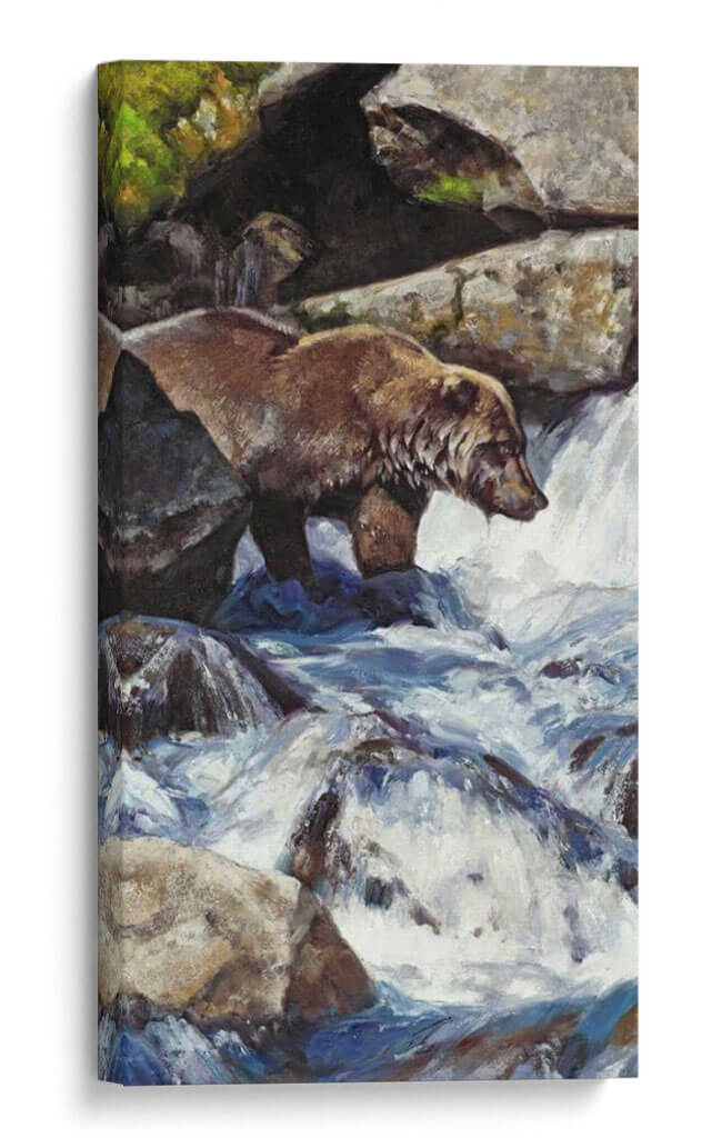 Sumérgete en la majestuosidad de la naturaleza con "Salmón Zen", una obra de arte cautivadora de Julie T. Chapman. Este cuadro decorativo captura un momento de serenidad y poder en un entorno salvaje, con un imponente oso navegando entre aguas turbulentas y rocas musgosas. La paleta de colores, dominada por tonos terrosos, marrones profundos y el vibrante azul del agua en movimiento, crea una atmósfera de calma y fuerza primigenia. El estilo expresionista de Chapman, con pinceladas audaces y una composición dinámica, da vida a la escena, invitando al espectador a sentir la energía y la vitalidad del paisaje. Ideal para quienes buscan infundir a sus espacios una conexión profunda con el mundo natural, este cuadro es perfecto para salas de estar rústicas, estudios o cualquier lugar donde se desee un toque de naturaleza salvaje y elegancia. Añade esta pieza única a tu decoración y experimenta la tranquilidad y la majestuosidad del "Salmón Zen".