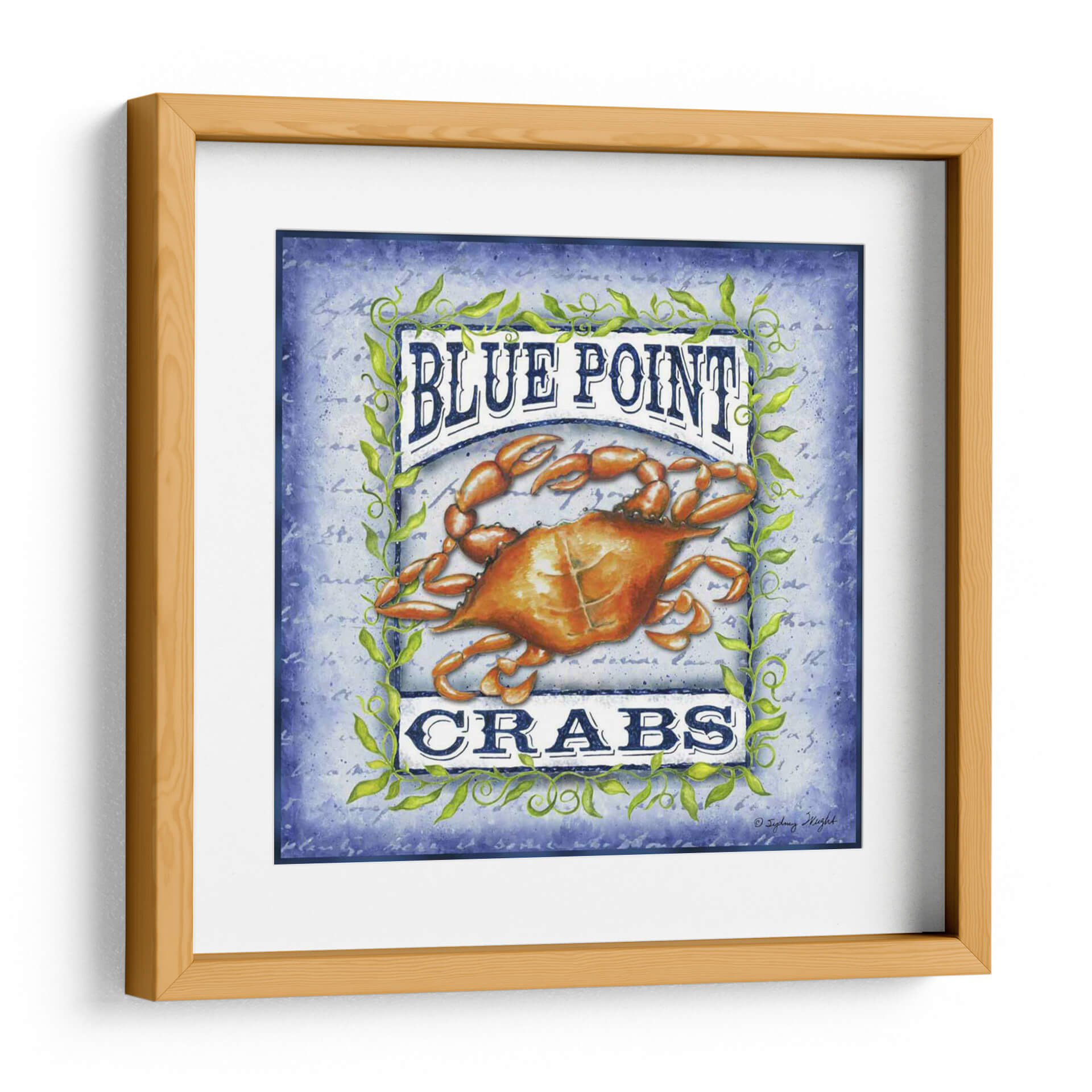 Sumérgete en la frescura costera con este vibrante cuadro decorativo de cangrejo, "Signo De Mariscos I", de Sydney Wright. La obra presenta un detallado cangrejo naranja en primer plano, enmarcado por un distintivo diseño tipográfico que dice "BLUE POINT CRABS" y delicadas enredaderas verdes. El fondo, con un sutil patrón de escritura antigua en tonos azules y grises, aporta una textura rica y un aire de nostalgia marinera. Los colores cálidos del cangrejo contrastan elegantemente con el fondo azulado, creando una pieza visualmente atractiva que evoca la brisa del mar y la vida costera. Este cuadro es perfecto para añadir un toque de encanto náutico a tu cocina, comedor, o cualquier espacio que desees revitalizar con una temática marítima. Su estilo, que combina elementos ilustrativos con un toque rústico, lo convierte en una adición versátil para decoraciones de estilo costero, granja o incluso ecléctico. Deja que la energía del océano y la belleza de esta ilustración de cangrejo aporten carácter y personalidad a tu hogar.