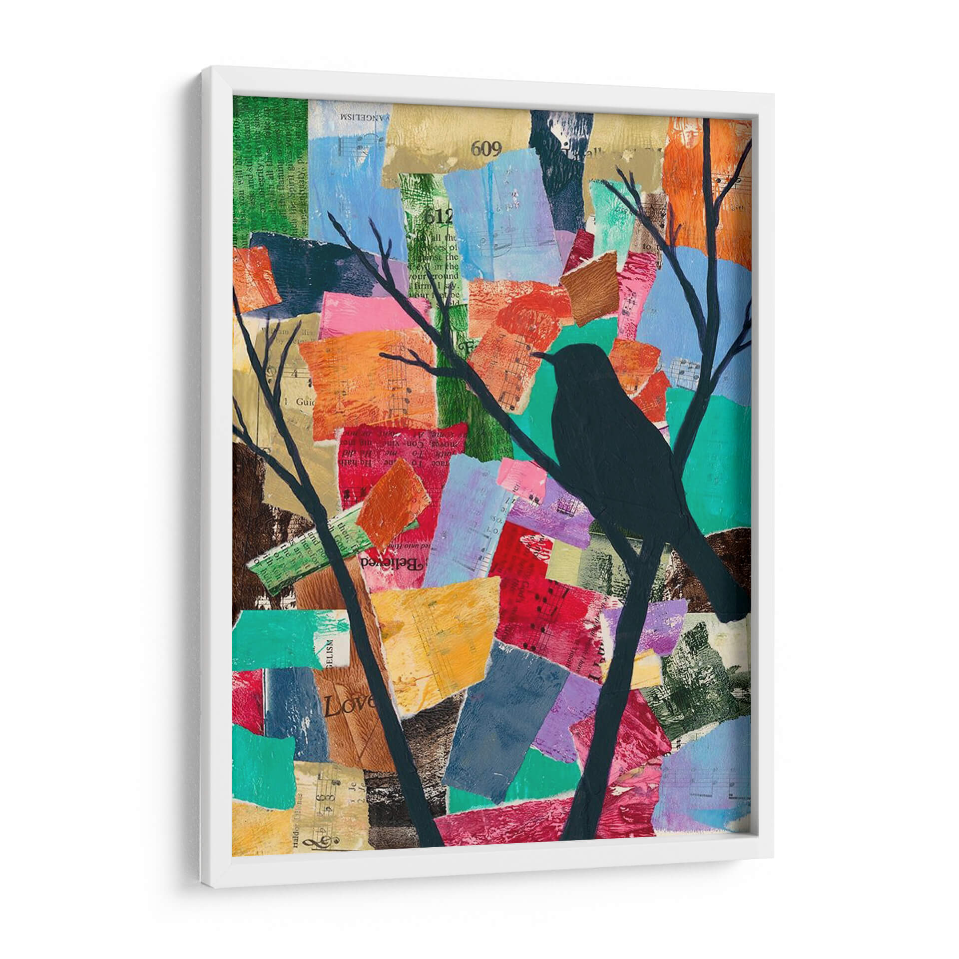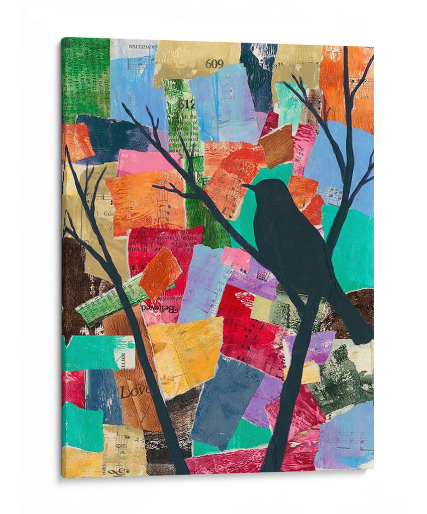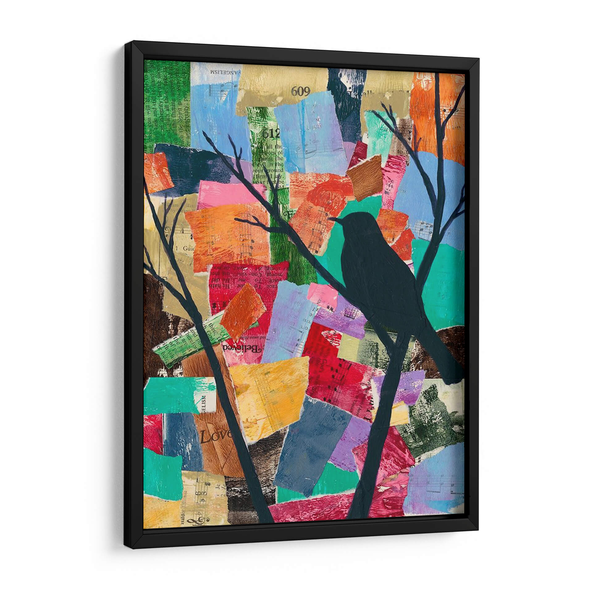 Sumérgete en la cautivadora obra de arte "Sombra De La Luz Iii" de Regina Moore, una pieza vibrante y texturizada que fusiona collage y pintura para crear una escena evocadora. El primer plano presenta la silueta oscura de un pájaro posado en ramas esbeltas, contrastando con un fondo de fragmentos de papel de colores intensos y patrones diversos, que incluyen textos y notas musicales. La paleta de colores es audaz y ecléctica, con explosiones de azul, naranja, rojo, verde y morado, que aportan energía y dinamismo a la composición. Esta obra abstracta contemporánea es ideal para añadir un toque de originalidad y carácter a cualquier espacio, desde una sala de estar moderna hasta una oficina creativa. Su estilo único invita a la contemplación, sugiriendo una narrativa de naturaleza y presencia en medio de un mundo colorido y fragmentado. "Sombra De La Luz Iii" no es solo un cuadro, es una invitación a la reflexión y a la apreciación de la belleza en la yuxtaposición de elementos dispares, convirtiéndose en un punto focal que despierta la conversación y la admiración.
