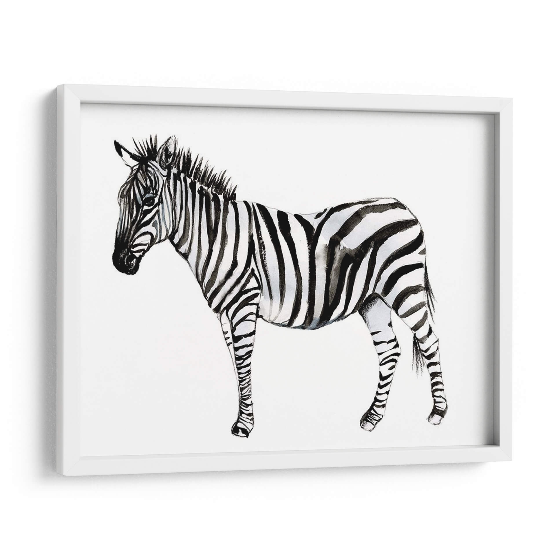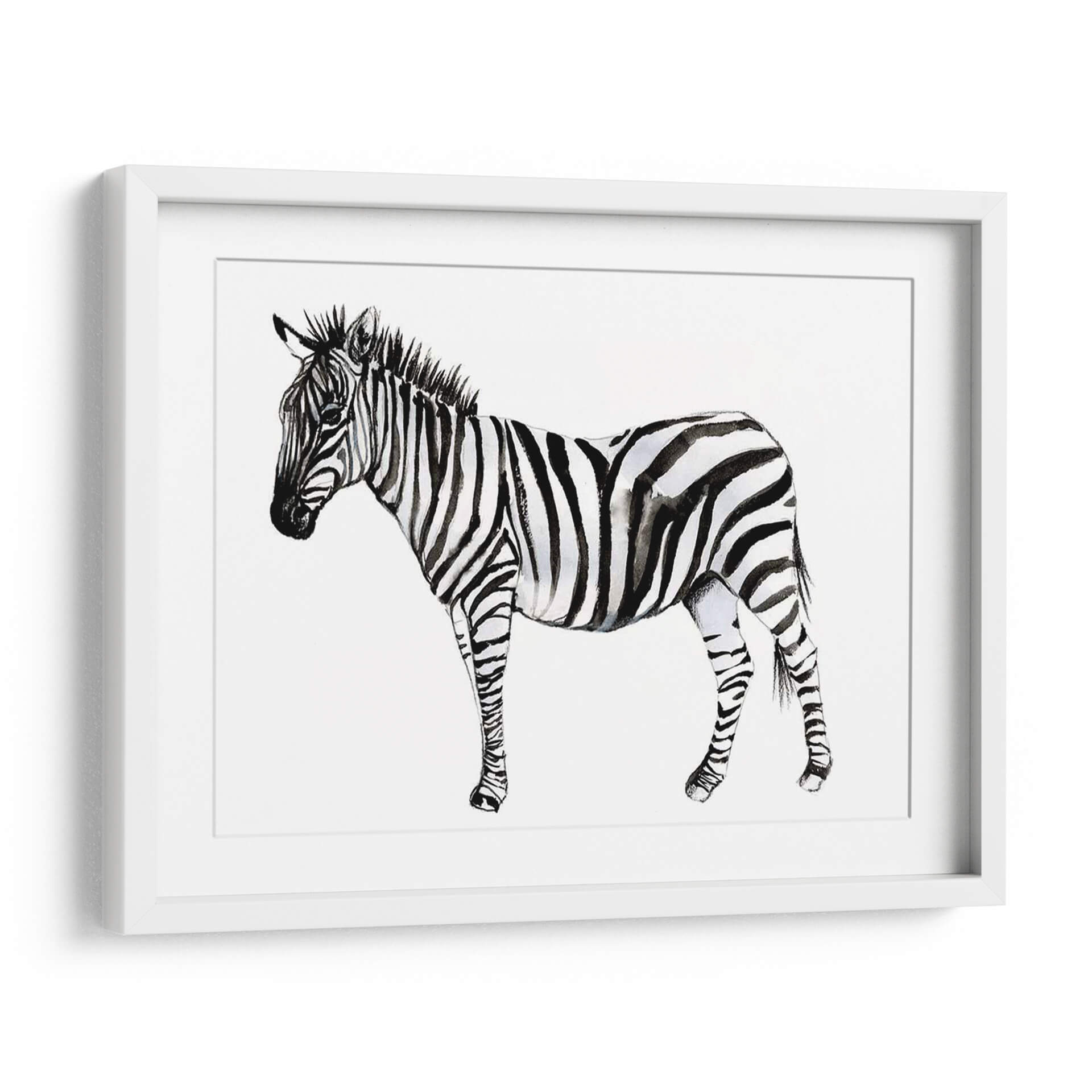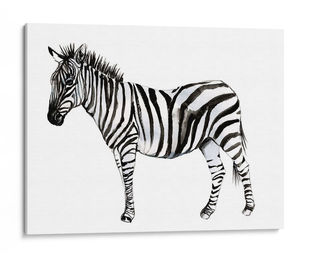 Captura la esencia salvaje y la elegancia atemporal con "Stare Cebra II", una obra de arte exquisita de Jennifer Goldberger. Este cuadro decorativo presenta un estudio detallado de una cebra en acuarela, destacando el contraste icónico de sus rayas en una paleta monocromática de blancos puros y negros profundos, con sutiles matices grises que añaden profundidad y textura. La técnica de acuarela aporta una delicadeza y fluidez únicas a la representación, creando una atmósfera de calma y contemplación. La composición se centra en la majestuosidad del animal, con su mirada serena pero penetrante, invitando a la reflexión. Ideal para espacios que buscan un toque de sofisticación natural y un punto focal que hable de la belleza intrínseca de la naturaleza. Este cuadro es perfecto para salones modernos, dormitorios serenos o estudios que deseen una pieza de arte contemporáneo con un toque orgánico. Añade una dimensión de estilo y carácter a tu hogar u oficina con esta impresionante representación de la cebra, una pieza que combina la fuerza de la vida salvaje con la delicadeza artística.