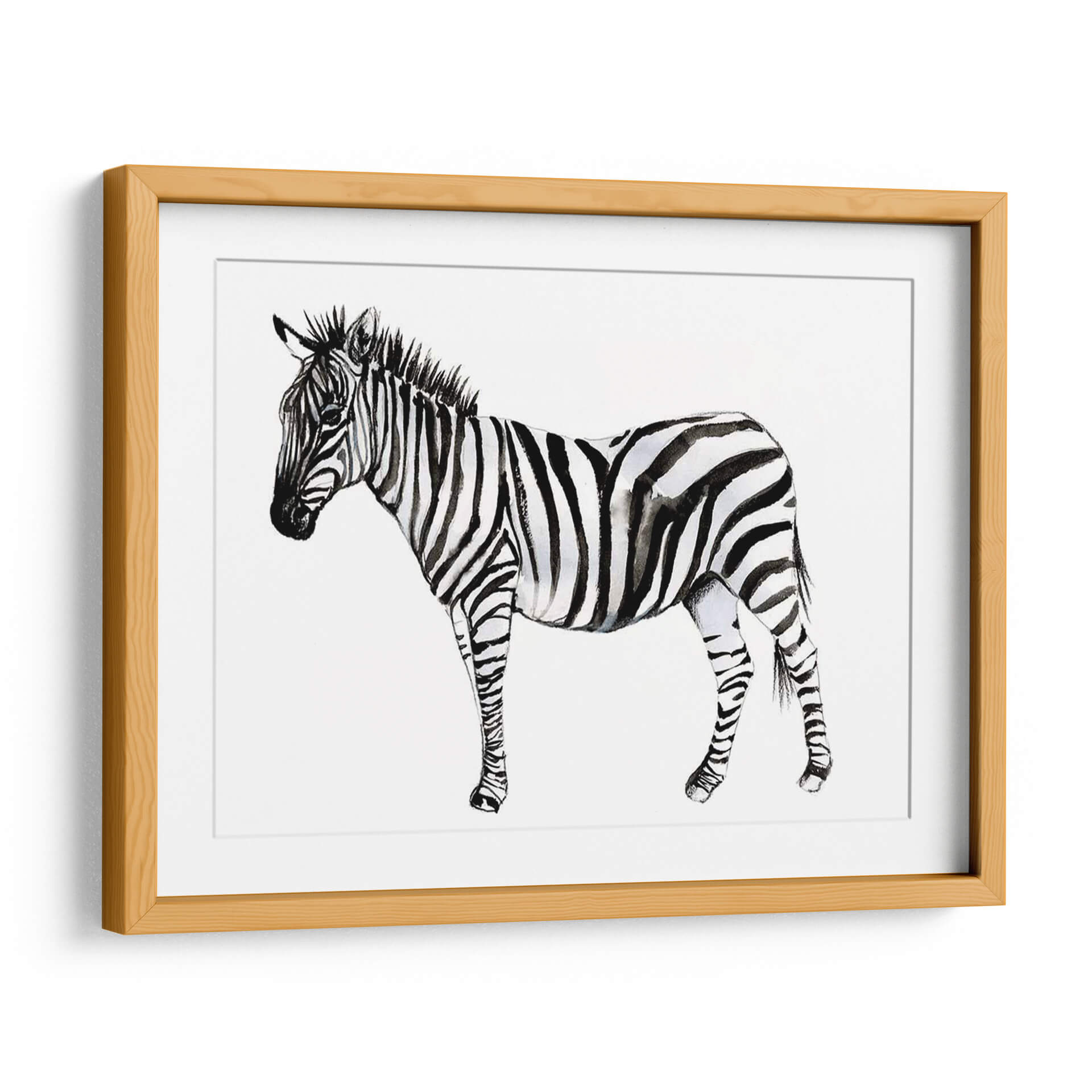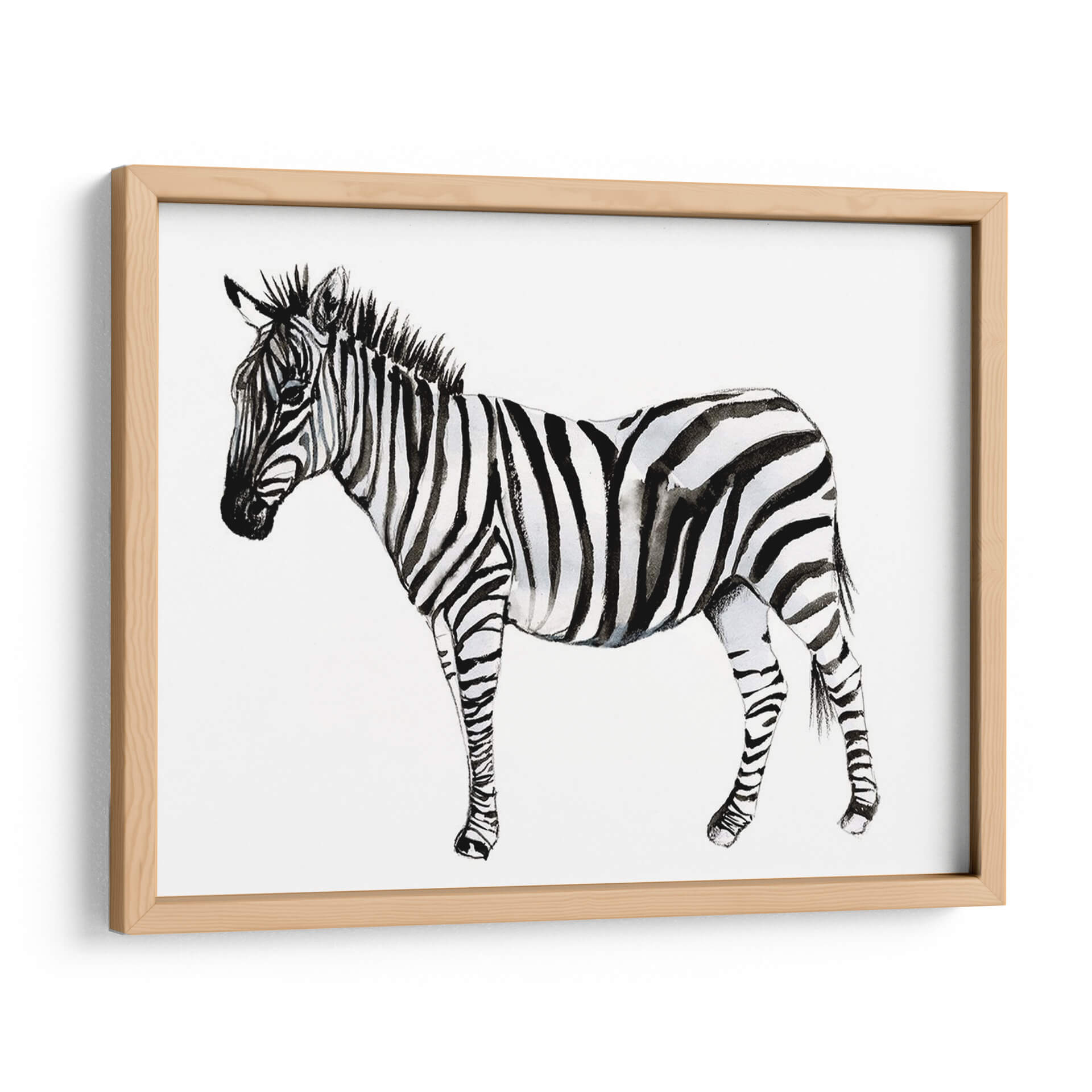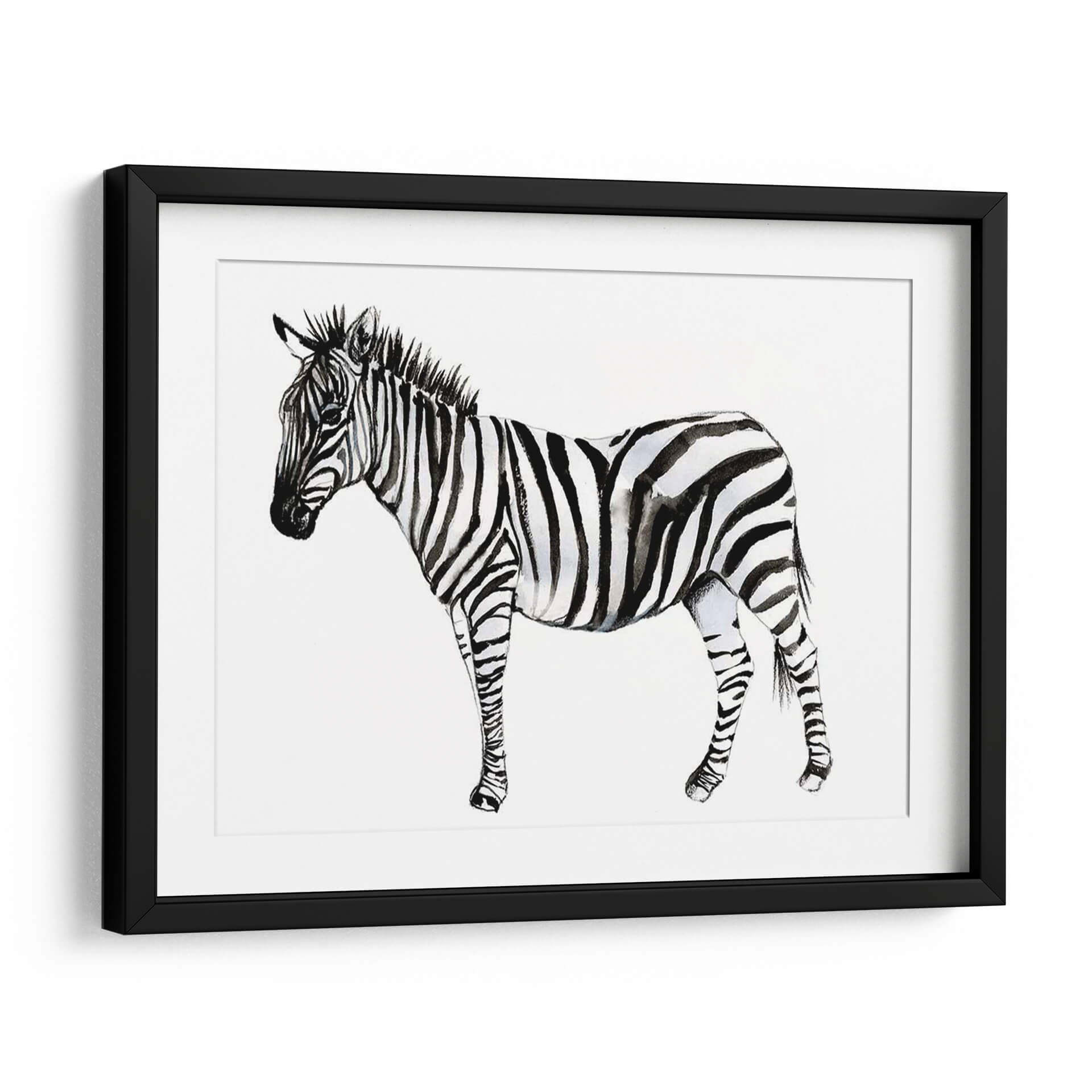 Captura la esencia salvaje y la elegancia atemporal con "Stare Cebra II", una obra de arte exquisita de Jennifer Goldberger. Este cuadro decorativo presenta un estudio detallado de una cebra en acuarela, destacando el contraste icónico de sus rayas en una paleta monocromática de blancos puros y negros profundos, con sutiles matices grises que añaden profundidad y textura. La técnica de acuarela aporta una delicadeza y fluidez únicas a la representación, creando una atmósfera de calma y contemplación. La composición se centra en la majestuosidad del animal, con su mirada serena pero penetrante, invitando a la reflexión. Ideal para espacios que buscan un toque de sofisticación natural y un punto focal que hable de la belleza intrínseca de la naturaleza. Este cuadro es perfecto para salones modernos, dormitorios serenos o estudios que deseen una pieza de arte contemporáneo con un toque orgánico. Añade una dimensión de estilo y carácter a tu hogar u oficina con esta impresionante representación de la cebra, una pieza que combina la fuerza de la vida salvaje con la delicadeza artística.