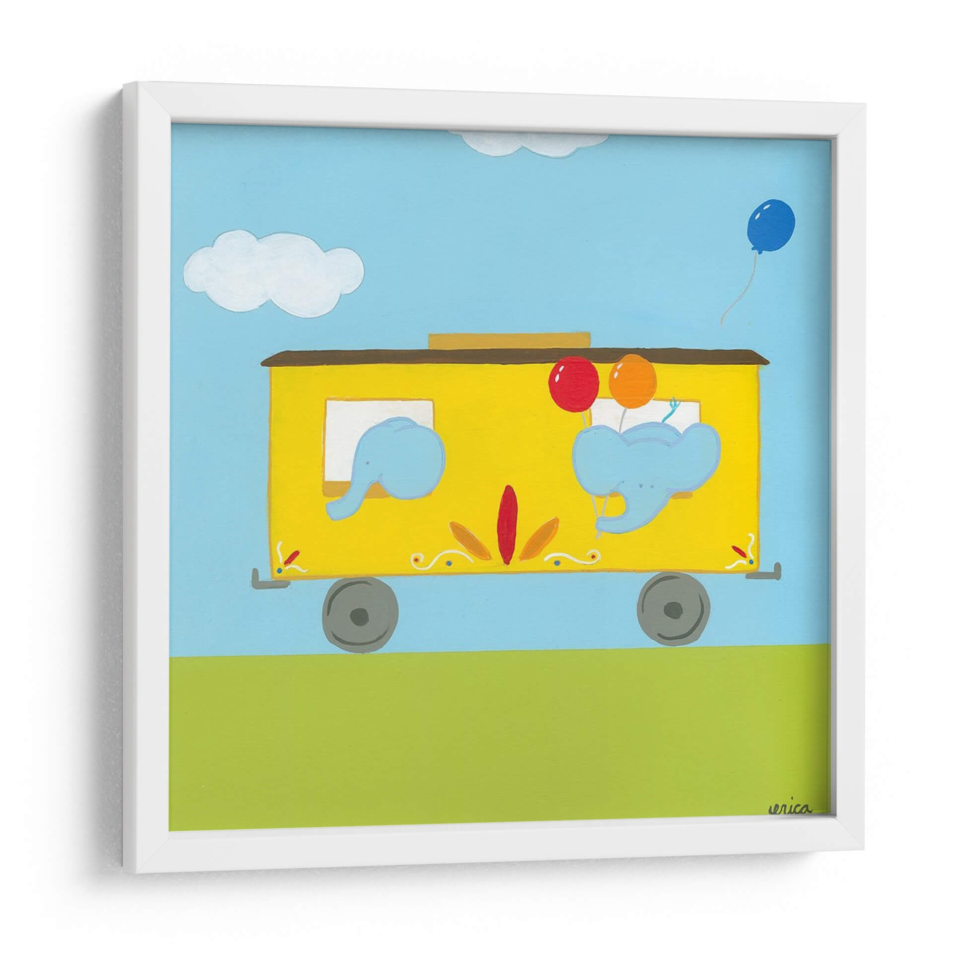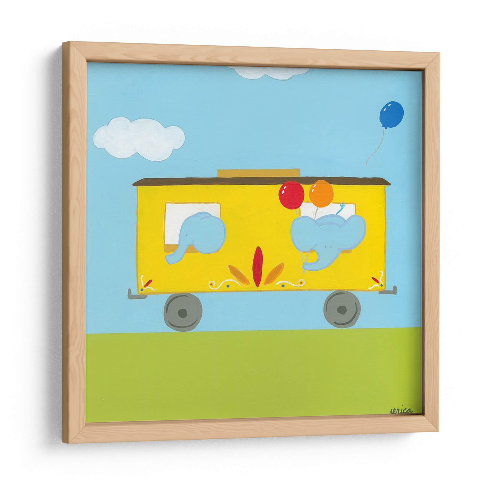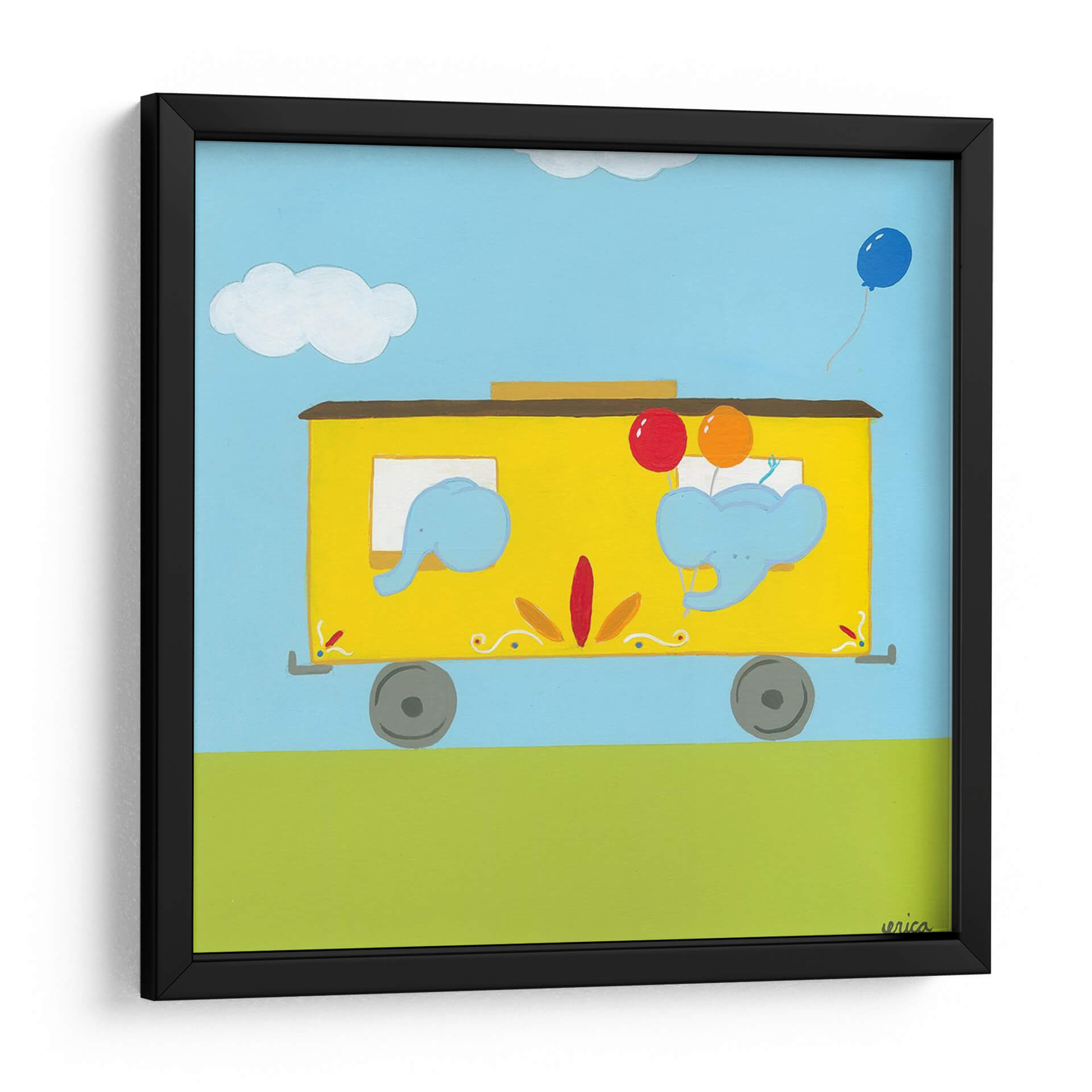 Embárquese en un viaje imaginativo con "Tren De Circo Iii", una obra de arte vibrante y encantadora del artista June Erica Vess. Esta pieza captura la alegría y la maravilla de un circo ambulante, presentando un colorido tren amarillo adornado con globos y divertidos elefantes asomándose por las ventanas. El fondo, un cielo azul brillante salpicado de nubes blancas, junto con una franja de hierba verde vibrante, crea una escena llena de vida y optimismo. La paleta de colores, dominada por el amarillo cálido, el azul celestial y toques de rojo y naranja, irradia una energía positiva y juguetona. El estilo de la obra es lúdico y ligeramente naíf, evocando recuerdos de la infancia y la magia del circo. Es una elección perfecta para añadir un toque de fantasía y color a cualquier habitación, especialmente para espacios infantiles, salas de juegos o cualquier área que desee infundir con un espíritu alegre y optimista. "Tren De Circo Iii" es más que un simple cuadro decorativo; es una invitación a soñar y celebrar la felicidad.