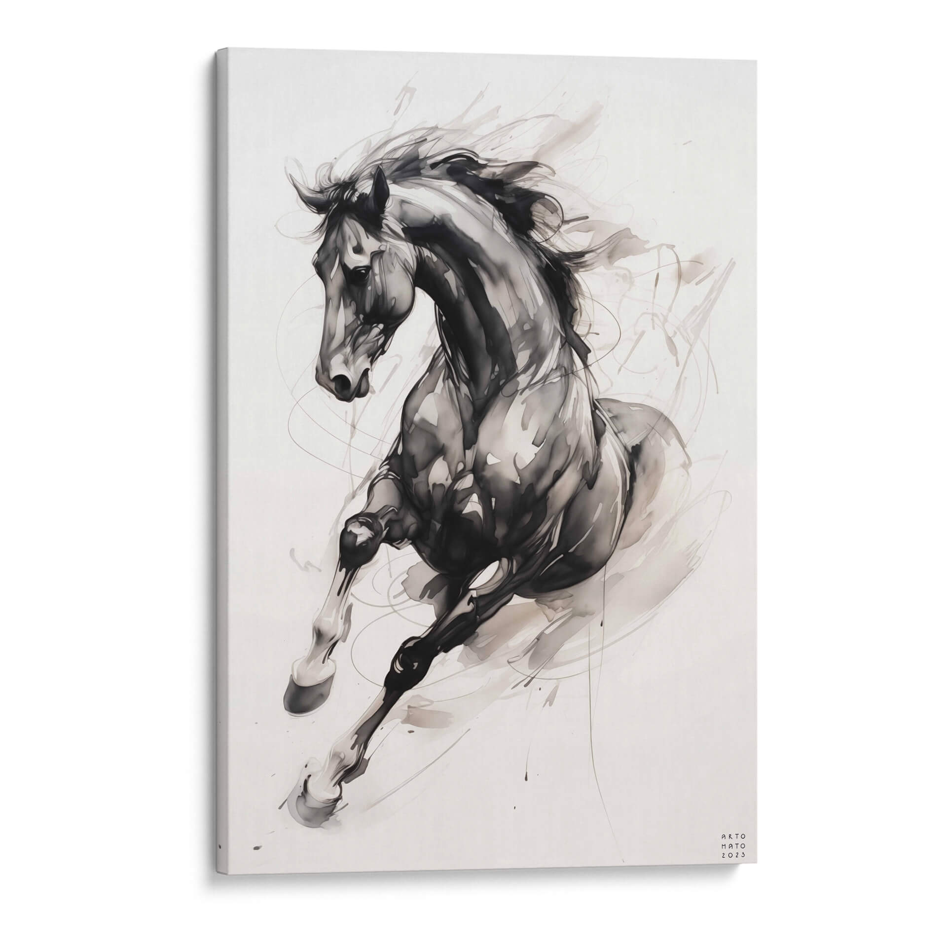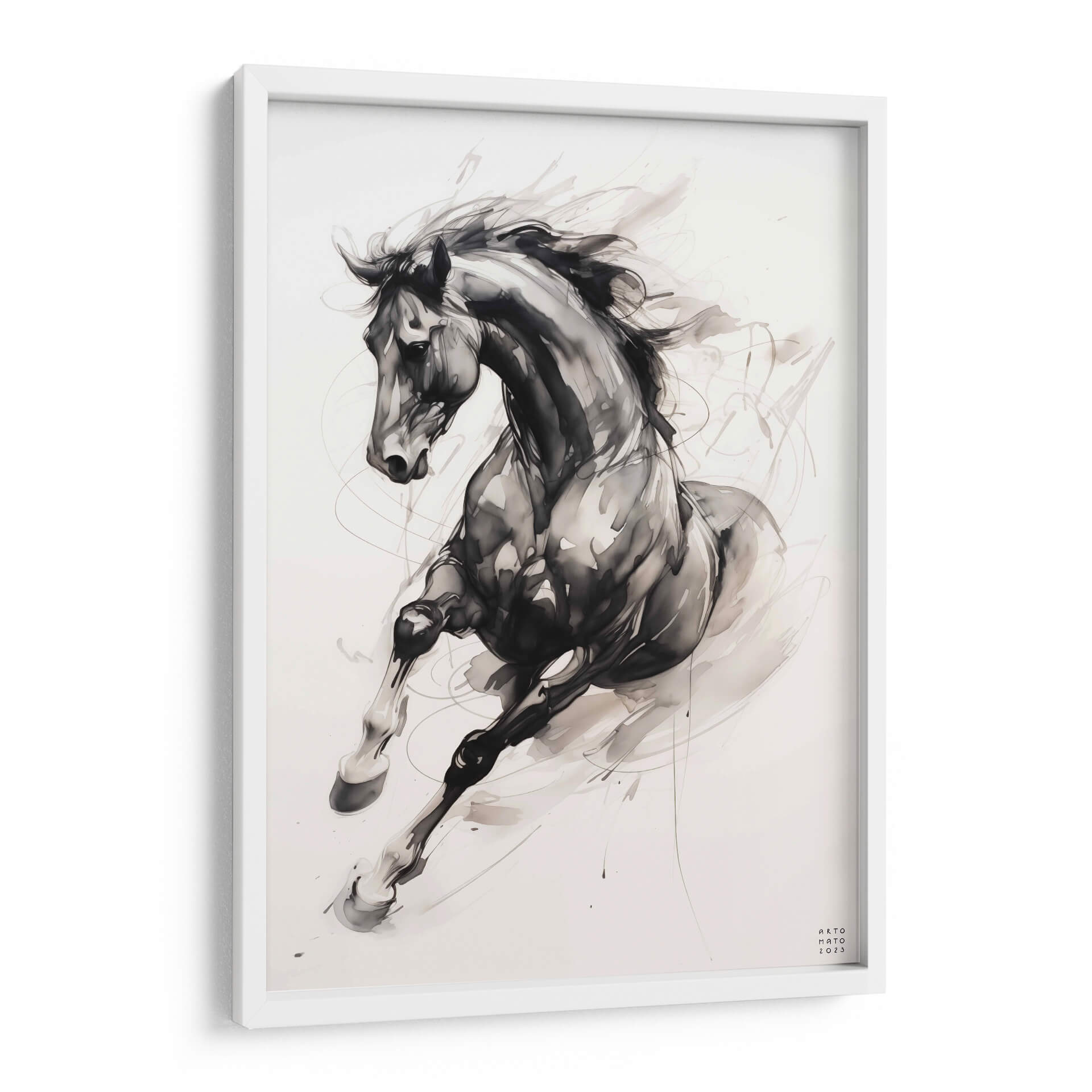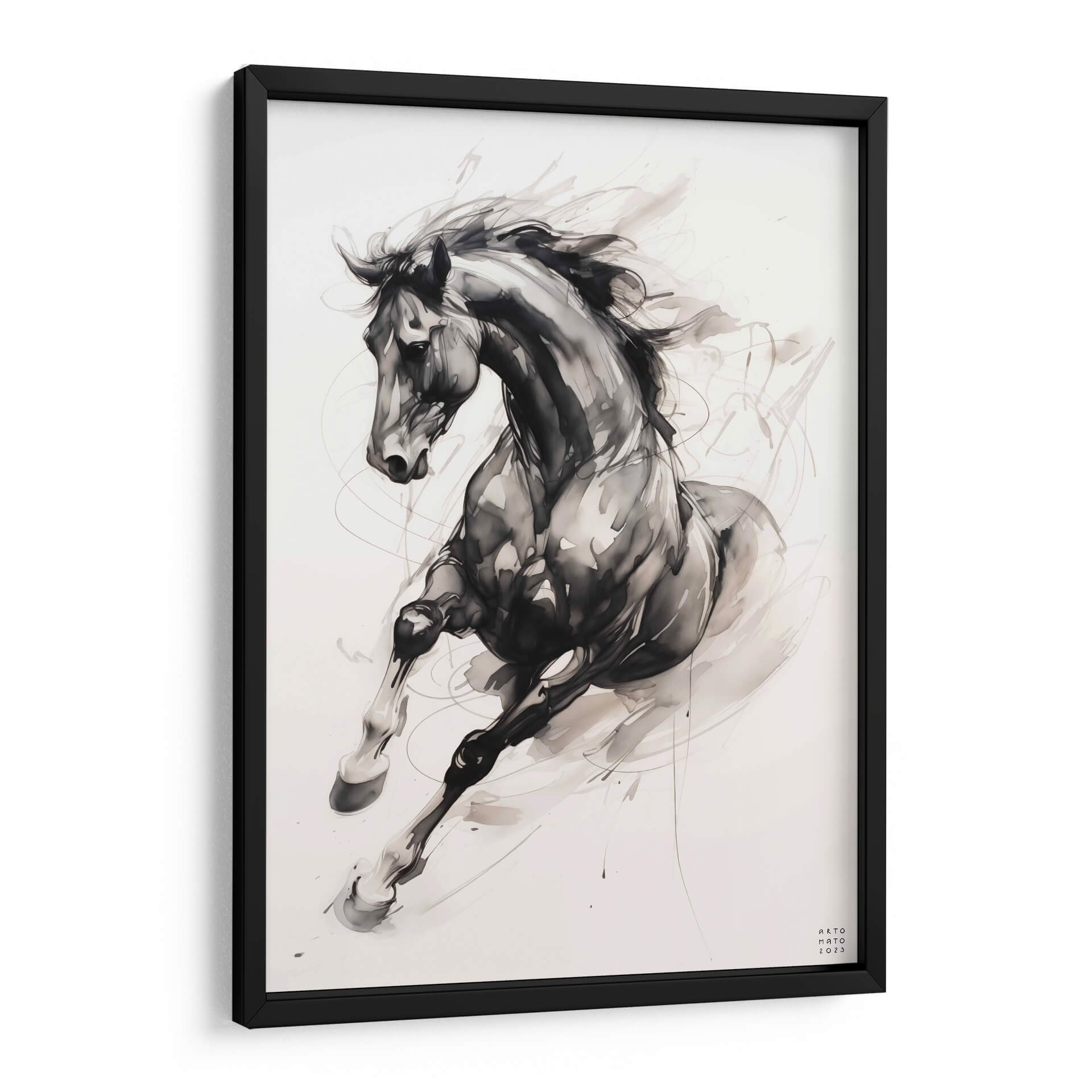 Captura la esencia de la libertad y la fuerza con "Trote", una obra de arte cautivadora que inmortaliza el movimiento dinámico de un caballo en plena carrera. Realizada con una técnica que evoca la delicadeza de la acuarela y la audacia del trazo a tinta, esta pieza se distingue por su paleta de grises y negros sobre un fondo neutro, creando un contraste visual impactante. Las líneas fluidas y expresivas dan vida a la musculatura del animal, transmitiendo una sensación de energía pura y elegancia indómita. Las pinceladas sueltas y las salpicaduras sutiles añaden profundidad y textura, sugiriendo la velocidad y la emoción del momento. "Trote" es más que una simple representación; es una invitación a sentir la potencia y la gracia de la naturaleza. Ideal para espacios que buscan un toque de sofisticación moderna o un elemento inspirador en un entorno de oficina, este cuadro decorativo se convertirá en el centro de atención, evocando admiración y serenidad. Su estilo contemporáneo y su temática atemporal lo hacen perfecto para añadir carácter a cualquier decoración, desde la más minimalista hasta la más audaz.