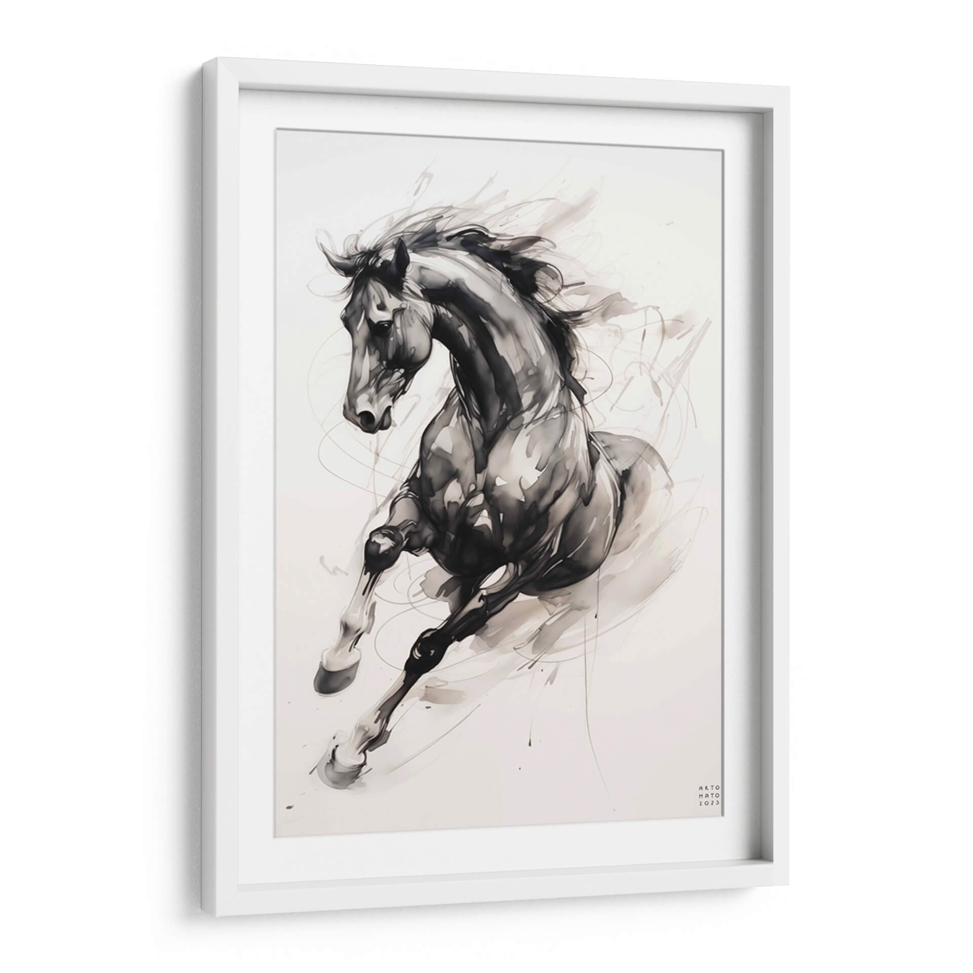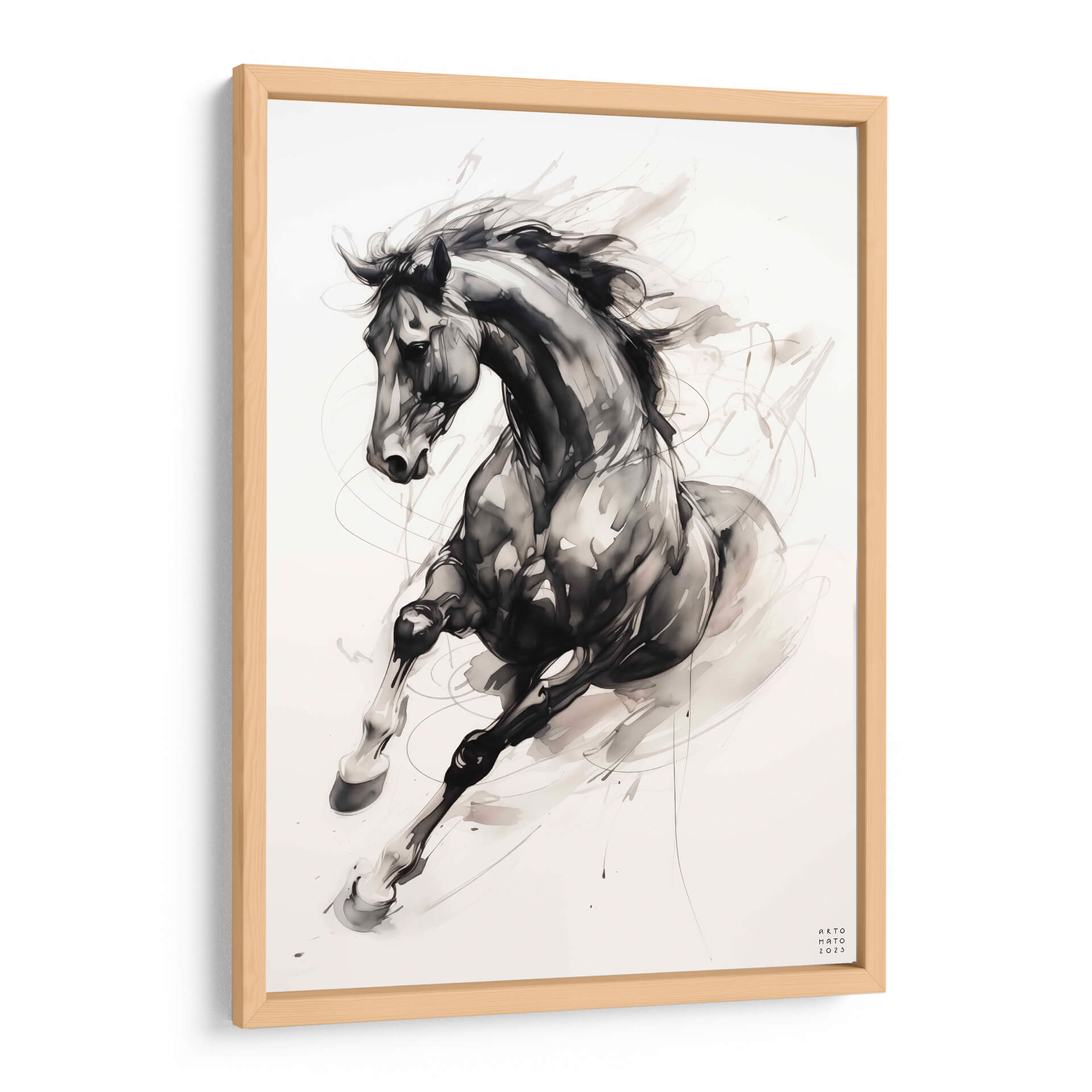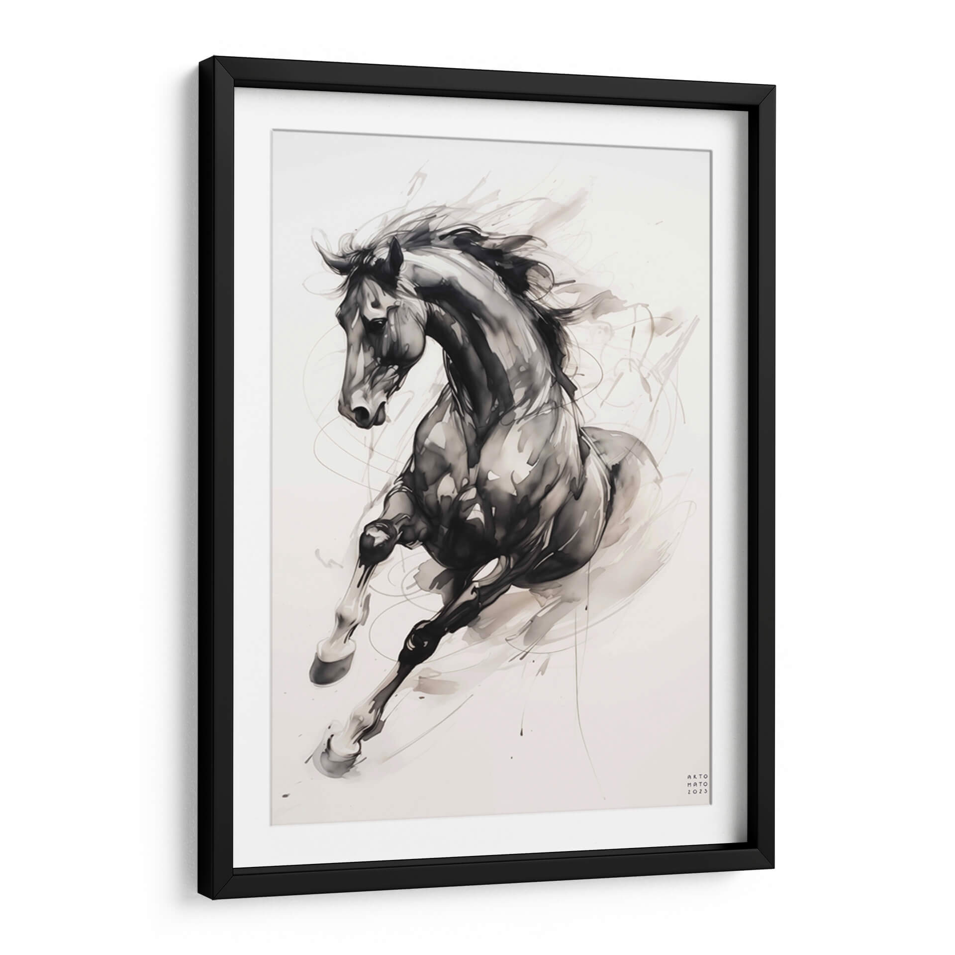 Captura la esencia de la libertad y la fuerza con "Trote", una obra de arte cautivadora que inmortaliza el movimiento dinámico de un caballo en plena carrera. Realizada con una técnica que evoca la delicadeza de la acuarela y la audacia del trazo a tinta, esta pieza se distingue por su paleta de grises y negros sobre un fondo neutro, creando un contraste visual impactante. Las líneas fluidas y expresivas dan vida a la musculatura del animal, transmitiendo una sensación de energía pura y elegancia indómita. Las pinceladas sueltas y las salpicaduras sutiles añaden profundidad y textura, sugiriendo la velocidad y la emoción del momento. "Trote" es más que una simple representación; es una invitación a sentir la potencia y la gracia de la naturaleza. Ideal para espacios que buscan un toque de sofisticación moderna o un elemento inspirador en un entorno de oficina, este cuadro decorativo se convertirá en el centro de atención, evocando admiración y serenidad. Su estilo contemporáneo y su temática atemporal lo hacen perfecto para añadir carácter a cualquier decoración, desde la más minimalista hasta la más audaz.