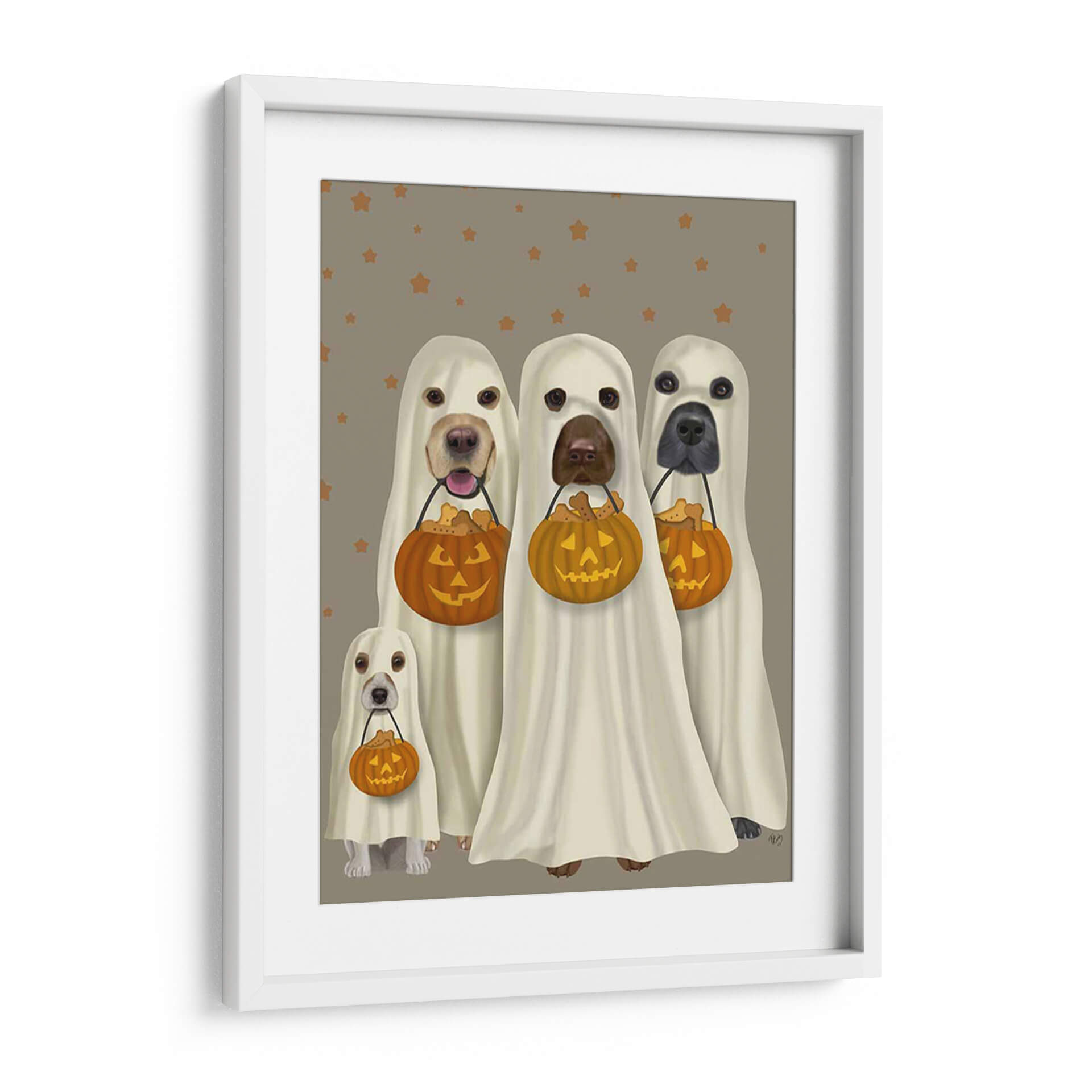 Celebra la temporada más espeluznante con este encantador cuadro decorativo "Truco De Halloween O Perros De Tratar". Esta obra de arte, creada por el artista Fab Funky, captura la esencia juguetona y adorable de Halloween a través de adorables perros disfrazados de fantasmas. Cuatro perros de diferentes tamaños, envueltos en sábanas blancas que simulan disfraces de fantasmas, sostienen calabazas talladas llenas de golosinas, creando una escena cómica yTierna. La paleta de colores, dominada por tonos tierra y beige para el fondo, se complementa con el vibrante naranja de las calabazas y el blanco luminoso de los "fantasmas" caninos. El estilo es una ilustración digital detallada con un toque de realismo en los rostros de los perros, lo que añade profundidad y carácter a la pieza. Este cuadro decorativo es perfecto para añadir un toque divertido y festivo a tu hogar durante la temporada de Halloween, o para los amantes de los perros que disfrutan de un arte peculiar todo el año. Ideal para salones, cocinas o cualquier espacio que necesite una dosis de alegría y originalidad.