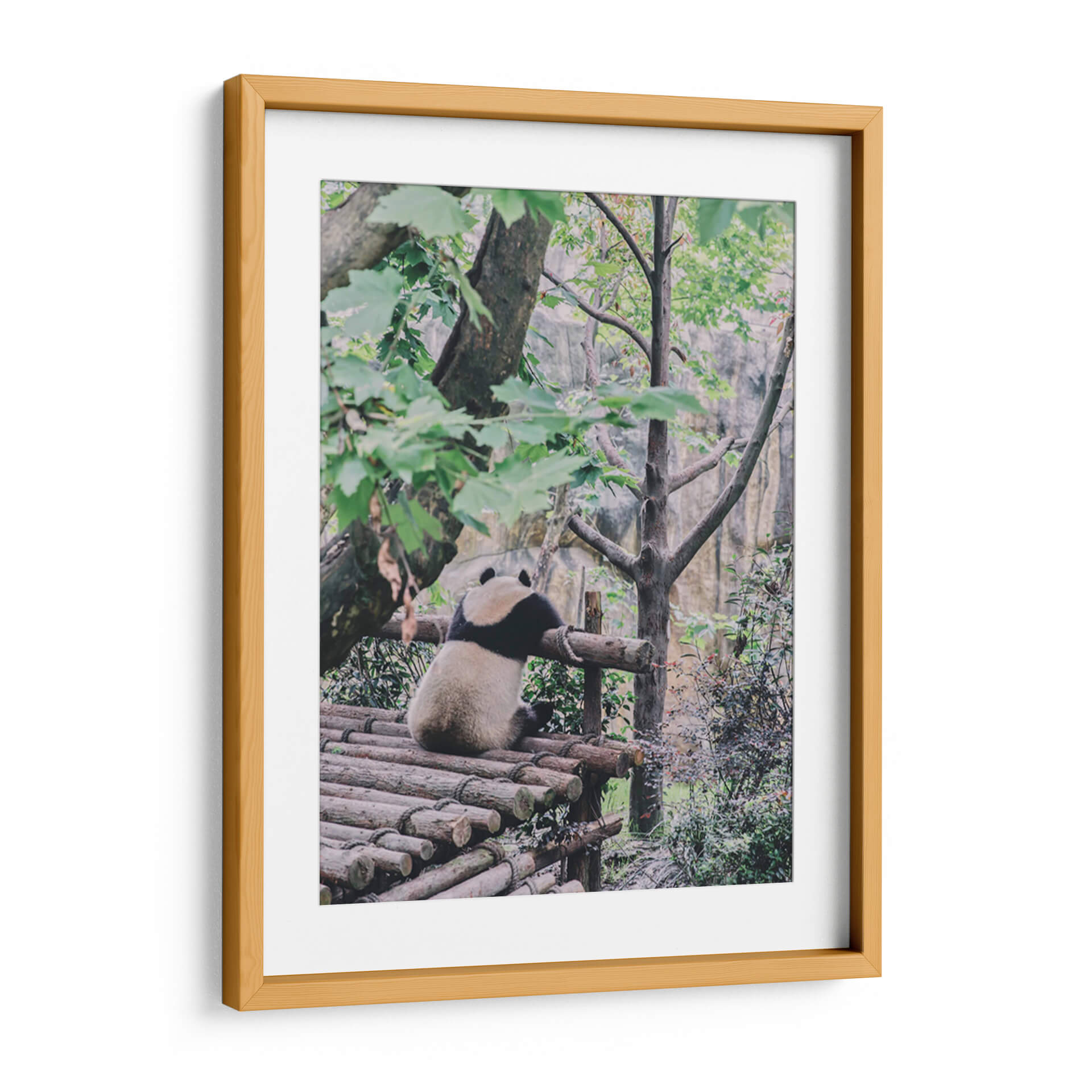 Captura la esencia de la tranquilidad con este cautivador cuadro decorativo que presenta un adorable panda en un momento de serena contemplación. La obra, titulada 'Un panda relajado', evoca una profunda sensación de paz y calma, invitando a la introspección y al descanso. El panda, figura central, se encuentra sentado en una estructura de madera rústica, rodeado por la exuberancia de un entorno natural con árboles frondosos y rocas al fondo. La paleta de colores, dominada por verdes naturales y tonos tierra, crea una atmósfera armoniosa y terrenal, perfecta para cualquier espacio que busque una conexión con la naturaleza. El estilo fotográfico y realista de la pieza, con un enfoque en la textura y la luz natural, añade una capa de autenticidad y calidez. Este cuadro decorativo es ideal para añadir un toque de serenidad a un dormitorio, un rincón de lectura acogedor, o incluso para infundir calma en un espacio de oficina. Su simplicidad y la universalidad de su tema lo convierten en una elección perfecta para quienes buscan arte que inspire tranquilidad y belleza sutil en su hogar u oficina. Una pieza que trasciende las tendencias, ofreciendo un oasis de paz visual.