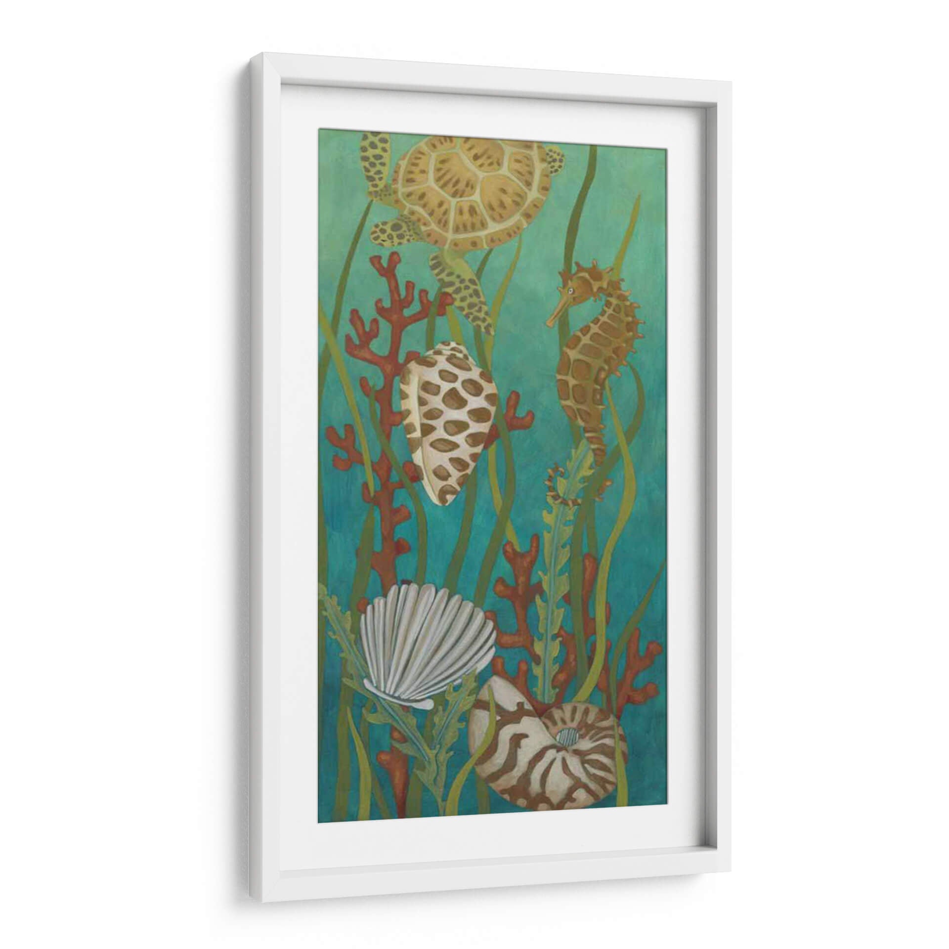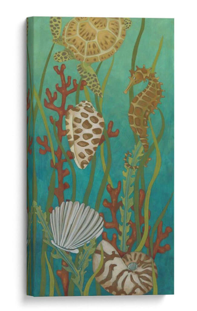 Sumérgete en la serenidad del océano con 'Vida Acuática I', una cautivadora obra de arte de Chariklia Zarris que captura la belleza etérea de la vida marina. Este cuadro decorativo presenta un vibrante ecosistema submarino, donde una tortuga marina nada con gracia junto a un delicado caballito de mar, rodeados de exuberante vegetación marina y formaciones coralinas en tonos rojos y verdes. La paleta de colores, dominada por un refrescante azul turquesa de fondo, evoca una sensación de calma y tranquilidad, mientras que los detalles intrincados de las conchas marinas y la textura de los corales invitan a la contemplación. El estilo pictórico y la composición equilibrada hacen de esta pieza un punto focal ideal para cualquier espacio, aportando un toque de naturaleza y serenidad. Perfecta para salones, dormitorios o estudios que busquen una conexión con el mar, 'Vida Acuática I' es una invitación a la relajación y al asombro, transformando cualquier pared en una ventana a las profundidades marinas. Añade esta obra de arte contemporáneo a tu colección y deja que su atmósfera pacífica llene tu hogar de inspiración marina y color.