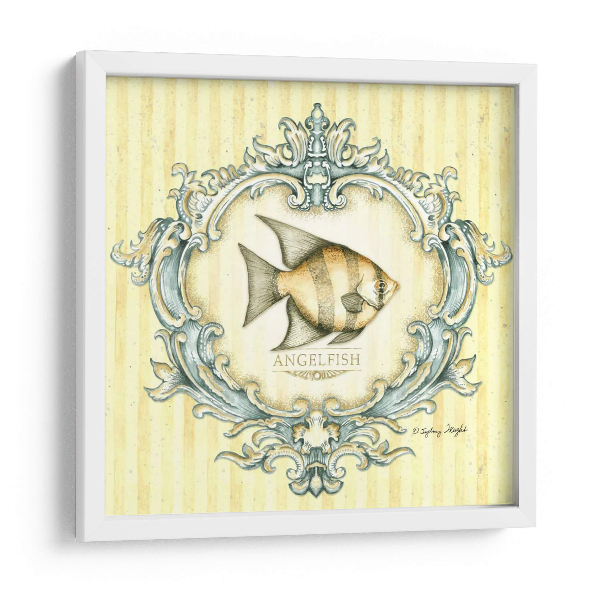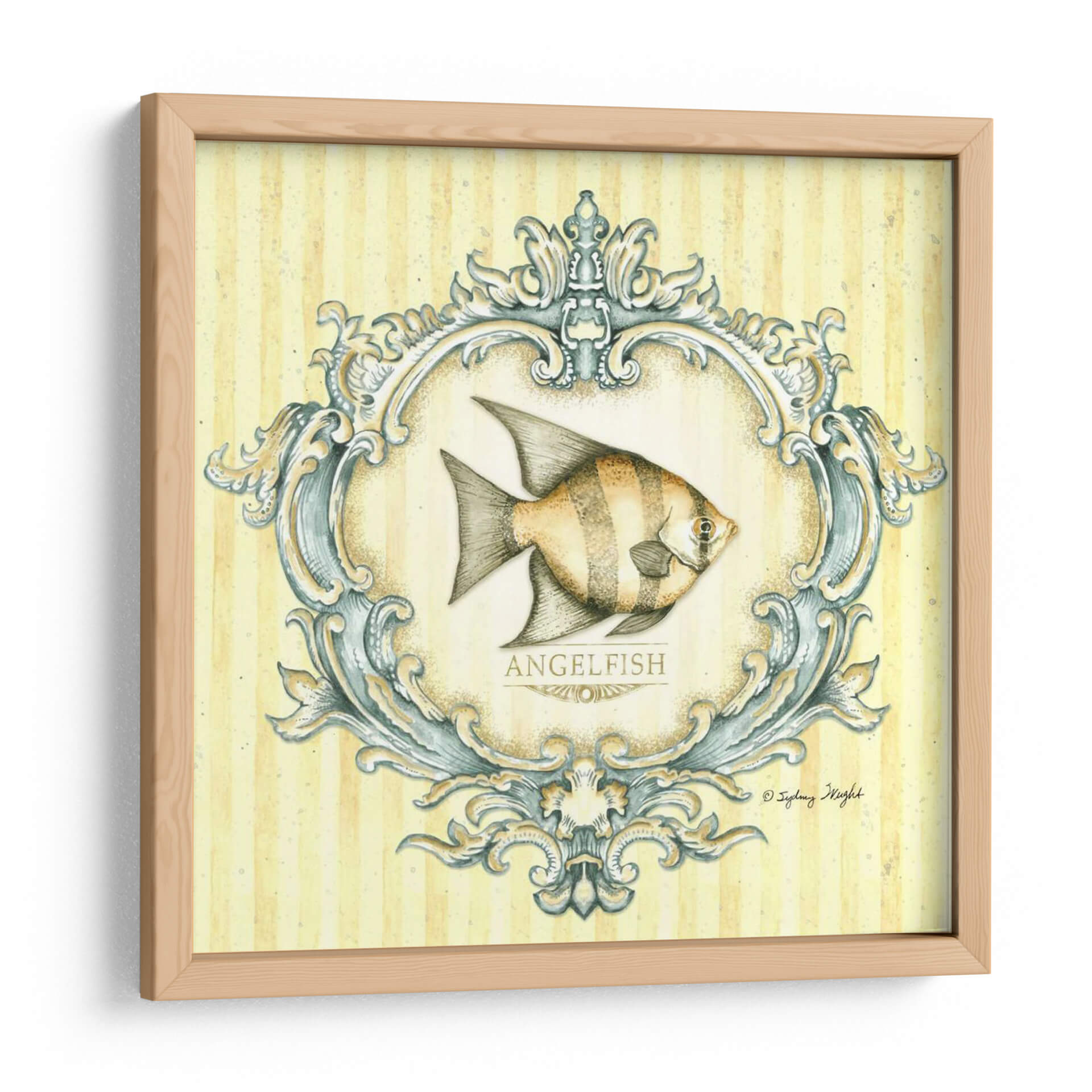 Sumérgete en la serenidad costera con 'Vida Costera I', una cautivadora obra de arte de Sydney Wright. Esta pieza evoca la tranquilidad del océano a través de una representación delicada de un pez ángel, enmarcado por un elaborado diseño ornamental de inspiración clásica. La paleta de colores, dominada por tonos cálidos y suaves amarillos y cremas, se complementa con sutiles toques de verde azulado en el marco decorativo, creando una atmósfera de calma y elegancia atemporal. La técnica de ilustración detallada del pez y la ornamentación intrincada invitan a la contemplación, fusionando lo natural con lo artístico de una manera exquisita. Ideal para añadir un toque de sofisticación y paz a cualquier estancia, este cuadro decorativo es perfecto para salones, dormitorios o estudios que buscan una conexión con la naturaleza y un diseño refinado. Su estilo clásico con un giro contemporáneo lo convierte en una adición versátil y encantadora para hogares que aprecian la belleza serena del mundo marino y el arte con carácter.