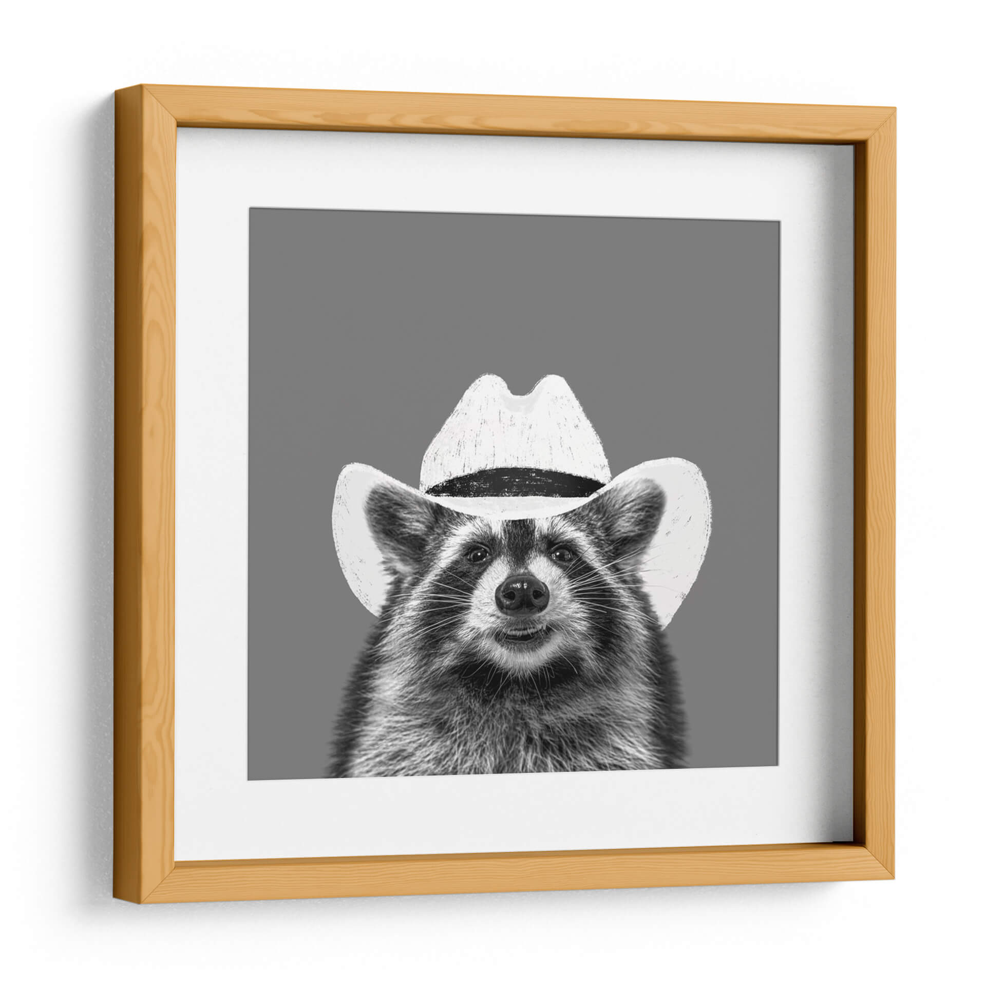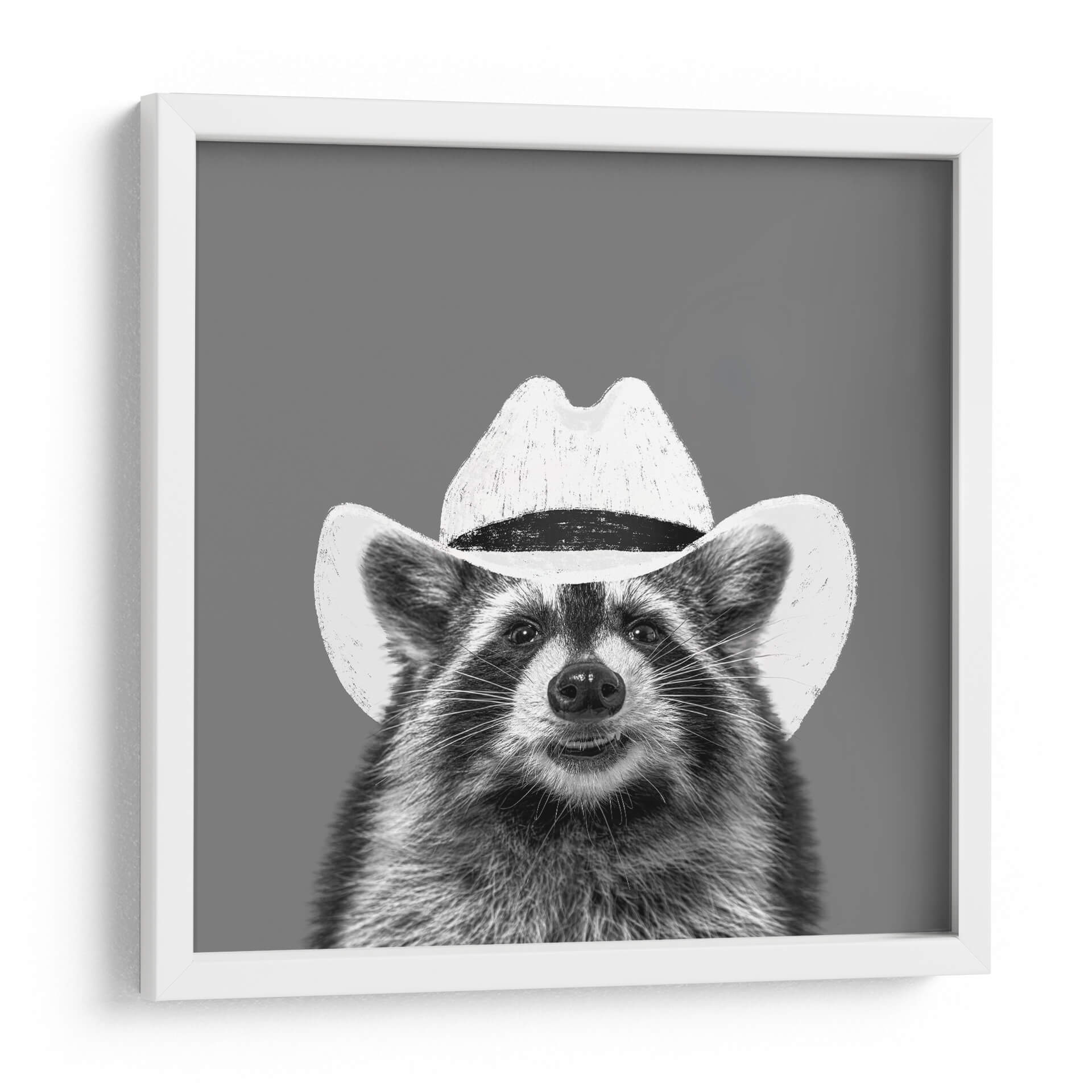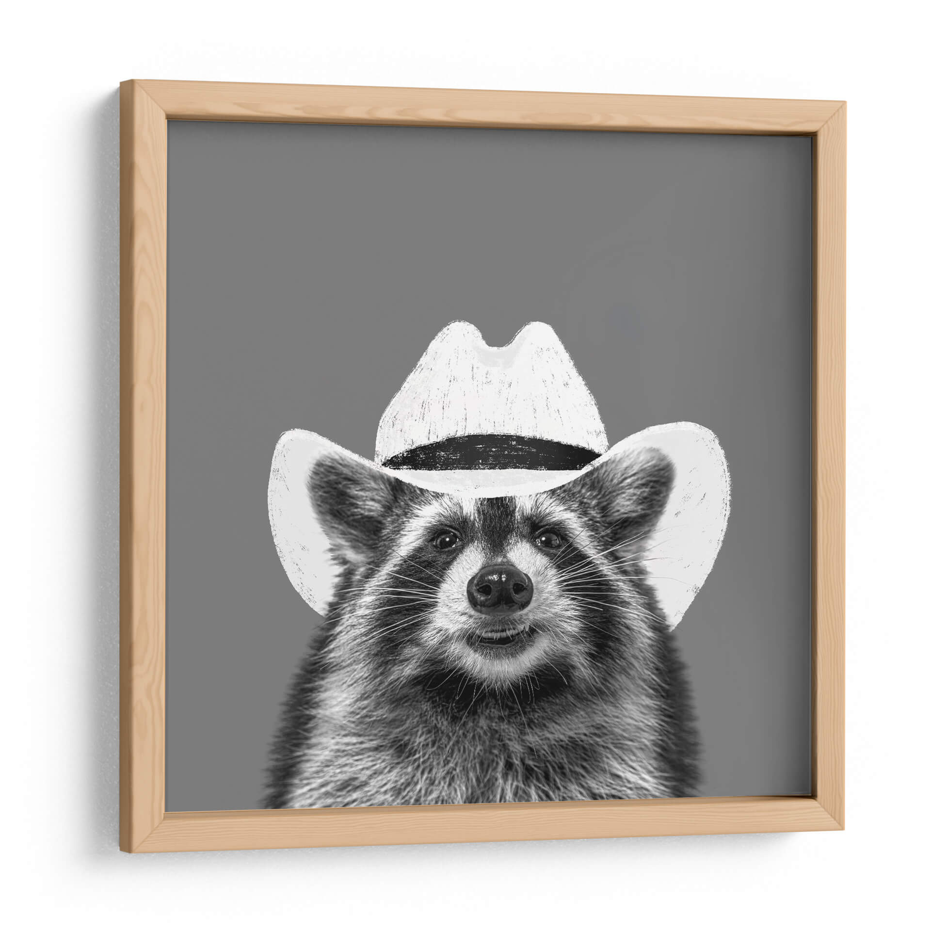Aporta un toque de humor y carácter único a tu espacio con nuestro cuadro decorativo 'Wyatt el Mapache Vaquero'. Esta obra de arte captura la esencia de un mapache con un sombrero de vaquero blanco, presentado en un estilo fotográfico monocromático que resalta la textura y las expresiones del animal. Los tonos grises y blancos crean una atmósfera sofisticada y a la vez juguetona, perfecta para romper la monotonía de cualquier pared. La composición se centra en el rostro del mapache, invitando a la contemplación y generando una conexión instantánea con el espectador. Este cuadro decorativo es ideal para salones modernos, estudios, o incluso para darle un giro inesperado a una oficina. Su diseño llamativo y el toque de surrealismo lo convierten en un punto focal que sin duda generará conversaciones. Añade personalidad a tu decoración con esta pieza artística que combina la dulzura de un animal con el audaz espíritu del oeste.