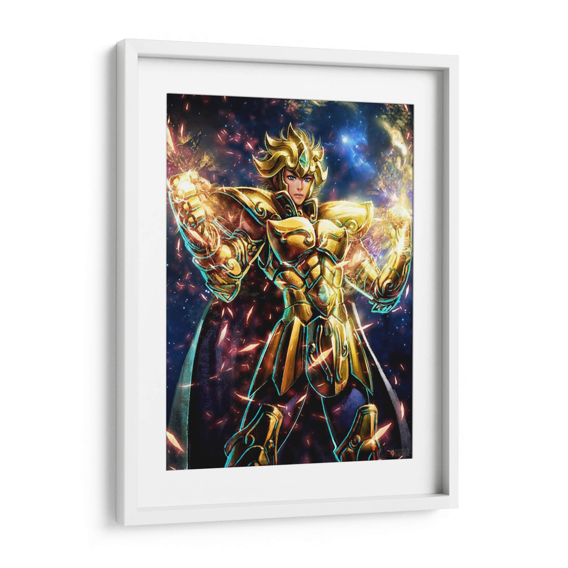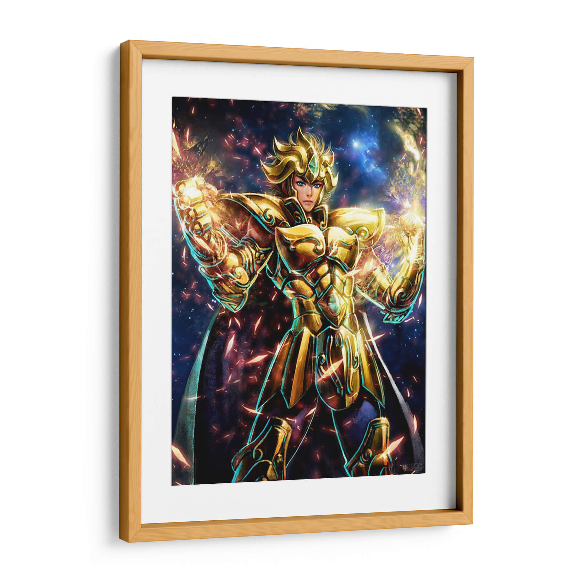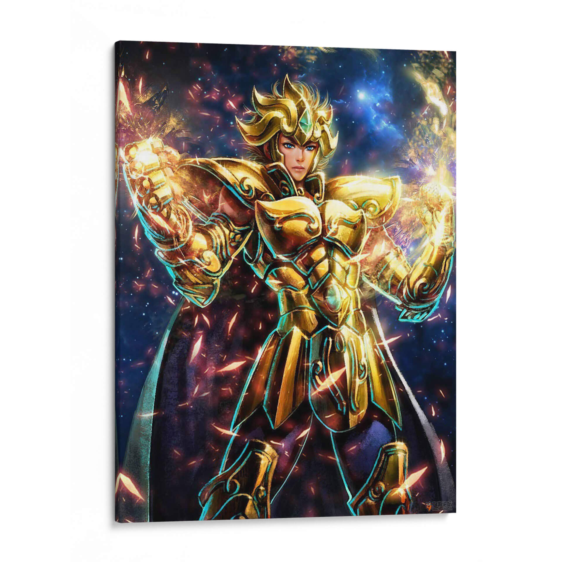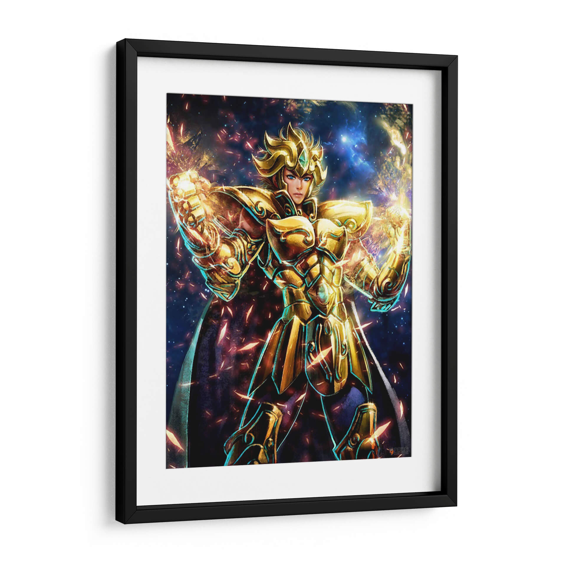 Sumérgete en la fuerza y el misterio con este impactante cuadro decorativo titulado "Caballero Fuerte". La obra presenta a una figura masculina imponente, vestida con una armadura dorada reluciente que evoca poder y determinación. El fondo cósmico, salpicado de luces y energía, crea una atmósfera de batalla épica o de un viaje galáctico. Los tonos dorados predominantes en la armadura contrastan con los azules profundos y los destellos anaranjados del fondo, generando una vibrante tensión visual. La composición centra la atención en la figura central, cuya mirada intensa y postura firme sugieren coraje y resiliencia. Este cuadro es ideal para aquellos que buscan infundir sus espacios con un sentido de valentía y aventura. Perfecto como punto focal en una sala de estar moderna, un estudio o una oficina, este arte de pared contemporáneo no solo decora, sino que también inspira. Añade un toque de heroísmo y sofisticación a tu decoración y deja que esta pieza hable de fuerza y gloria.