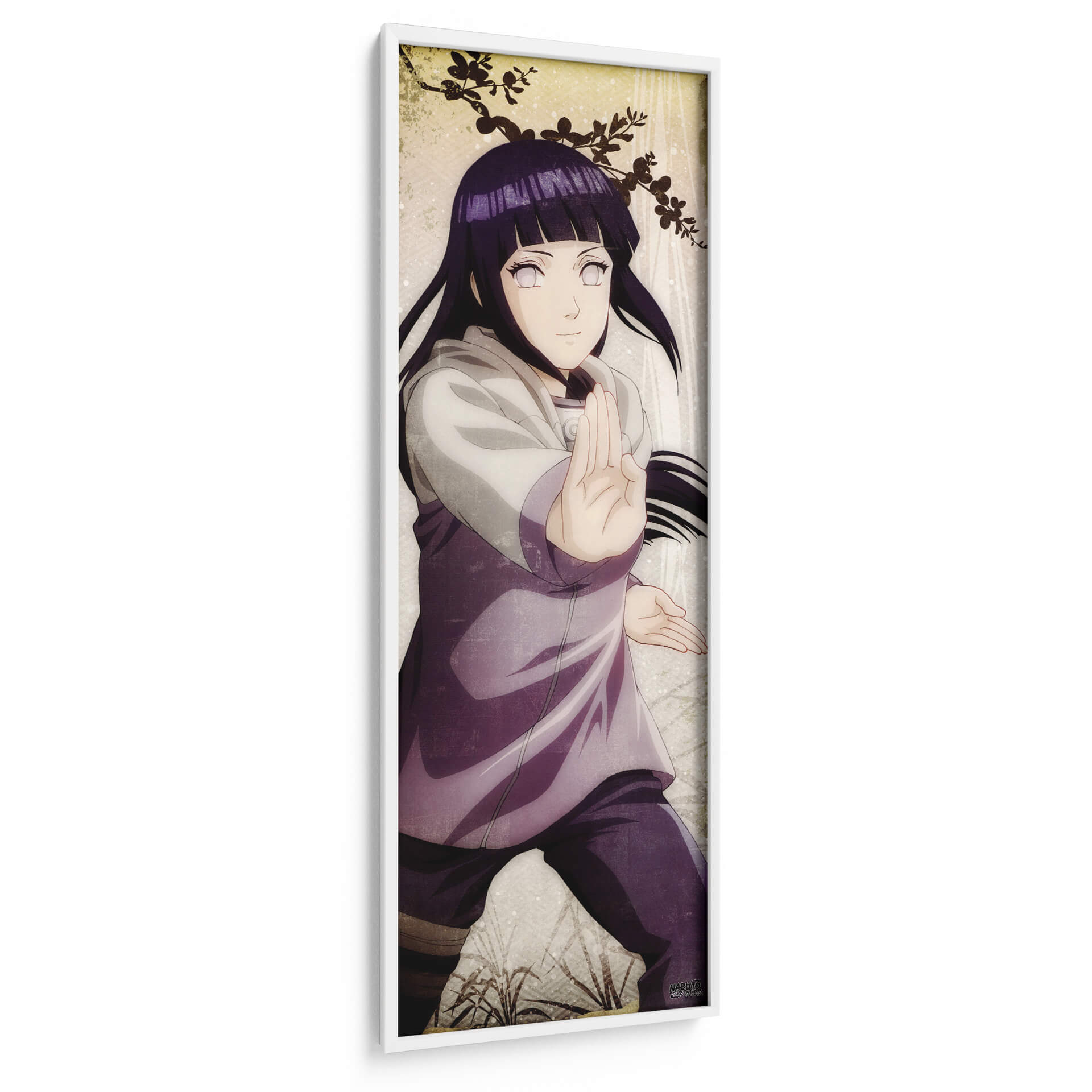 Sumérgete en la serenidad y la fuerza con este cautivador cuadro decorativo que presenta a Hinata Hyuuga en una pose icónica. La obra captura la esencia del personaje con una paleta de colores predominantemente en tonos morados, blancos y un fondo texturizado que evoca un ambiente etéreo y delicado. Las ramas de cerezo estilizadas en la parte superior añaden un toque de naturaleza y simbolismo, contrastando con la determinación que irradia la figura central. Este cuadro es perfecto para los amantes del arte inspirado en el anime y para aquellos que buscan infundir sus espacios con un aura de calma, resiliencia y belleza sutil. Su composición vertical y su estilo distintivo lo convierten en una pieza focal ideal para dormitorios, estudios o cualquier rincón que requiera una dosis de inspiración y sofisticación contemporánea. Añade un toque de elegancia y narrativa a tu decoración con esta pieza única que combina arte visual y un profundo aprecio por la cultura pop.