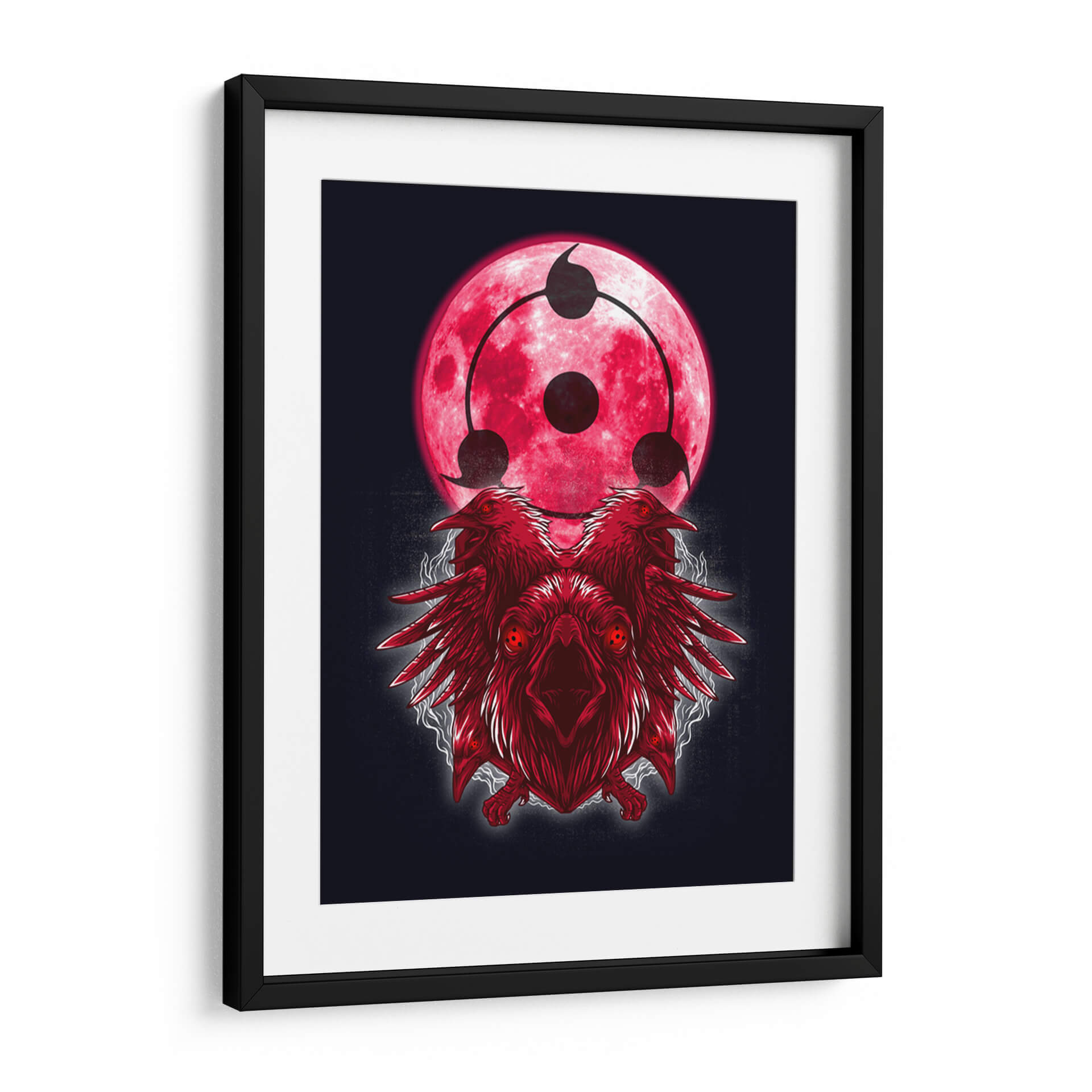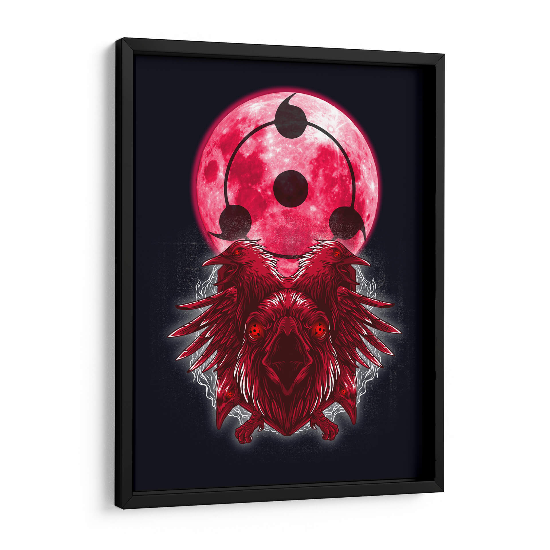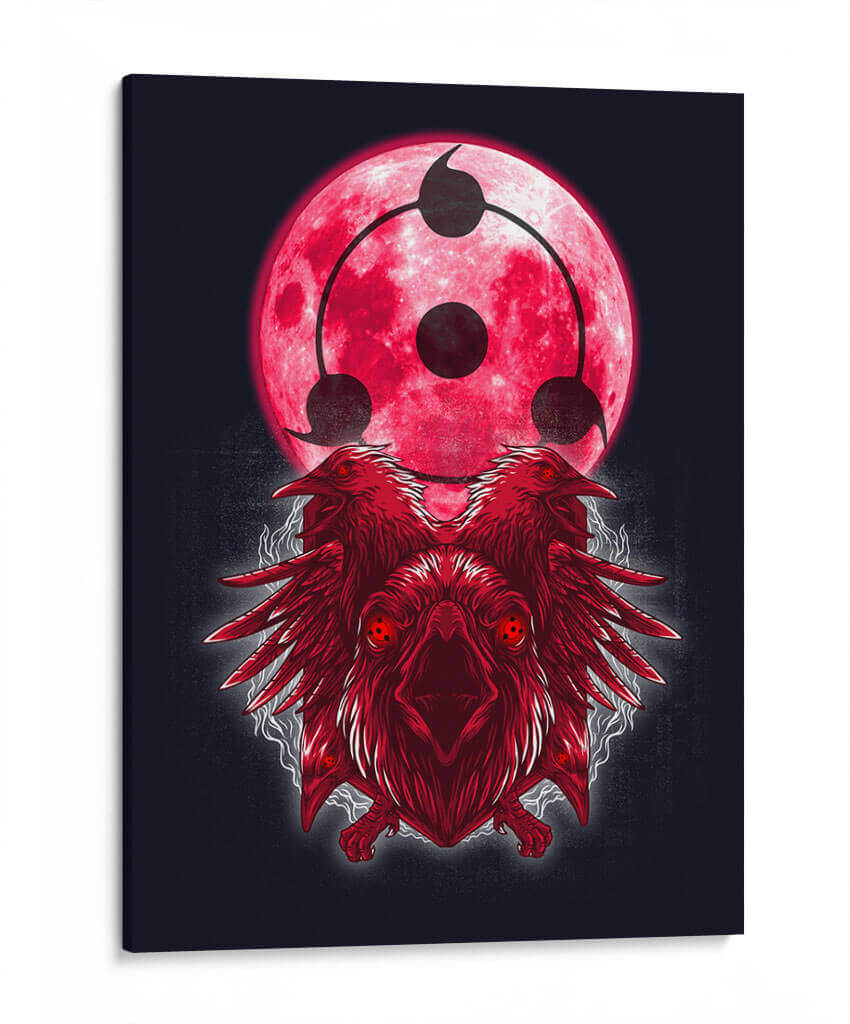 Sumérgete en la intensidad y el misterio con este impactante cuadro decorativo 'Itachi Luna Sangrienta', una obra de arte digital que evoca poder y misticismo. La pieza central presenta una luna llena de un rojo vibrante, surcada por el icónico patrón de tres círculos concéntricos, que se cierne sobre una poderosa criatura alada de plumaje oscuro y ojos penetrantes que irradian una luz carmesí. Las alas desplegadas y las múltiples miradas intensifican la sensación de una fuerza latente y una presencia enigmática. El contraste entre el rojo intenso de la luna y las figuras, y el fondo oscuro y profundo, crea una atmósfera dramática y cautivadora. Este cuadro es ideal para espacios que buscan un toque de audacia y carácter, como una sala de estar moderna, un estudio personal o incluso una oficina que desee inspirar determinación y enfoque. Su estilo distintivo lo convierte en un punto focal que no pasará desapercibido, ideal para amantes del arte con predilección por lo fantástico y lo simbólico. Añade un elemento de intriga a tu decoración y deja que esta obra despierte conversaciones y admira sus detalles.