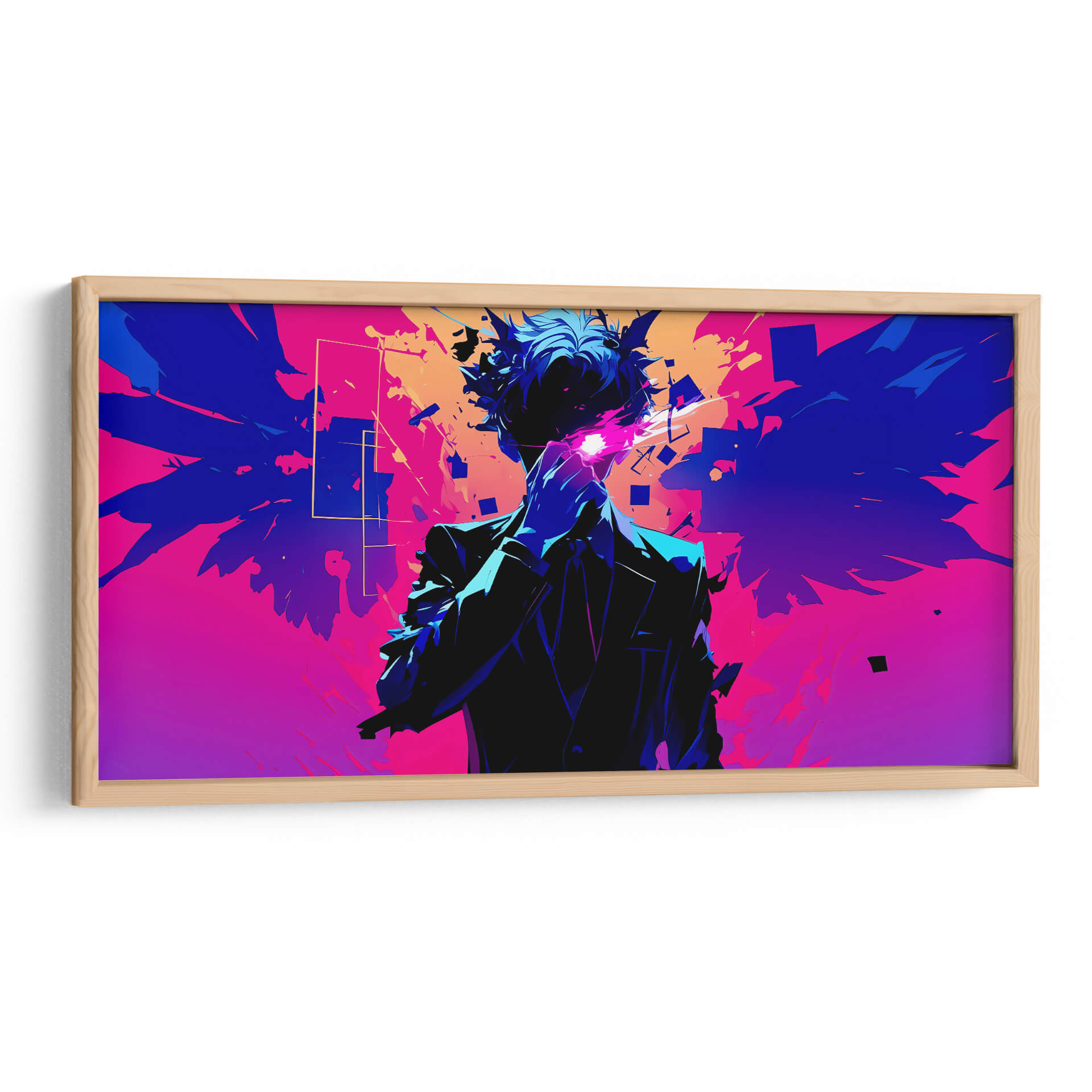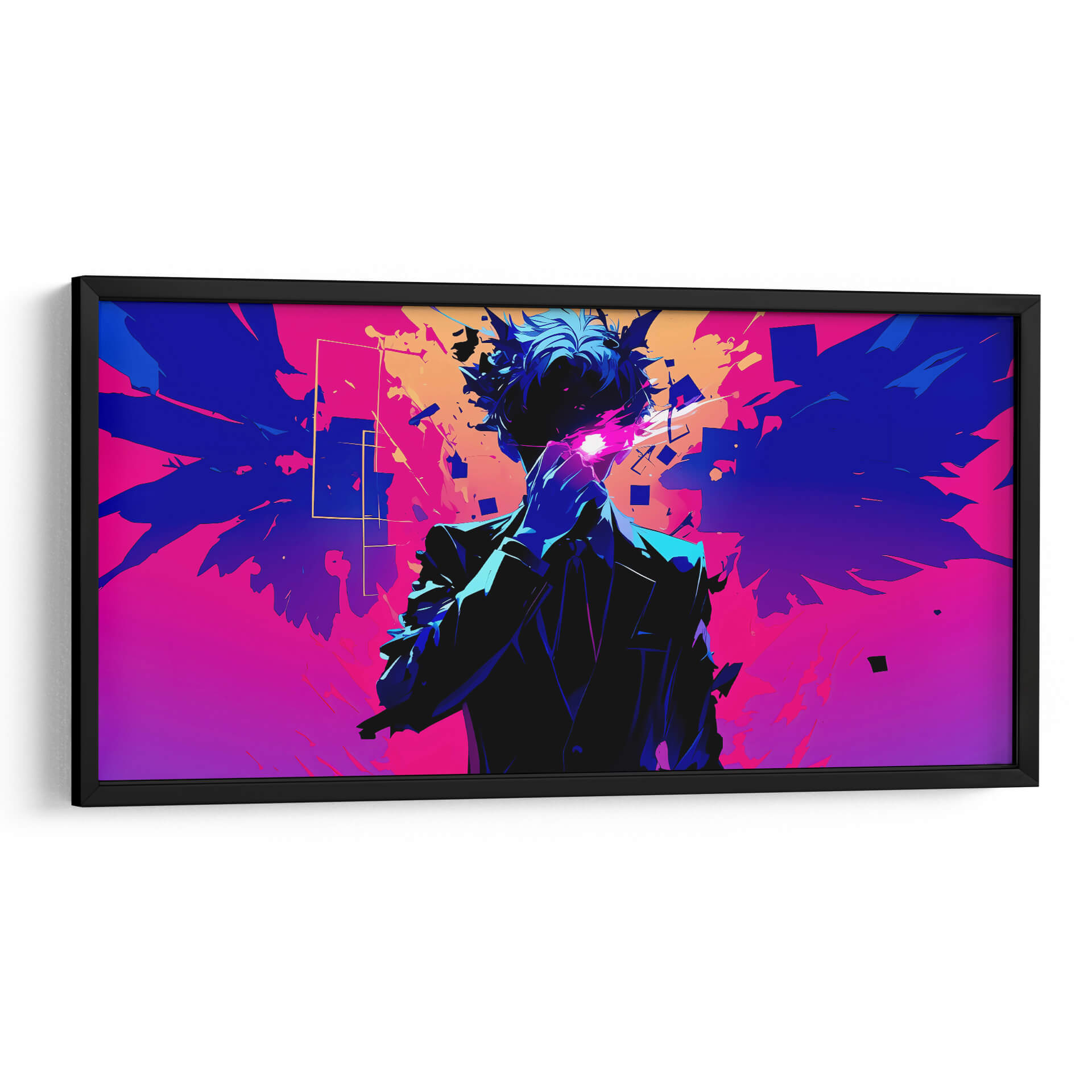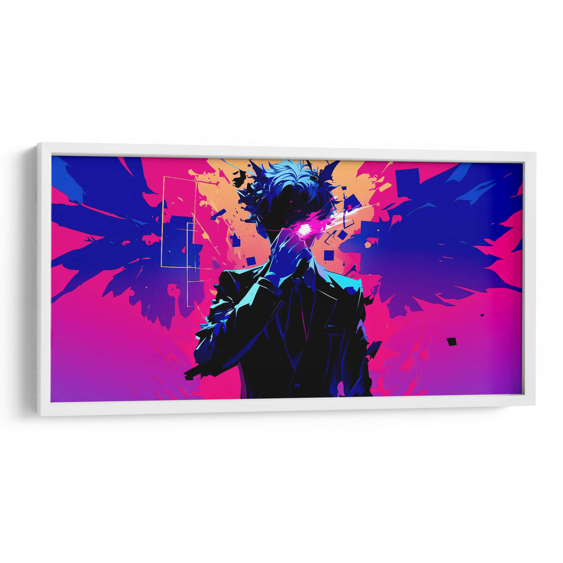 Sumérgete en el enigmático mundo de "Las Sombras - El Crupier del Diablo", una obra de arte digital que desafía la percepción y evoca misterio. Esta impactante pieza visual presenta a una figura masculina vestida con un traje oscuro, cuya silueta se recorta contra un fondo vibrante de azules eléctricos y fucsias intensos. La composición es dinámica, con explosiones de color y formas geométricas fragmentadas que añaden una capa de abstracción y energía a la escena. El rostro de la figura está oscurecido, y un destello de luz magenta irradia de donde debería estar su ojo, creando un punto focal intrigante y sugiriendo un poder oculto o una dualidad interna. El estilo artístico, con sus contornos definidos y la audaz paleta de colores, recuerda a la estética del anime y el arte pop, pero con un giro oscuro y contemporáneo. "Las Sombras - El Crupier del Diablo" es perfecta para aquellos que buscan añadir un toque de audacia y sofisticación a sus espacios. Ideal para una sala de estar moderna, un estudio o una oficina, este cuadro decorativo se convierte en un punto focal que invita a la reflexión y a la conversación, transformando cualquier ambiente en una galería de arte personal y vibrante. Su fuerza visual y temática la convierten en una elección única para coleccionistas de arte contemporáneo y amantes de las estéticas vanguardistas.