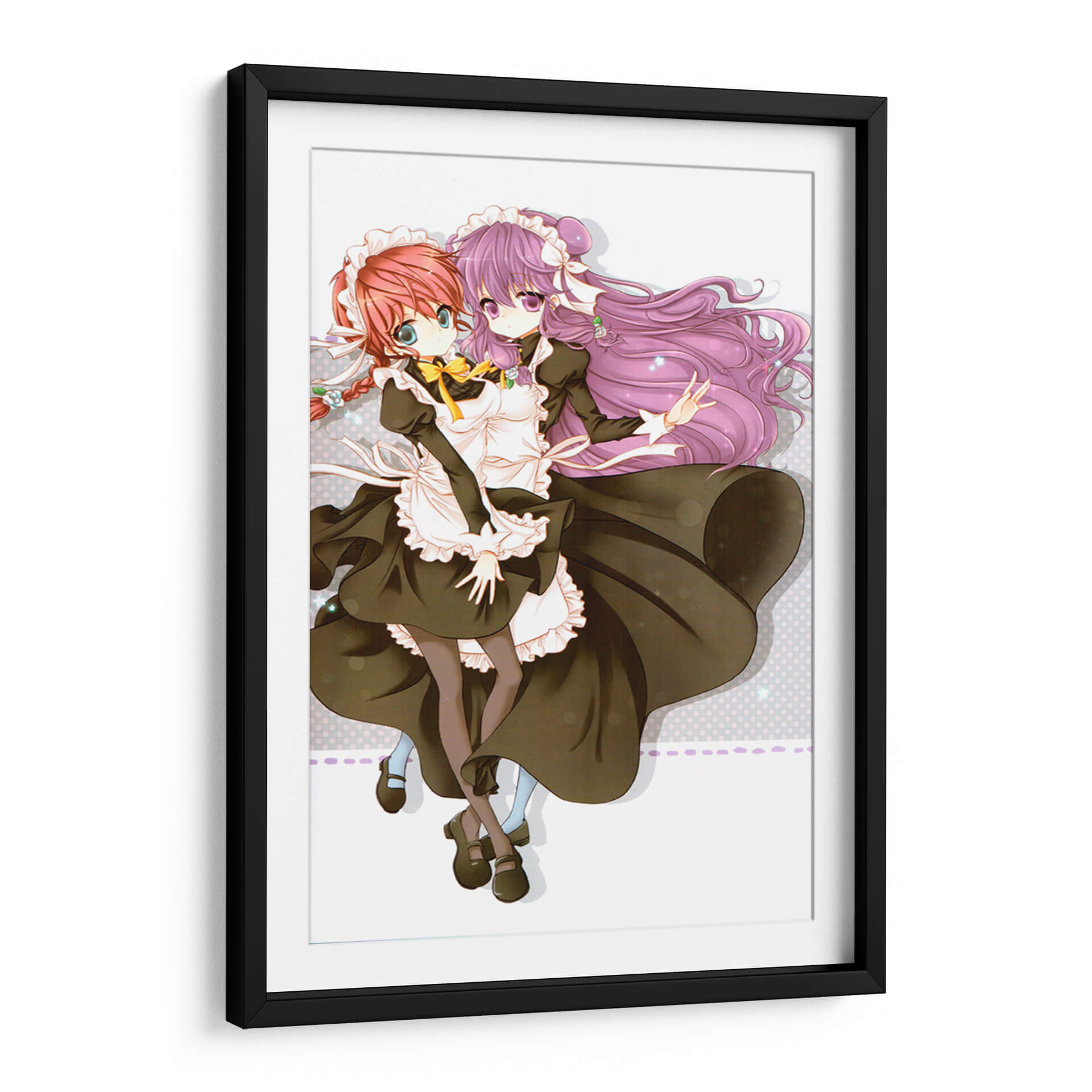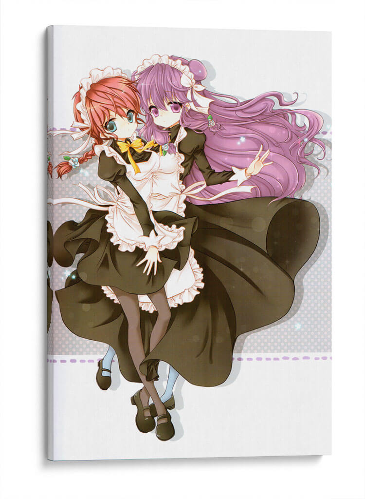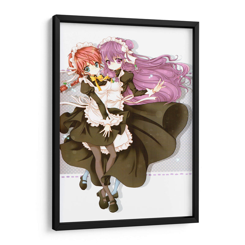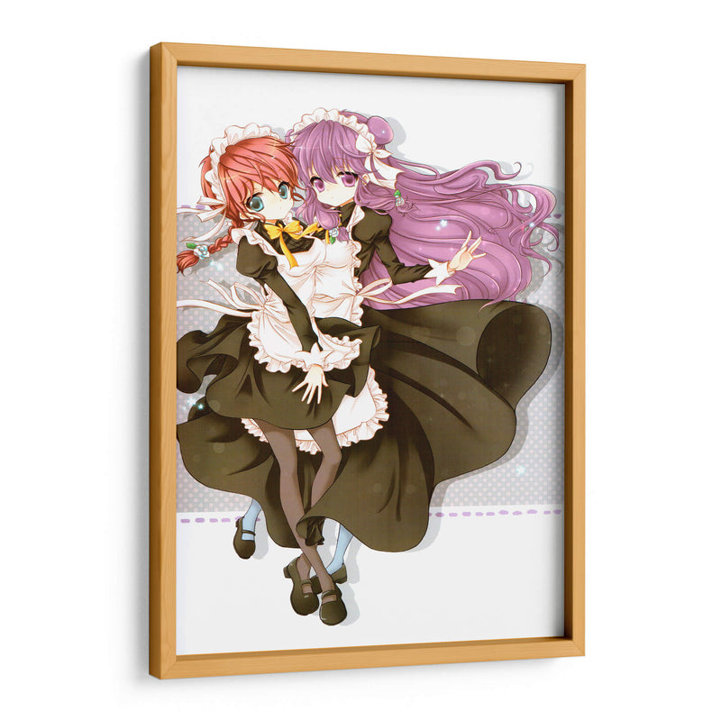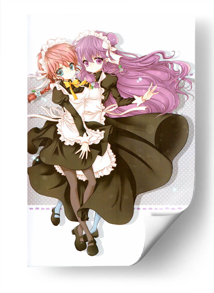 Sumérgete en el encanto y la dulzura de "Mucamas a la vista", un cuadro decorativo que captura la esencia de la inocencia y la amistad. Esta cautivadora obra de arte digital presenta a dos jóvenes doncellas con trajes clásicos, sus expresiones y gestos irradian una calidez que invita a la contemplación. La paleta de colores, dominada por tonos oscuros y contrastes suaves, crea una atmósfera delicada y un poco nostálgica, mientras que los detalles vibrantes en sus peinados y lazos añaden un toque de alegría. El estilo artístico, inspirado en el anime, ofrece una estética limpia y expresiva, perfecta para añadir un punto focal distintivo a cualquier habitación. Ideal para espacios que buscan un aire de fantasía y ternura, como dormitorios juveniles, estudios o áreas de descanso, este cuadro decorativo es una elección excepcional para quienes aprecian el arte con alma y narrativa. Transforma tu hogar en un santuario de belleza y emoción con esta pieza única.