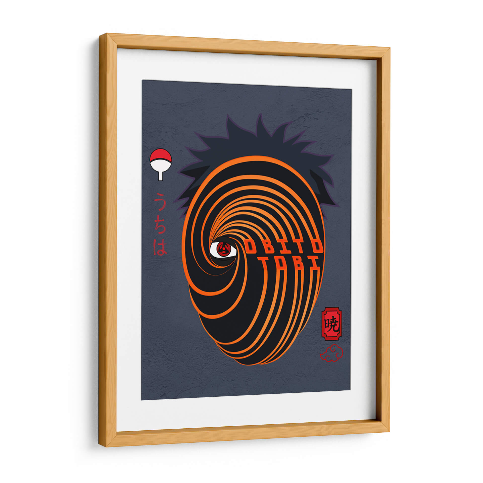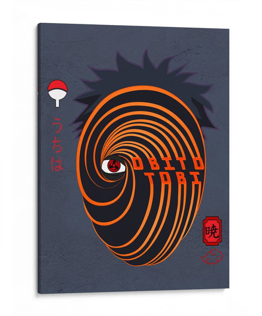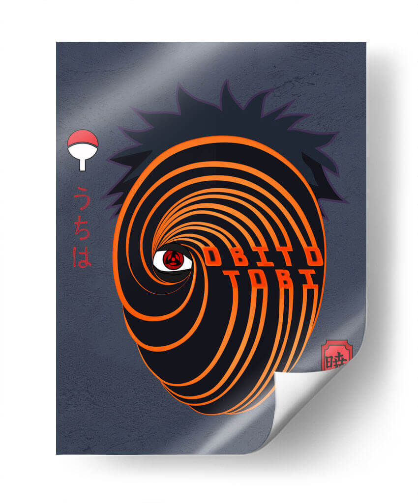 Sumérgete en el enigmático mundo de "Obito Uchiha", una obra de arte digital que captura la intensidad y el misterio de uno de los personajes más icónicos del anime. Este cuadro decorativo presenta una representación estilizada de la máscara distintiva de Obito, con sus vibrantes espirales en tonos anaranjados y negros que giran hipnóticamente hacia el Sharingan, el ojo que todo lo ve. El fondo de color gris oscuro, con una textura sutil, realza la fuerza visual de la máscara, mientras que los caracteres japoneses y el emblema del clan Uchiha añaden autenticidad y profundidad a la pieza. El estilo gráfico, con líneas nítidas y un contraste marcado, crea una atmósfera cargada de poder y determinación. Ideal para los aficionados al manga y anime, este cuadro es perfecto para darle un toque audaz y distintivo a cualquier habitación, ya sea una sala de estar, un estudio o un dormitorio temático. Transforma tu espacio con este poderoso símbolo de intriga y conflicto.