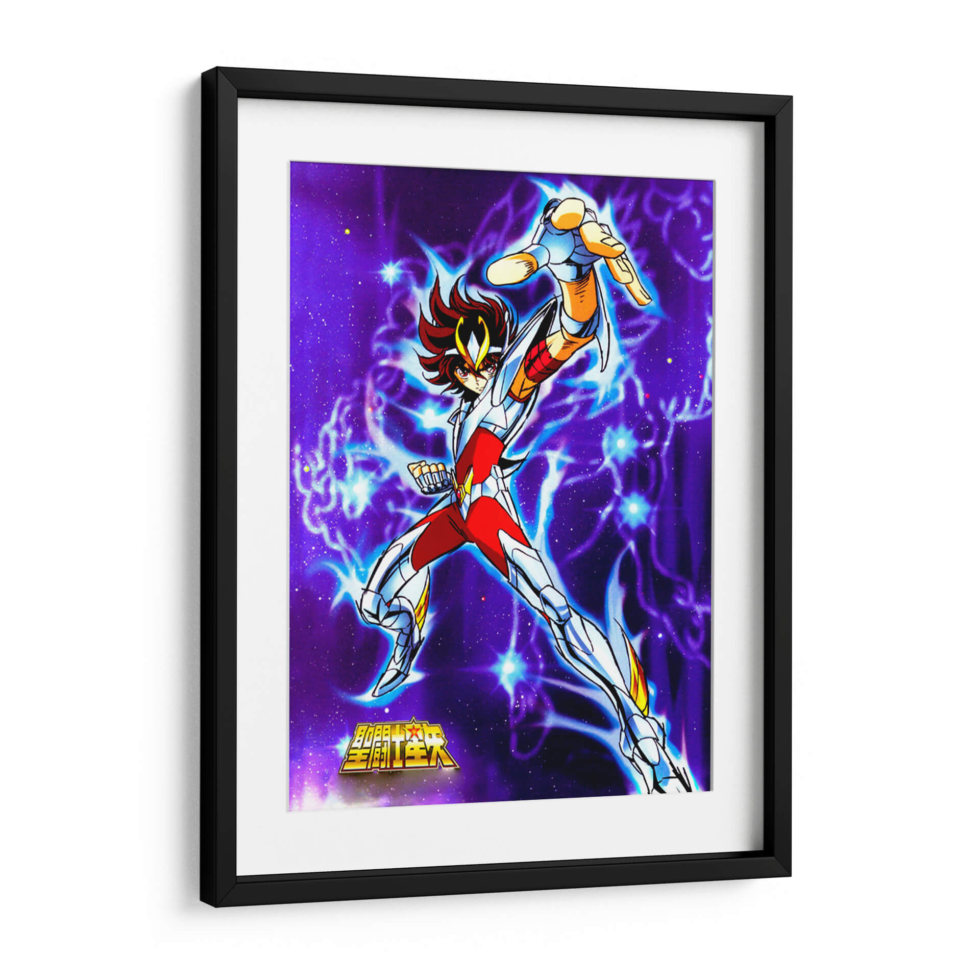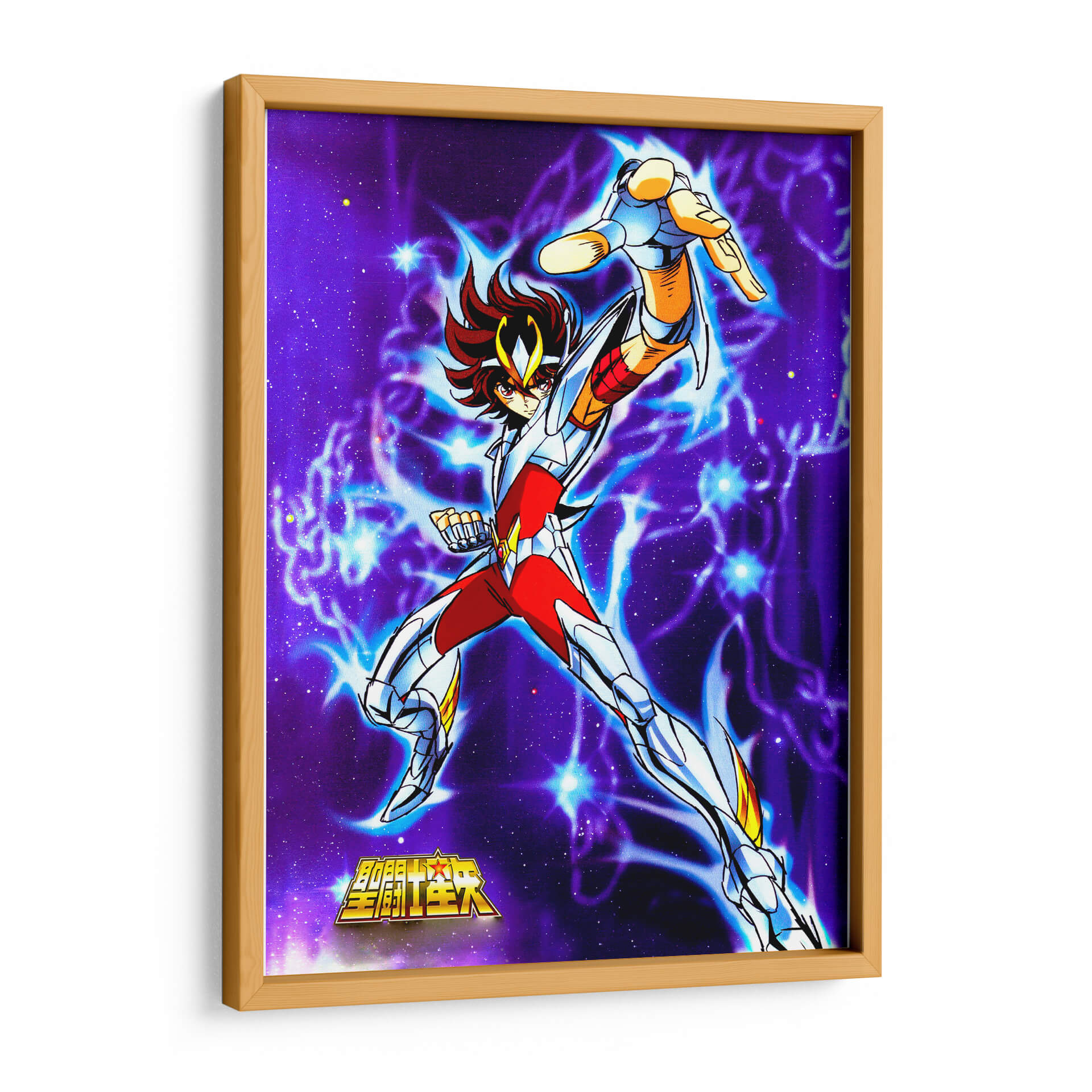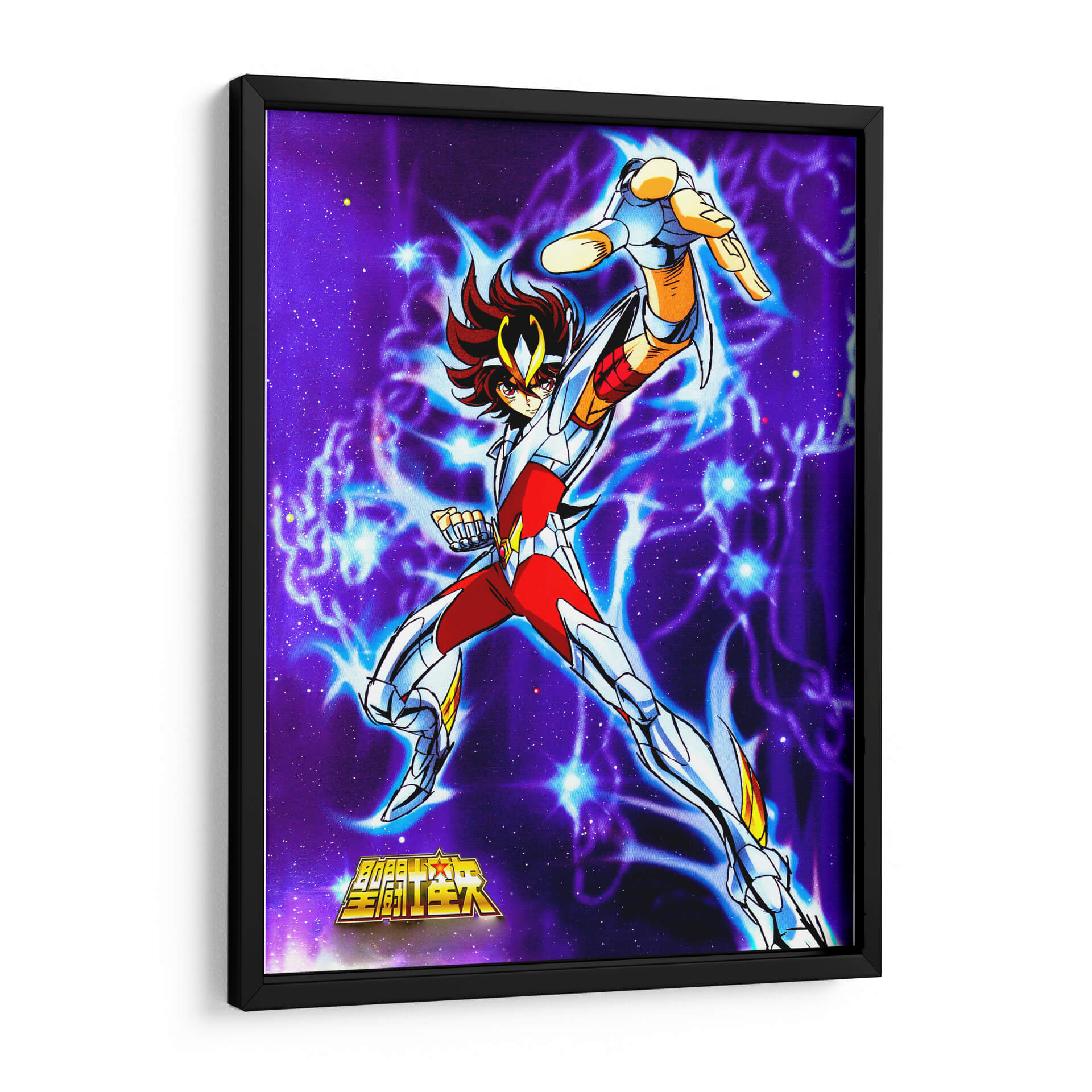 Sumérgete en el vibrante universo de "Seiya", una obra de arte digital que captura la esencia de la acción y la energía. Esta pieza presenta a un guerrero icónico con una armadura plateada y detalles en rojo y dorado, enmarcado por un fondo cósmico de tonos púrpuras profundos salpicado de estrellas y energía azul arremolinada. La composición dinámica, con el personaje en una pose de combate, irradia fuerza y determinación. El estilo anime, lleno de líneas audaces y colores intensos, evoca una sensación de aventura y heroísmo. Ideal para añadir un toque de poder y fantasía a la decoración de tu sala de estar, habitación o incluso una oficina moderna. Este cuadro decorativo es perfecto para los amantes de la cultura pop y el anime, y servirá como un punto focal inspirador que estimula la imaginación y evoca la emoción de la lucha por la justicia. Transforma tu espacio con este arte lleno de movimiento y misticismo, un tributo visual a la valentía.