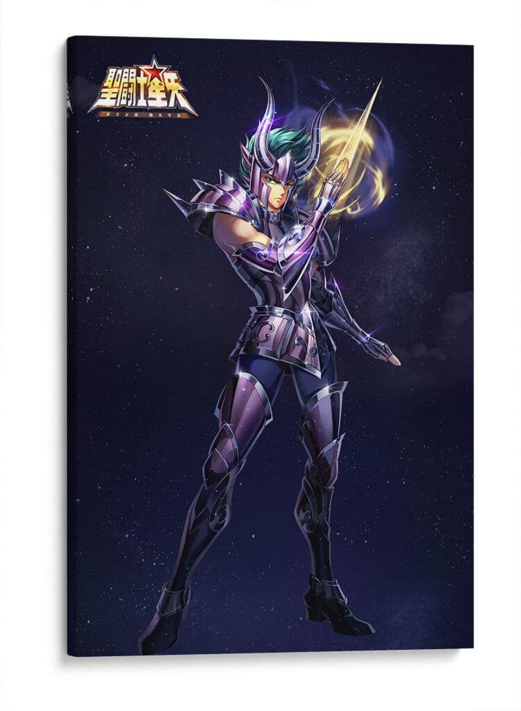 Sumérgete en el universo épico con este impactante cuadro decorativo que representa al guerrero "Shura de Capricornio". La obra captura la figura de un intrépido luchador, envuelto en una armadura detallada de tonos púrpuras y plateados, con toques de verde esmeralda en su cabello. El fondo estrellado evoca la inmensidad del cosmos, creando una atmósfera de misterio y poder. La luz dorada que emana de su mano sugiere una energía latente, listo para la batalla. Este cuadro es perfecto para añadir un toque de fantasía y fuerza a cualquier habitación, ya sea una sala de estar moderna, un estudio personal o una habitación temática. Su estilo artístico, que fusiona elementos de anime y fantasía, lo convierte en una pieza única para coleccionistas y aficionados. Transforma tu espacio con este cuadro decorativo que irradia determinación y coraje, una adición vibrante y cautivadora para los amantes del arte con carácter.