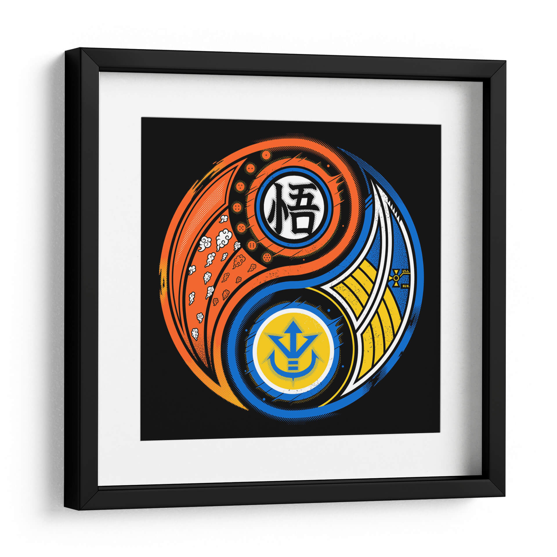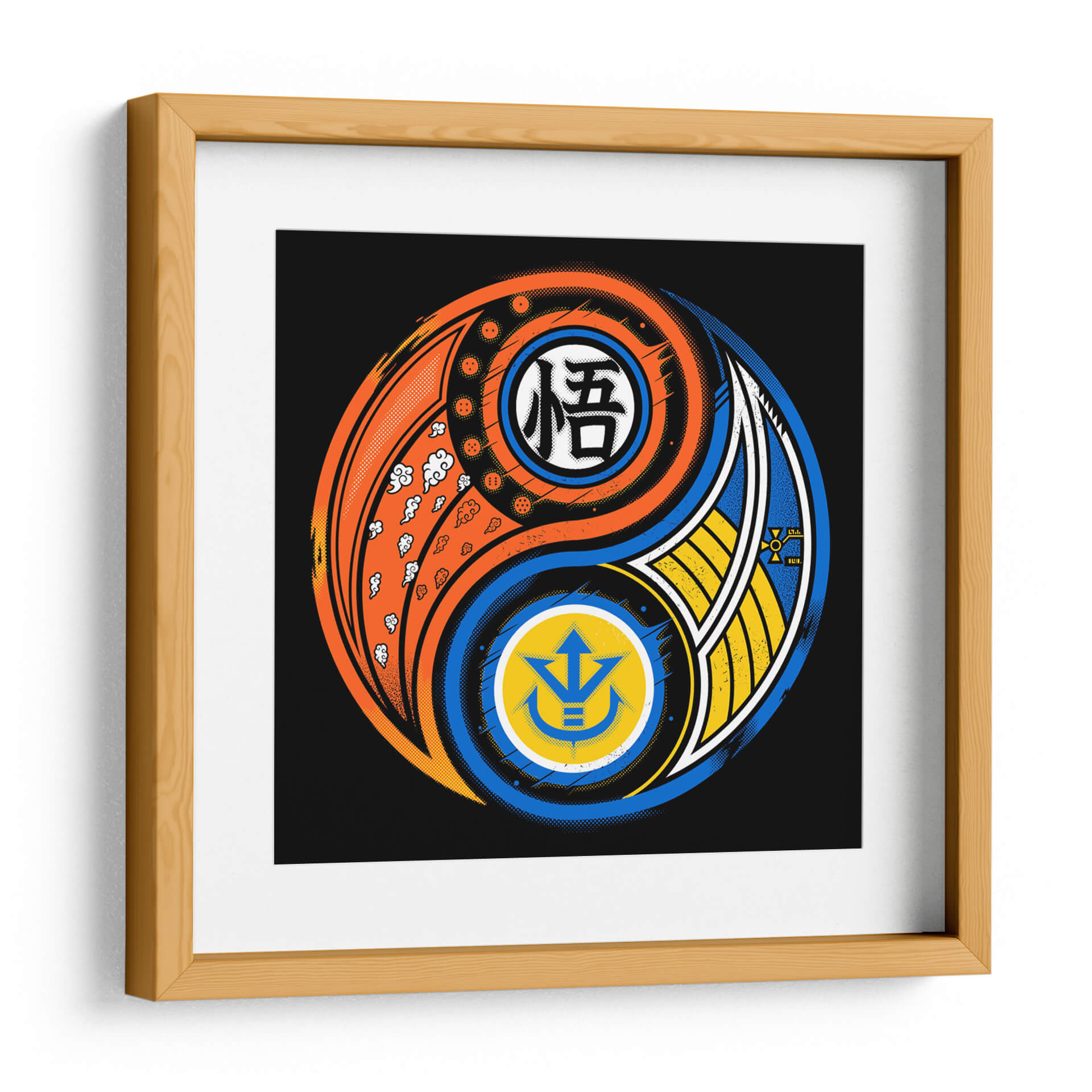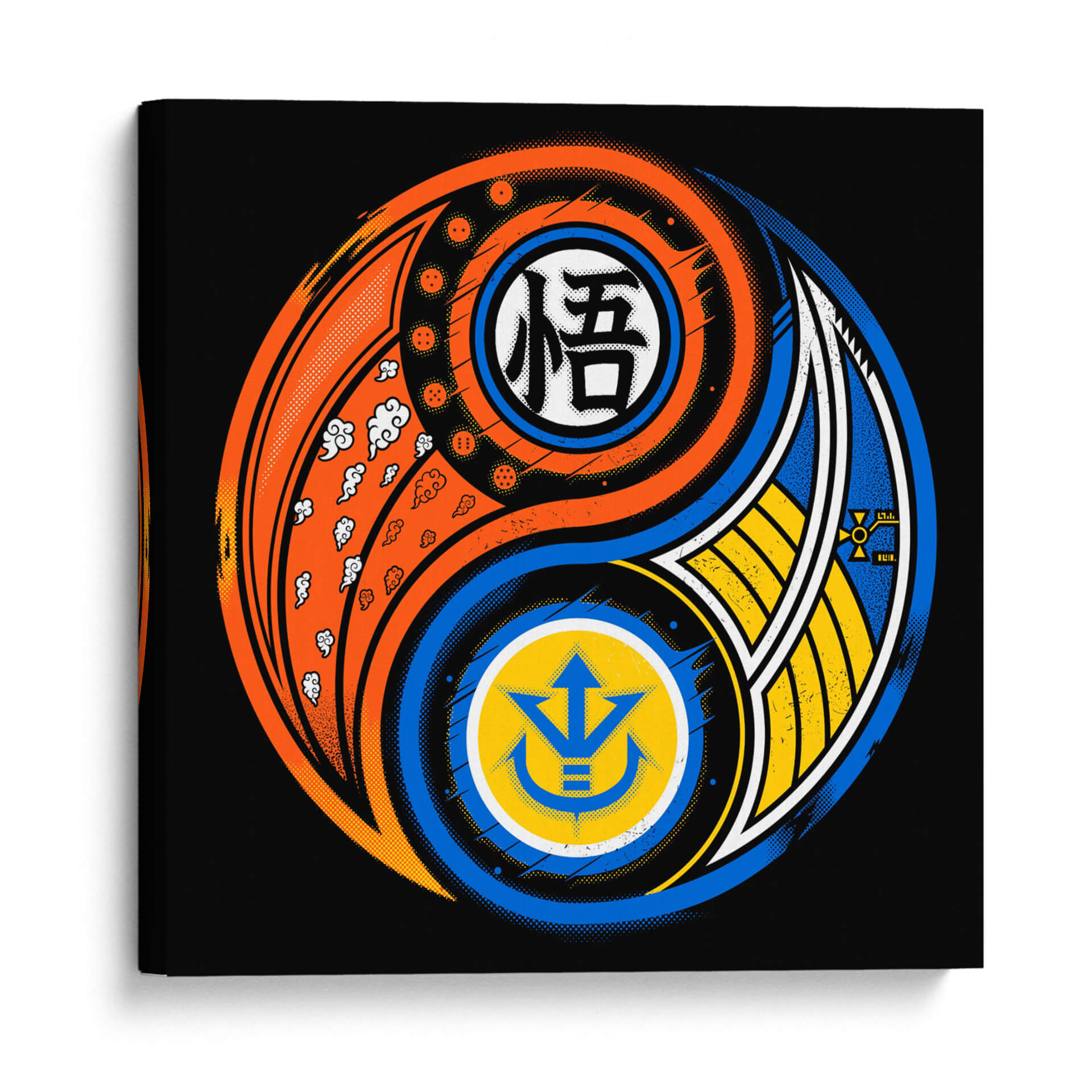 Transforma tu espacio con el vibrante cuadro decorativo "Yin Yang Saiyan", una obra de arte digital que fusiona la filosofía oriental con la energía del anime. Esta pieza visualmente impactante presenta una interpretación audaz del símbolo Yin Yang, dividiendo el círculo en dos mitades dinámicas. Una mitad, en tonos anaranjados y amarillos, evoca el poder y la calidez, adornada con sutiles representaciones de nubes y esferas que recuerdan a las legendarias Bolas de Dragón. La otra mitad, en azules intensos y blancos, simboliza la calma y la precisión, incorporando un emblema con una flecha ascendente y elementos gráficos inspirados en la tecnología futurista. La composición es audaz y simétrica, creando un equilibrio visual que atrae la mirada. El contraste entre los colores vibrantes y el fondo negro profundo genera una atmósfera de poder contenido y elegancia moderna. Este cuadro decorativo es perfecto para añadir un toque de carácter y estilo a salas de estar, estudios o cualquier rincón que necesite una dosis de inspiración y cultura pop. Ideal para fans del anime y amantes del arte contemporáneo que buscan piezas únicas con significado. Añade esta obra maestra a tu colección y deja que su energía positiva ilumine tu hogar.