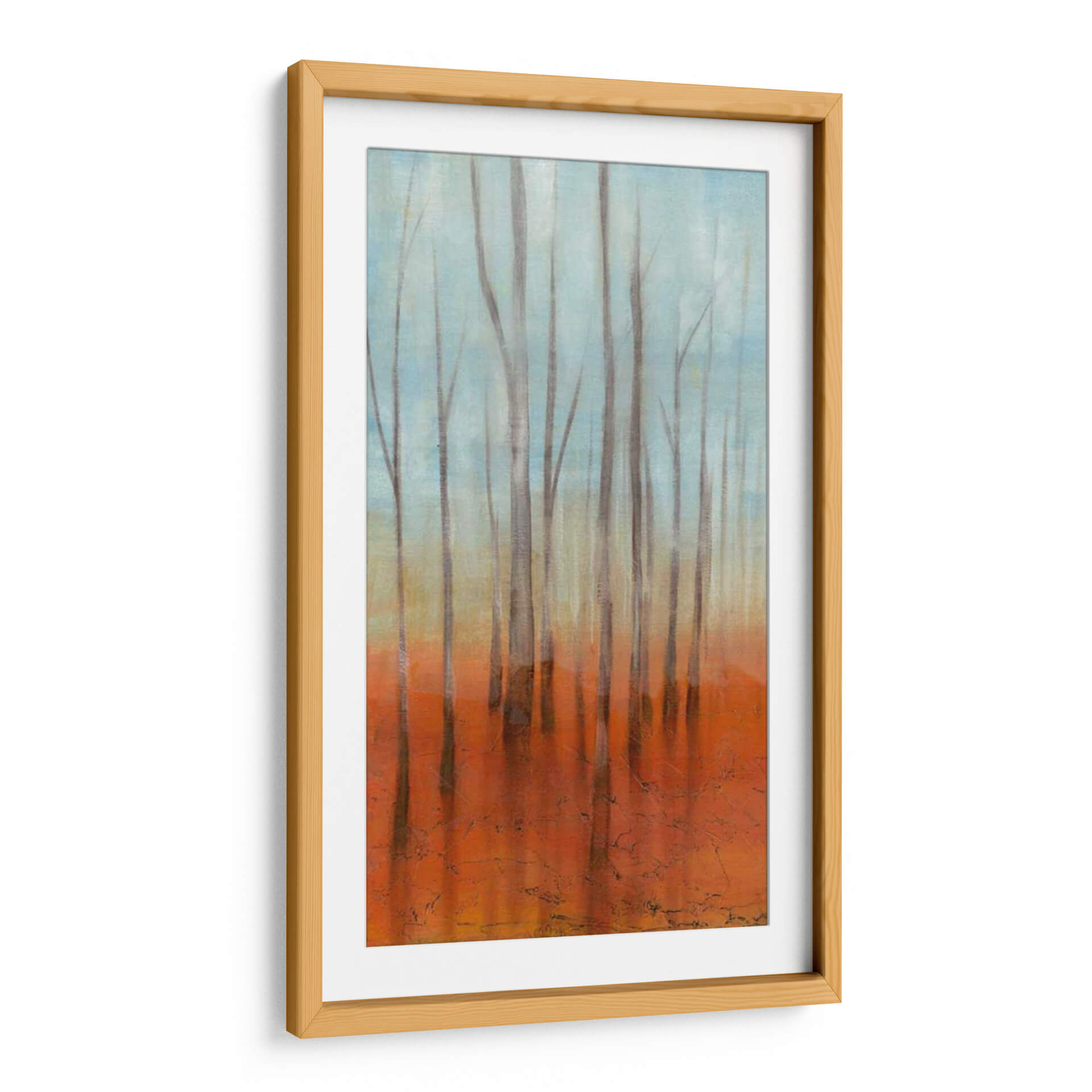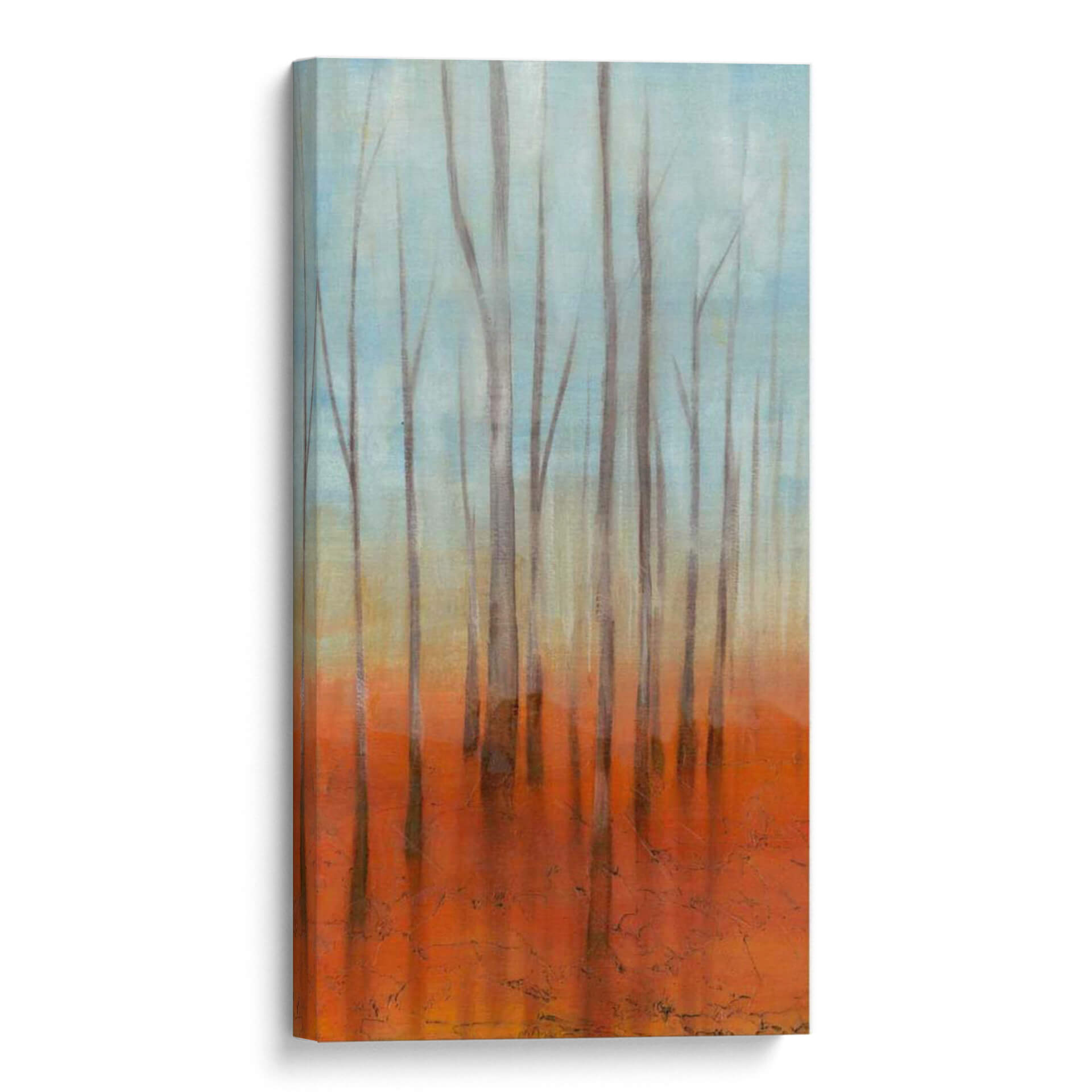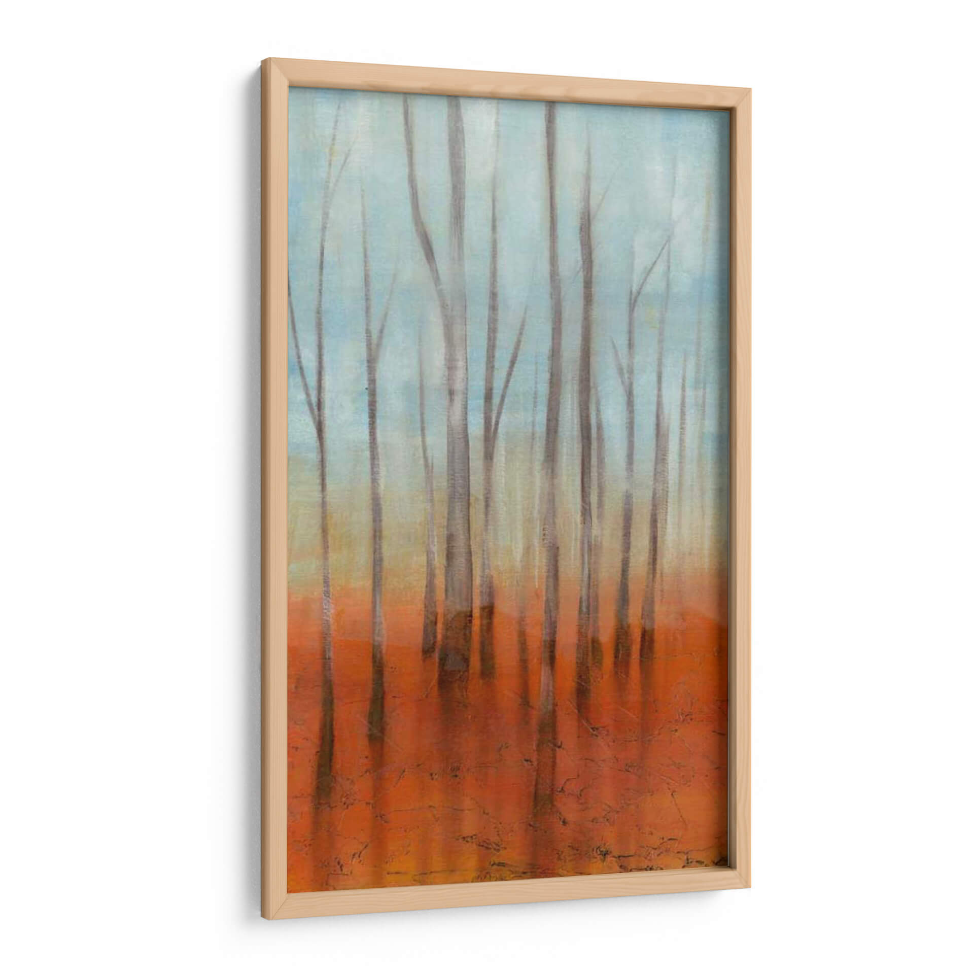 Sumérgete en la serena belleza del 'Bosque Del Abedul I', una cautivadora obra de arte contemporáneo de Jennifer Goldberger. Este cuadro decorativo evoca la tranquilidad de un bosque bañado por la luz, con sus esbeltos abedules creando una atmósfera etérea y pacífica. La paleta de colores, que transita suavemente de un cielo azul pálido a un cálido y vibrante suelo anaranjado, aporta una profundidad visual única y una sensación de calidez terrenal. El estilo impresionista y las pinceladas sutiles invitan a la contemplación, transformando cualquier espacio en un refugio de paz y armonía. Ideal para salones, dormitorios o estudios, este cuadro es una ventana a la naturaleza que inspira calma y renovación. Su composición vertical y los tonos armoniosos lo convierten en un punto focal sofisticado que complementa tanto decoraciones modernas como rústicas, añadiendo un toque de arte natural y contemplativo a tu hogar u oficina. Descubre la magia de este lienzo y deja que su esencia relajante envuelva tus sentidos.